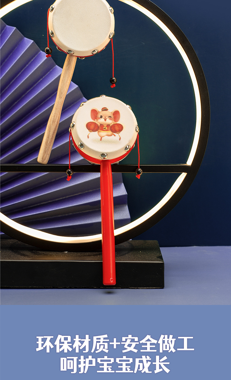 딸랑이 아기 장난감 물린 손 균열 웨이브 드럼 아기 나무 양가죽 전통 어린이 신생아 소년과 소녀