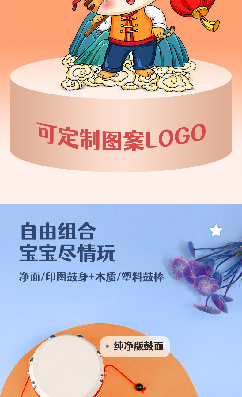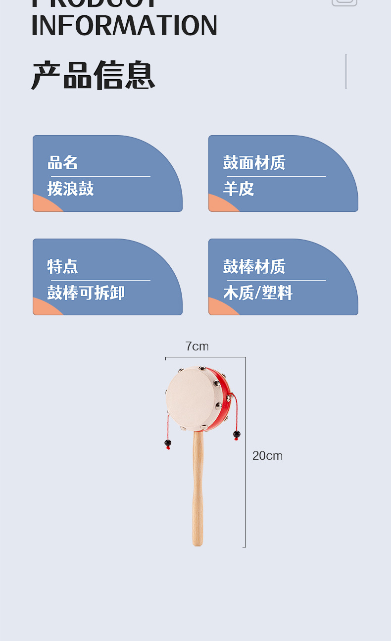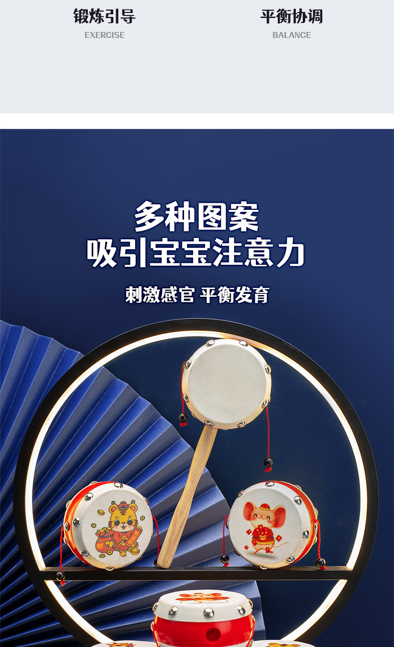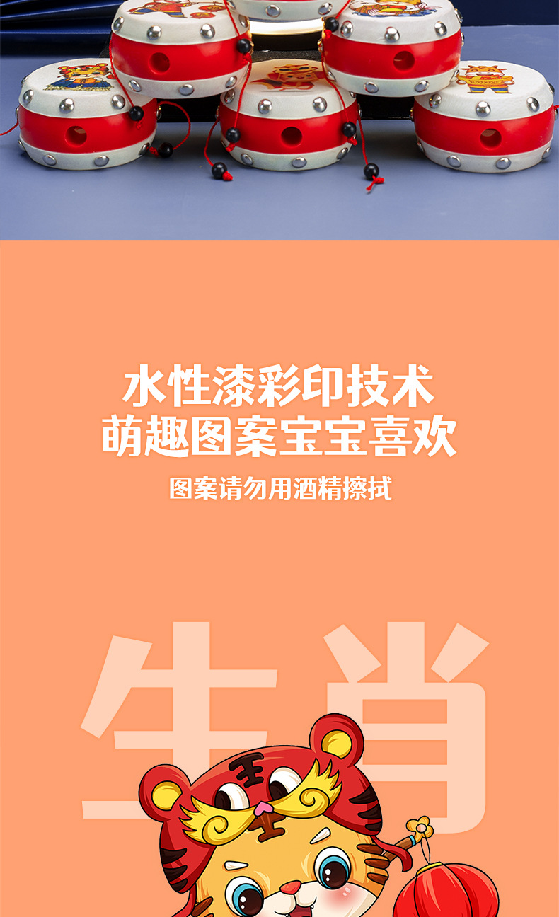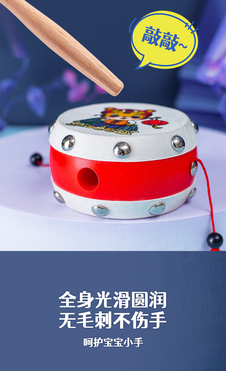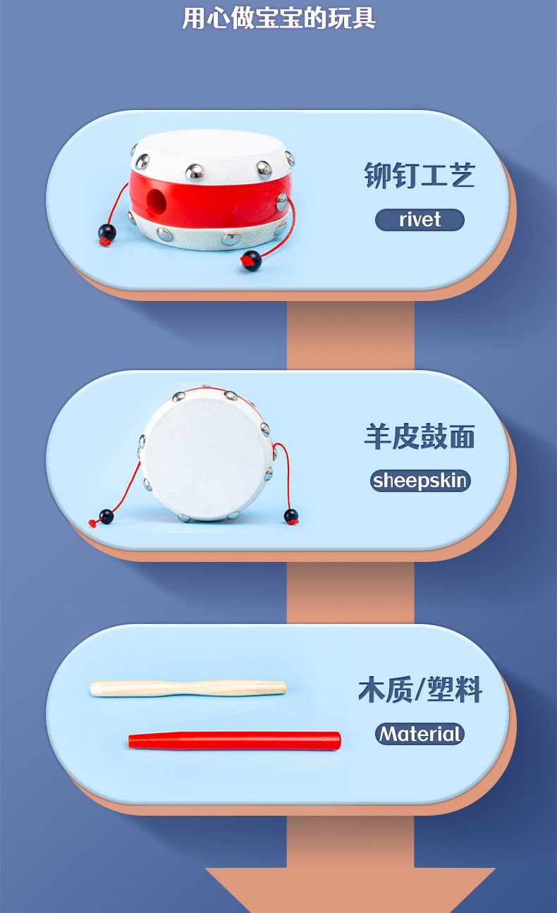 딸랑이 아기 장난감 물린 손 균열 웨이브 드럼 아기 나무 양가죽 전통 어린이 신생아 소년과 소녀스토어 가기