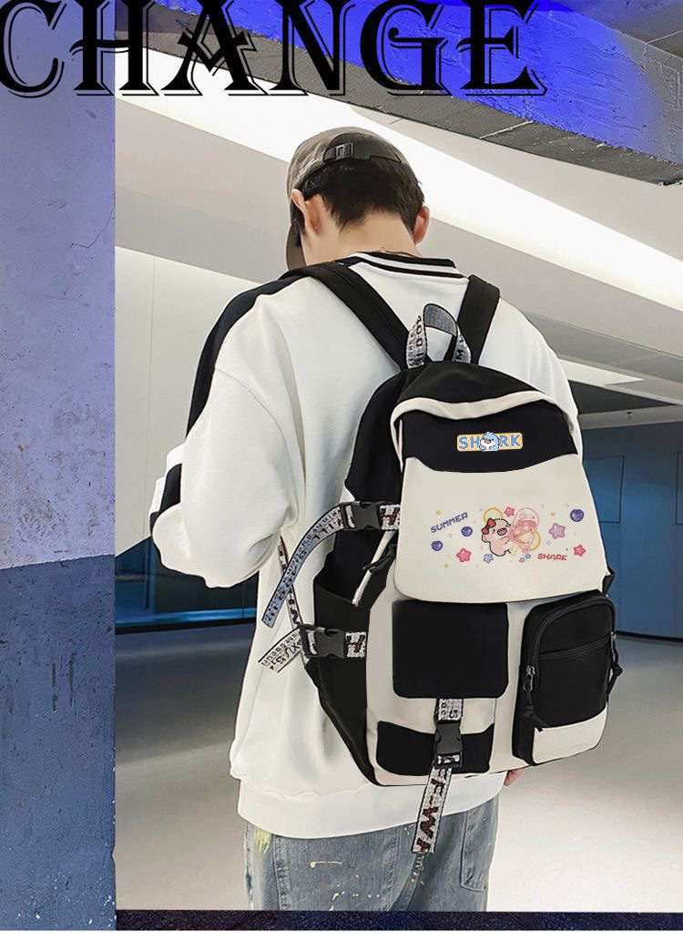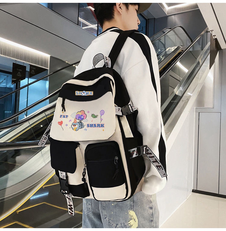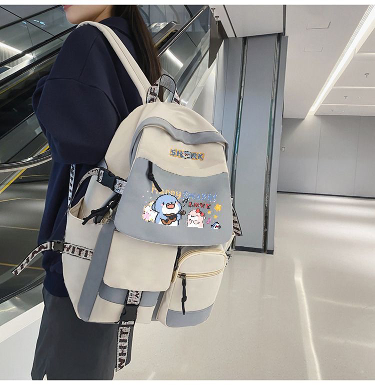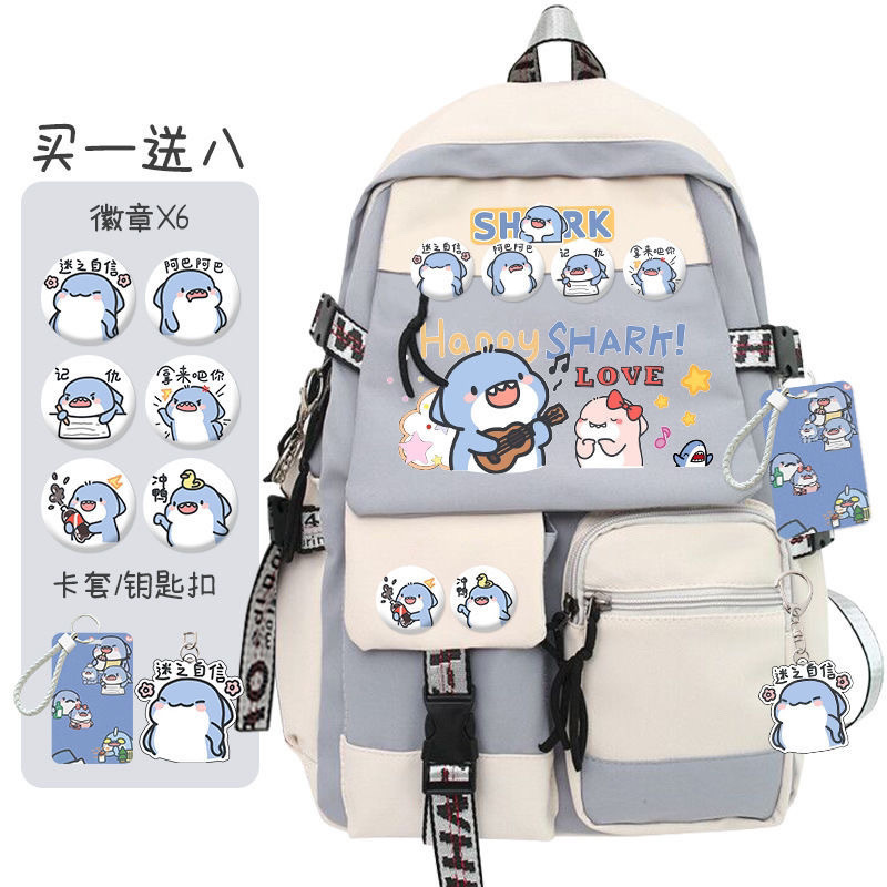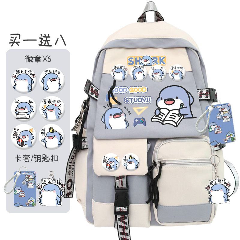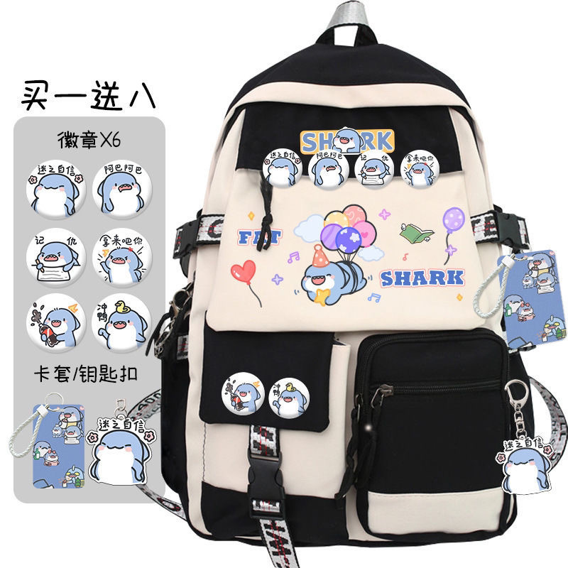 뚱뚱한 상어 책가방 어린이 중학교 만화 귀여운 배낭 소년과 소녀 고가의 대용량 배낭스토어 가기