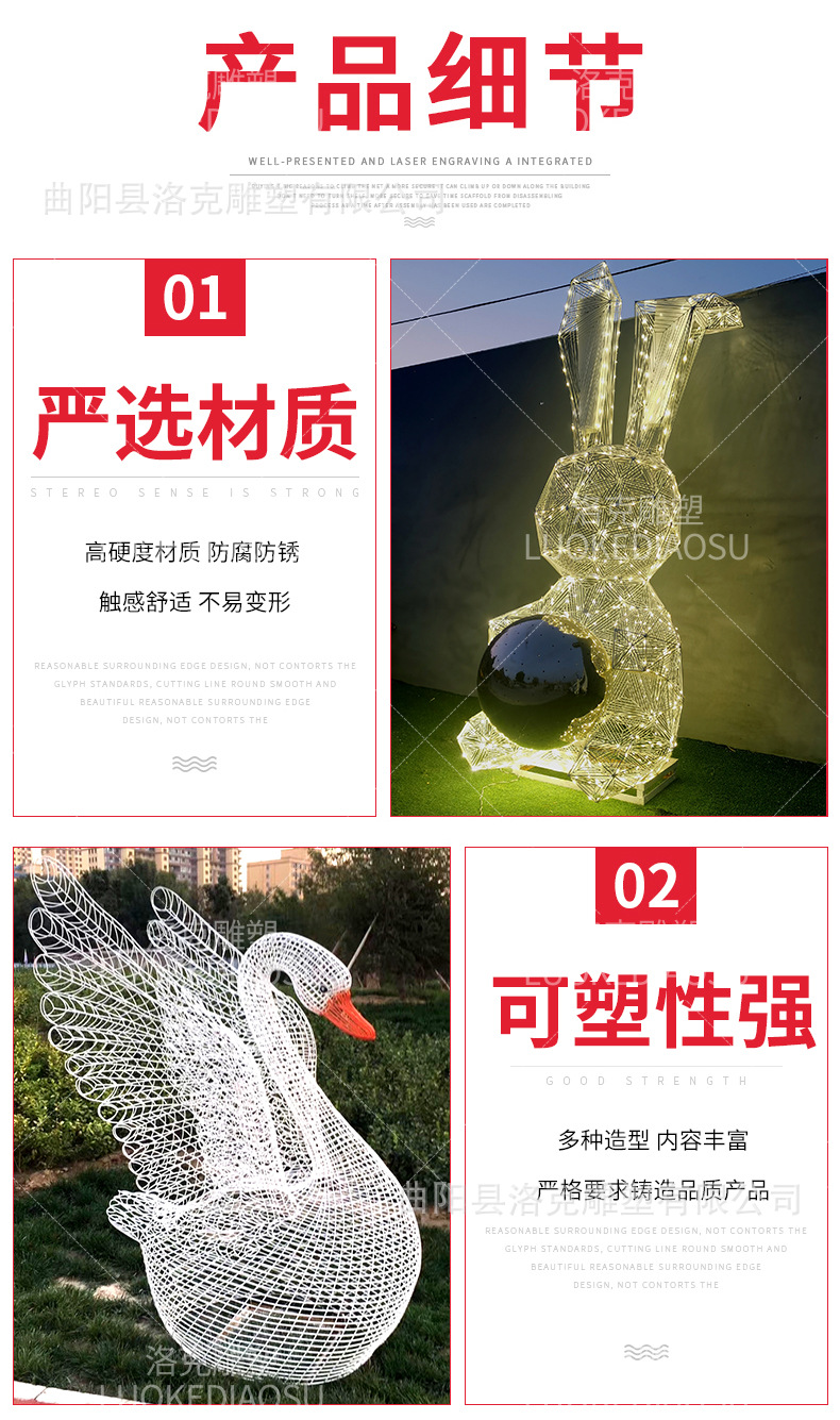 야외 스테인레스 스틸 중공 동물 조각 도시 정원 커뮤니티 풍경 중공 발광 금속 조각스토어 가기