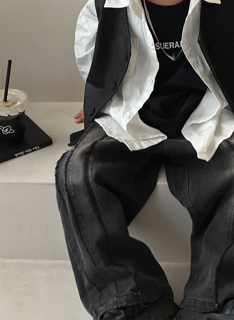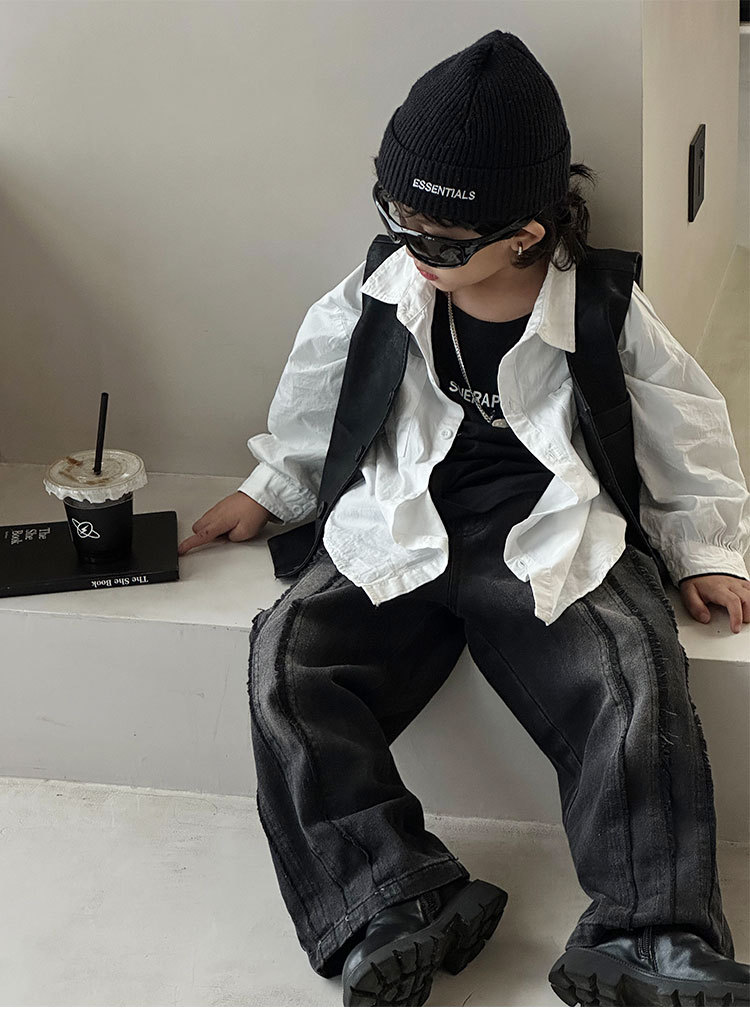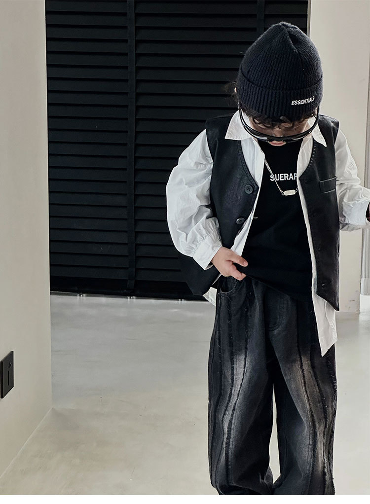 아동복 소년 가죽 조끼 2023 가을 새로운 PU 민소매 카디건 어린이 자켓 코트 한국어 버전의 세대스토어 가기