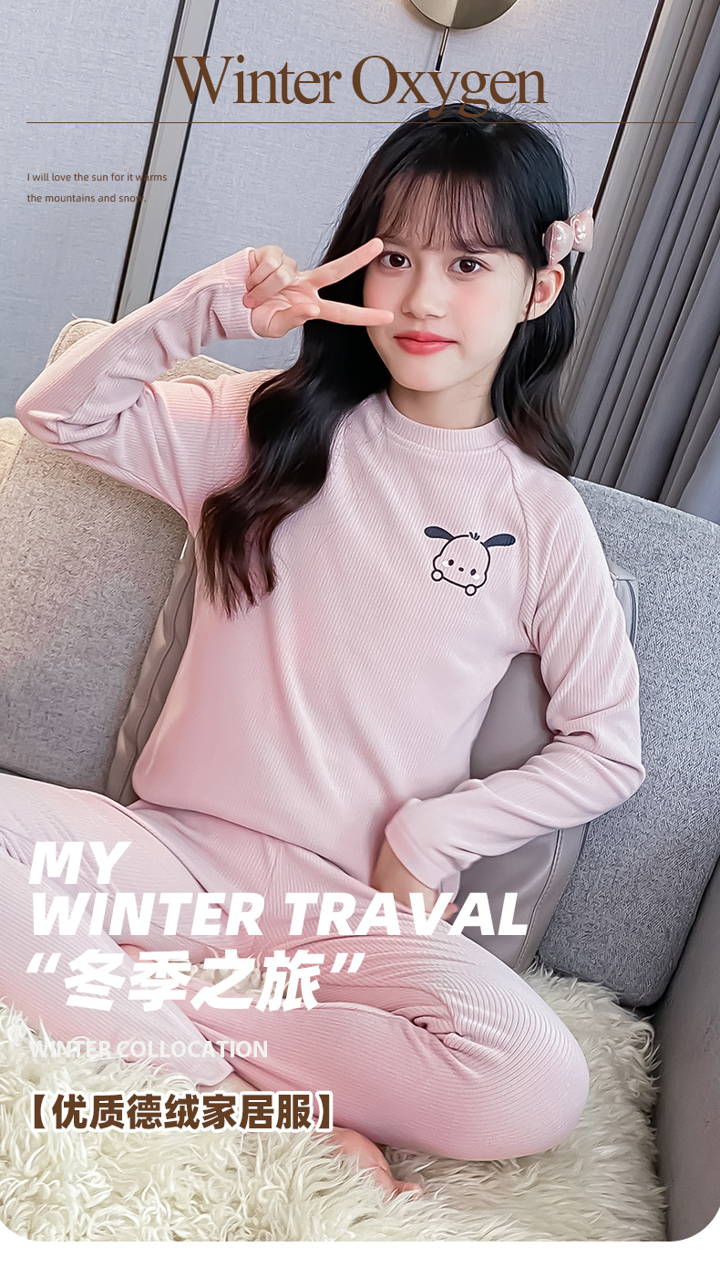 소녀 드 벨벳 열 속옷 세트 2023 새로운 소녀 가을과 겨울 패딩 하의 잠옷 가정 옷 투피스 세트스토어 가기
