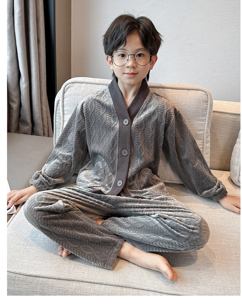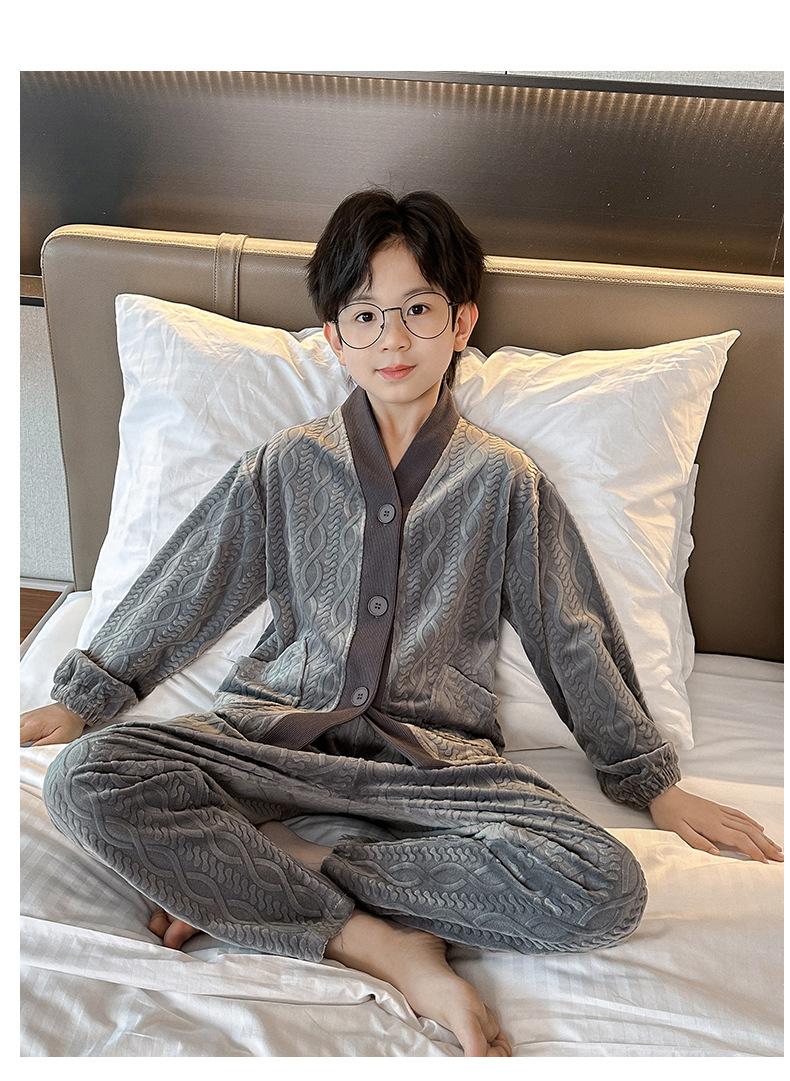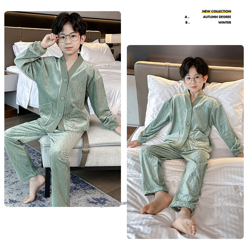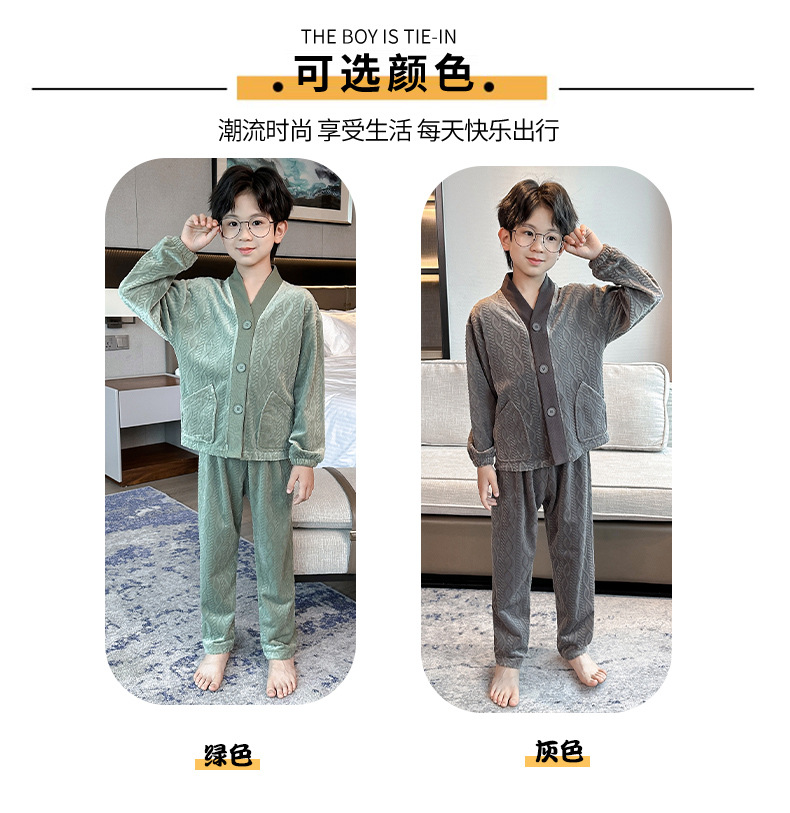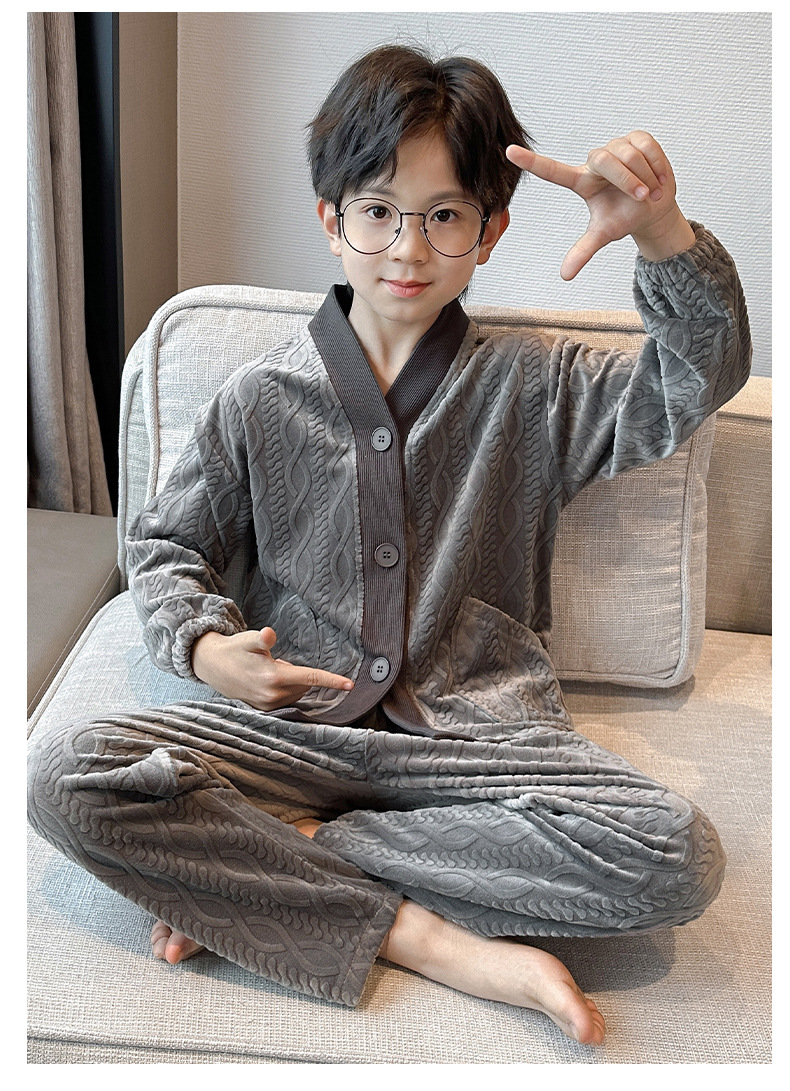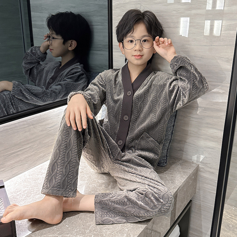 남아 긴팔 가정복 가을과 겨울 두꺼운 어린이 잠옷 가디건 캐주얼 투피스 아일랜드 벨벳 중형 및 대형 아동복