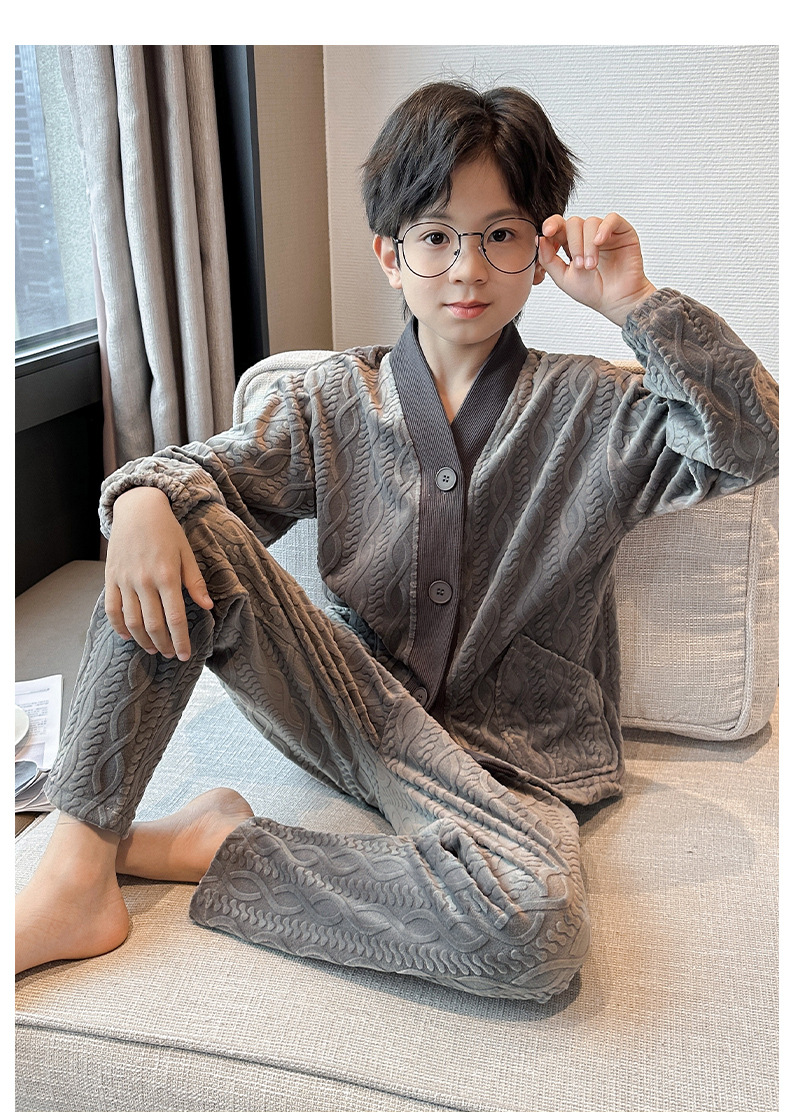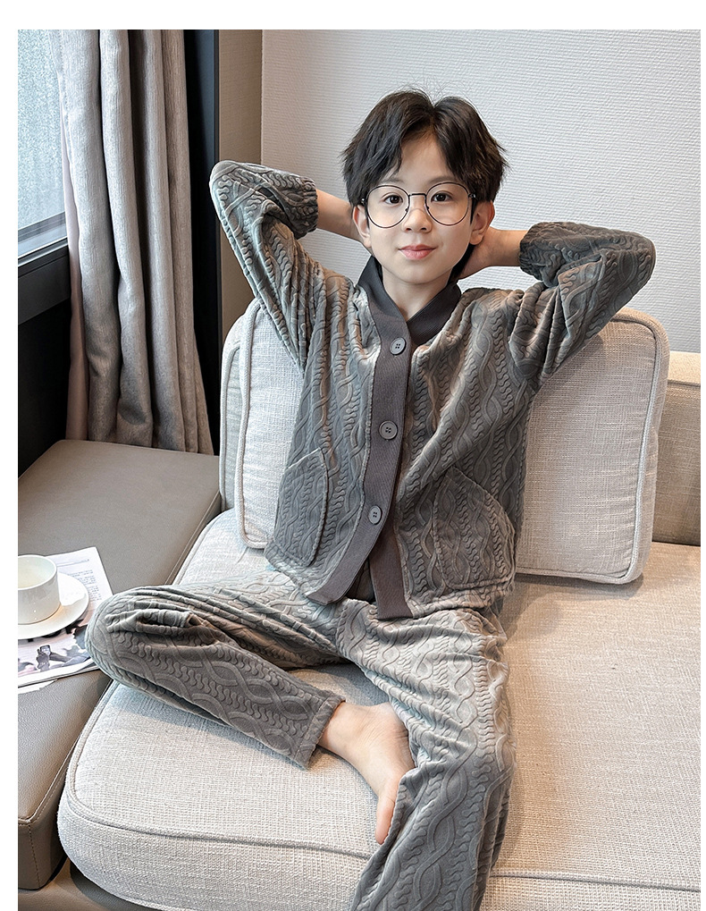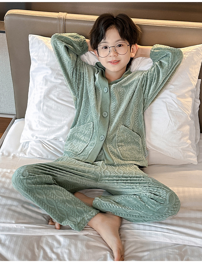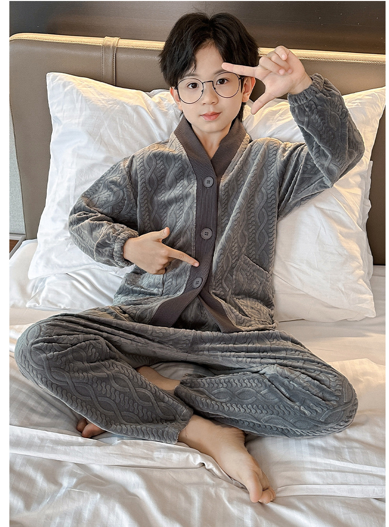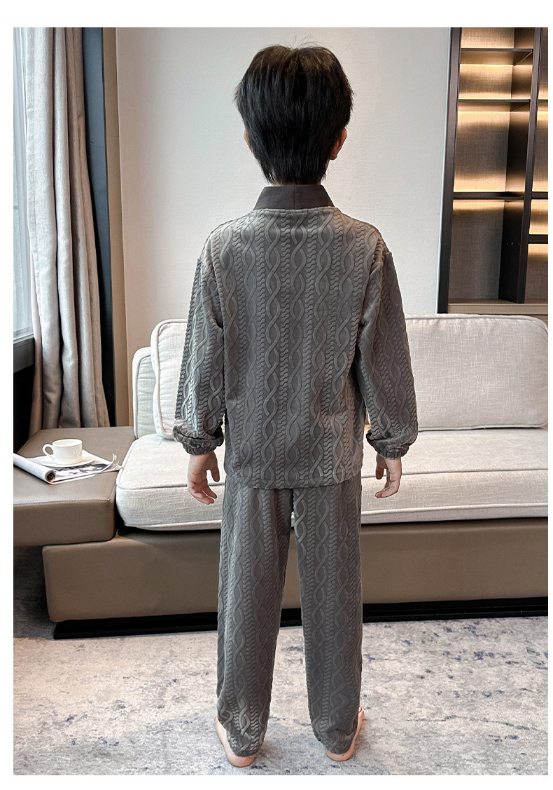 남아 긴팔 가정복 가을과 겨울 두꺼운 어린이 잠옷 가디건 캐주얼 투피스 아일랜드 벨벳 중형 및 대형 아동복