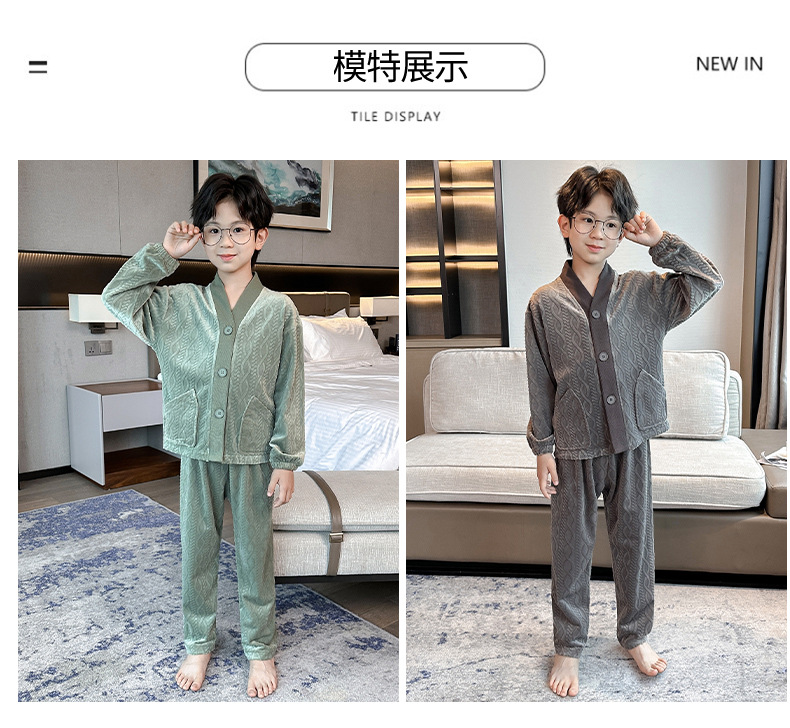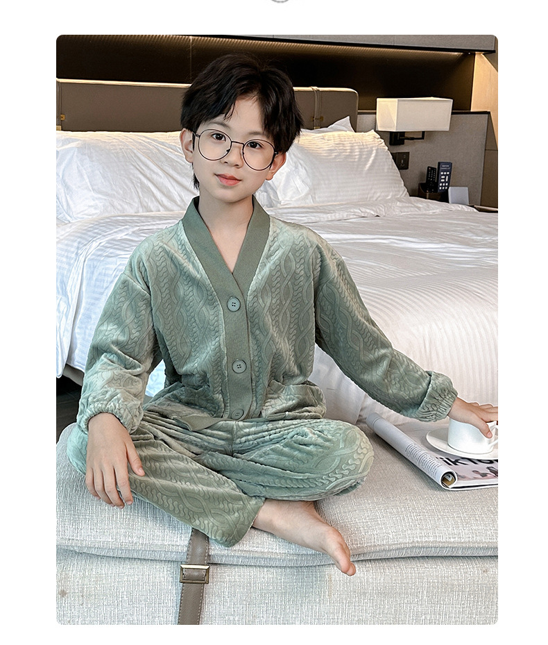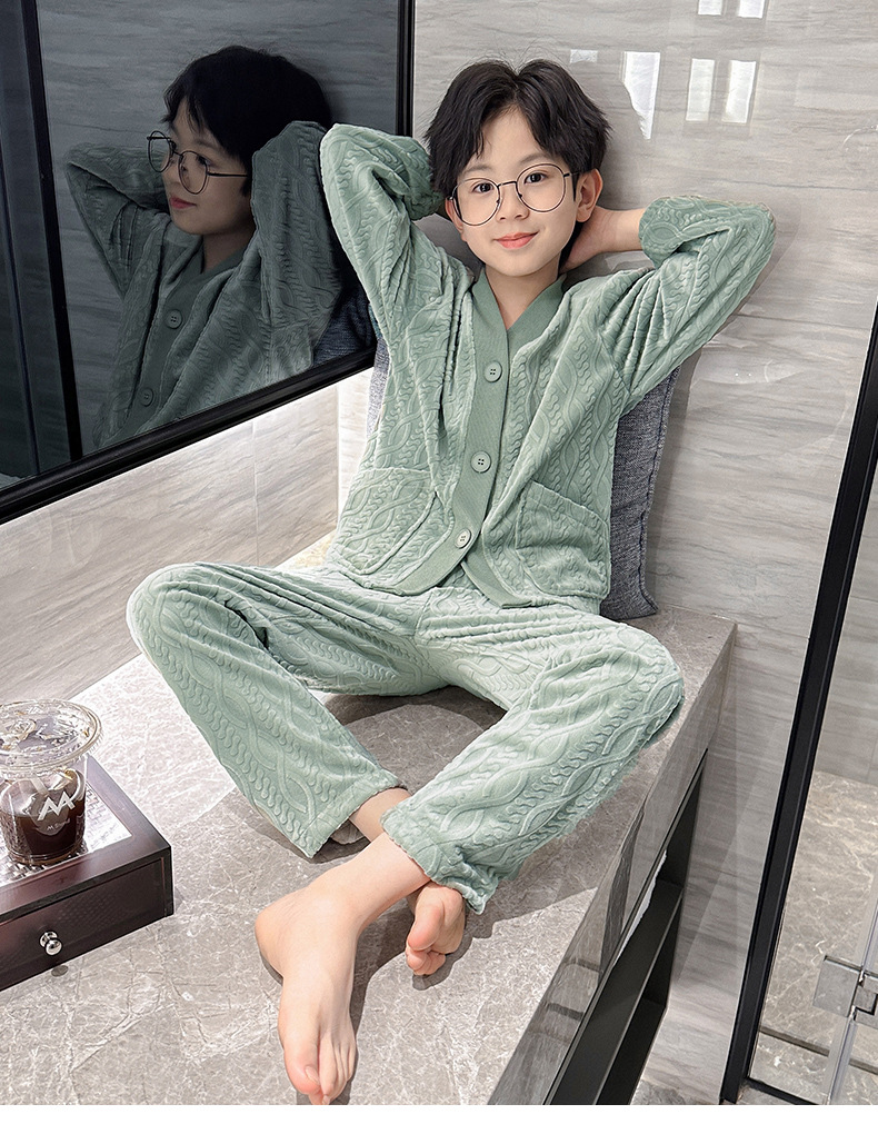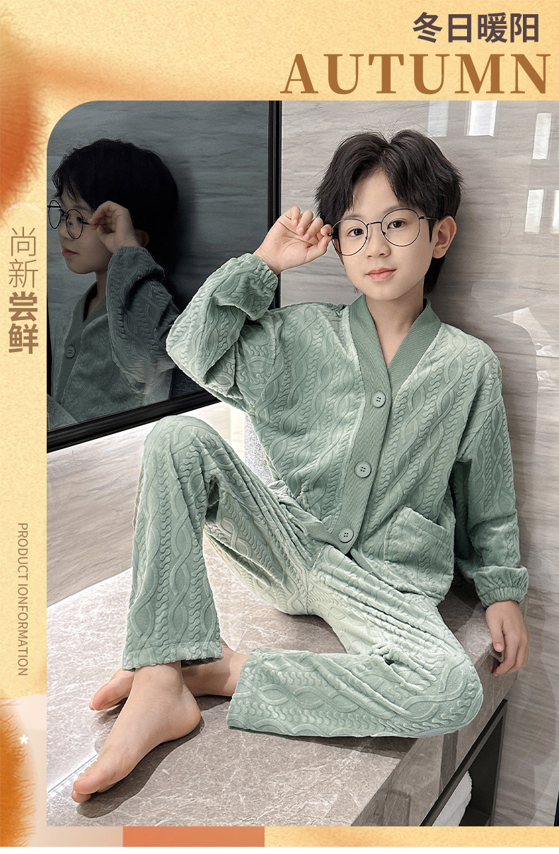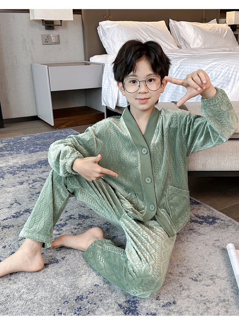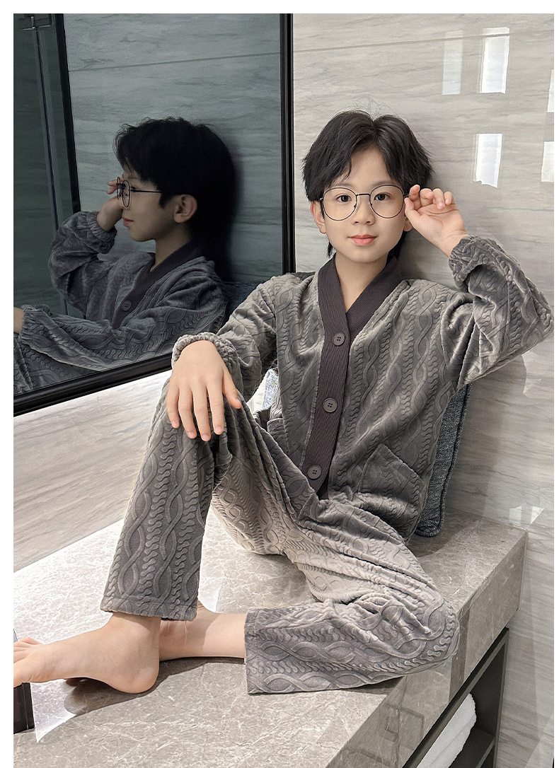 남아 긴팔 가정복 가을과 겨울 두꺼운 어린이 잠옷 가디건 캐주얼 투피스 아일랜드 벨벳 중형 및 대형 아동복