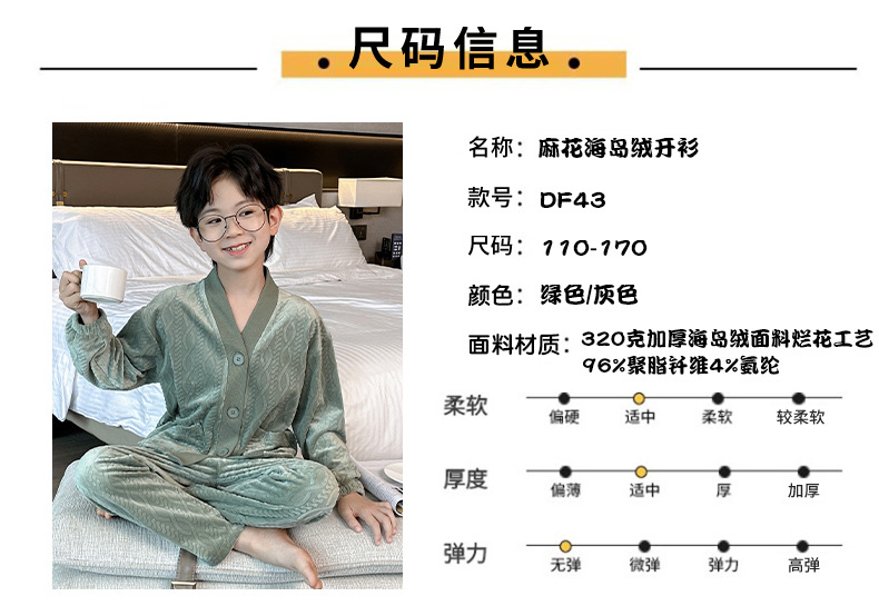 남아 긴팔 가정복 가을과 겨울 두꺼운 어린이 잠옷 가디건 캐주얼 투피스 아일랜드 벨벳 중형 및 대형 아동복스토어 가기