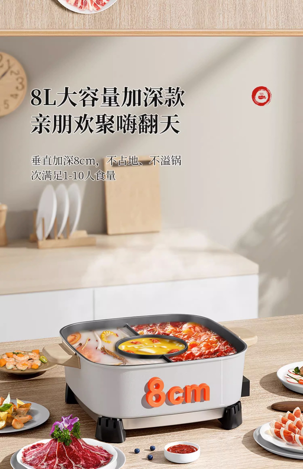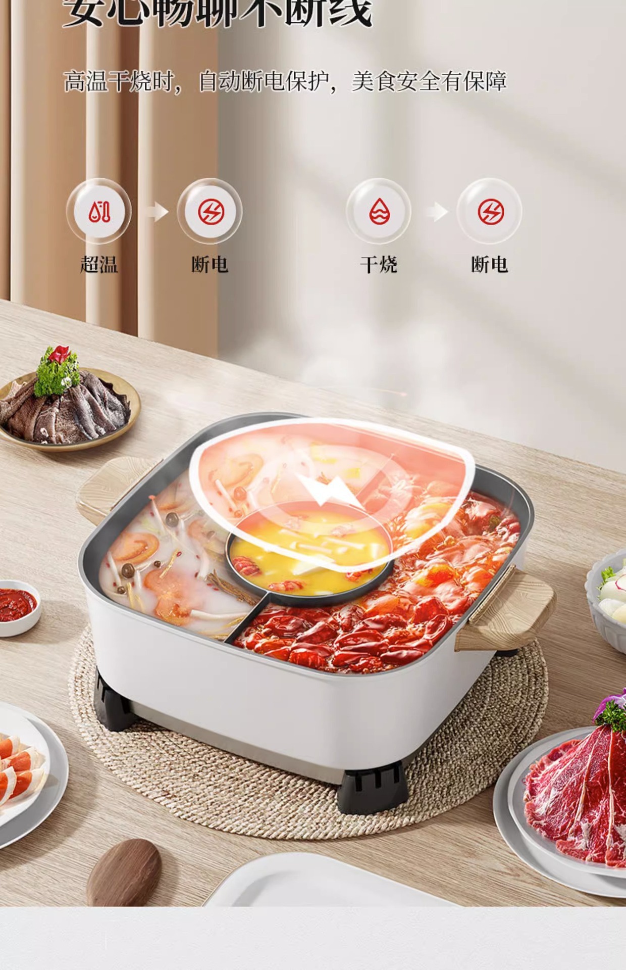 • 뚜껑 부착의 화이트 만다린 오리 전기 냄비 [1 년 보증]]