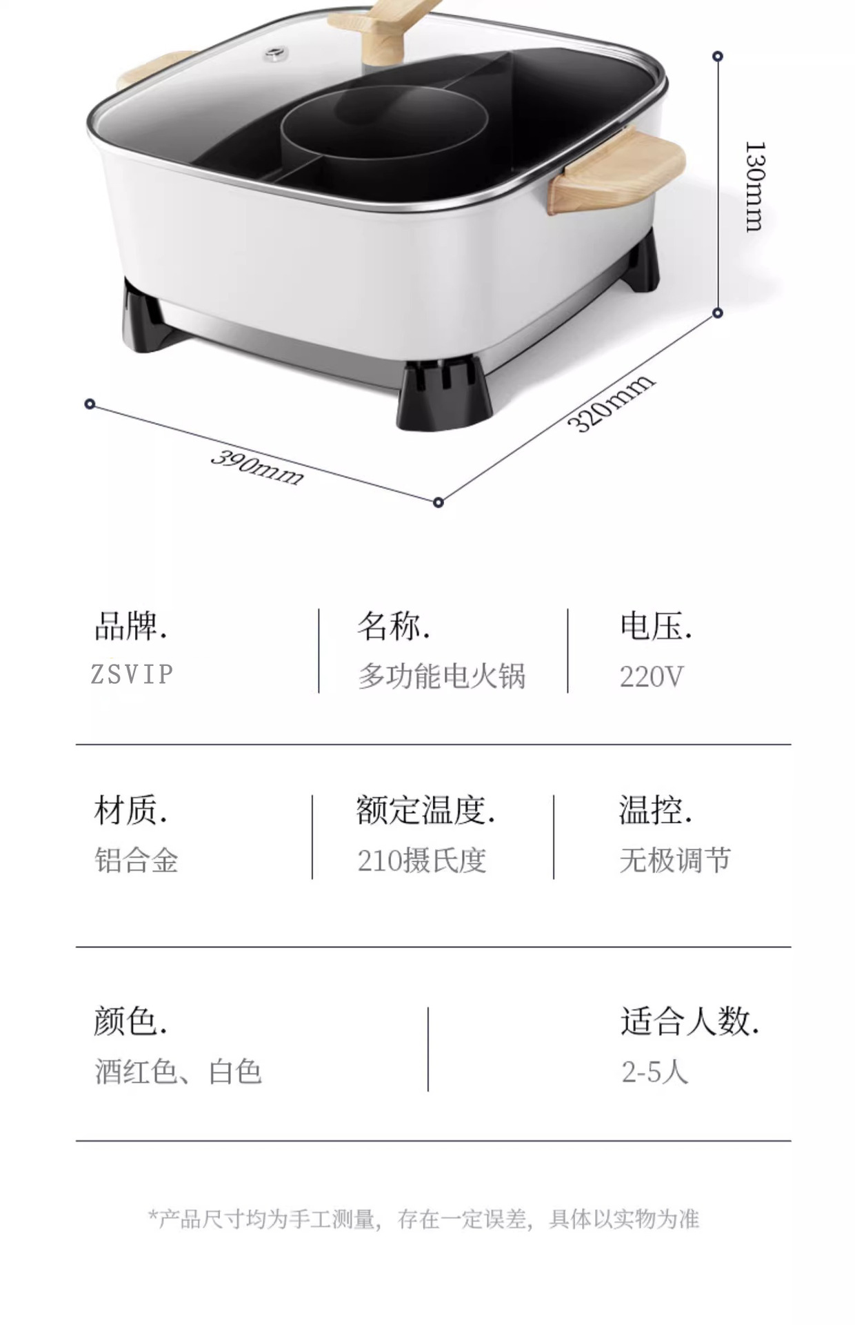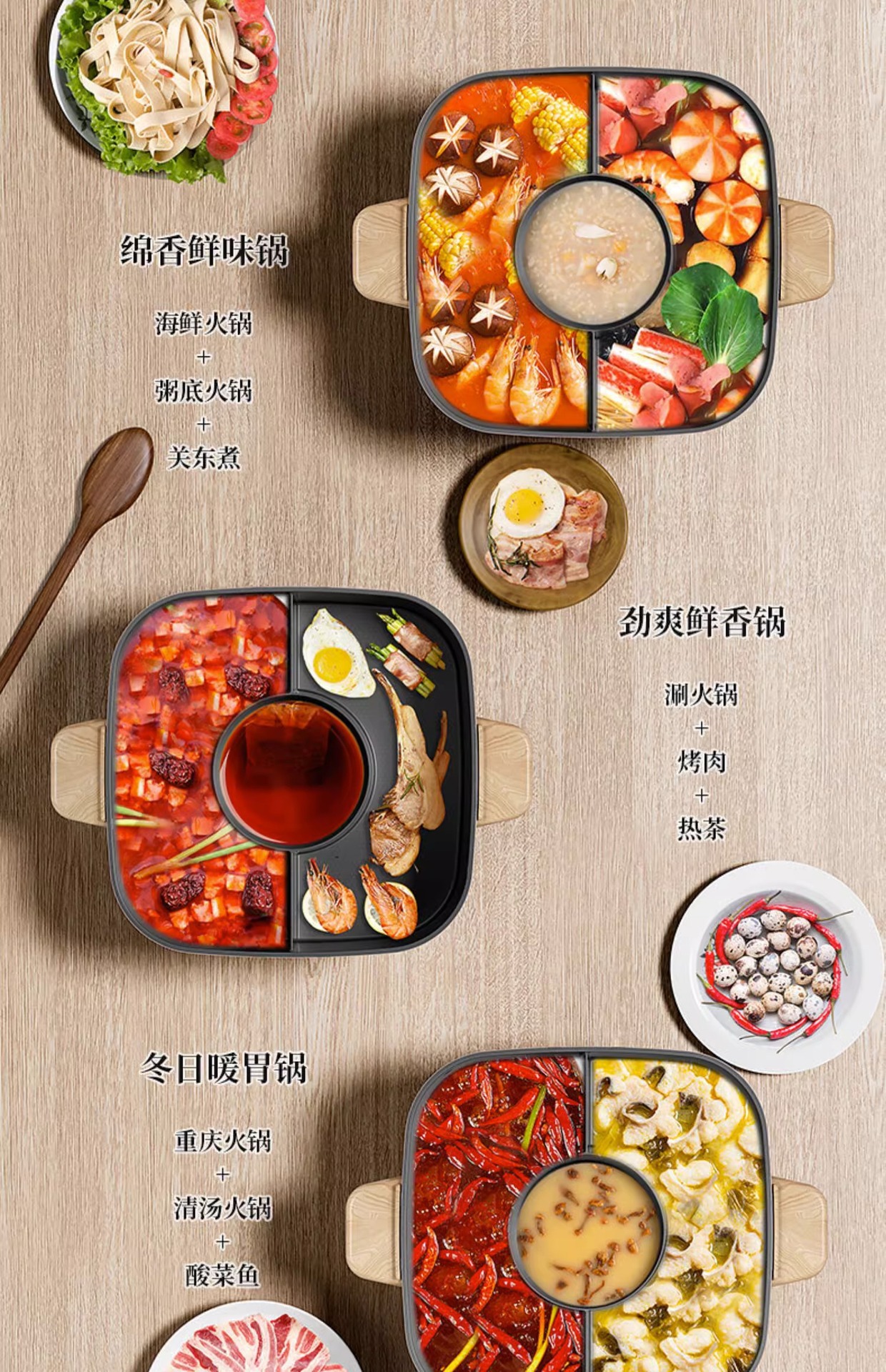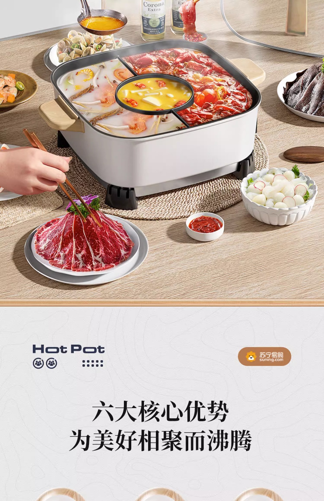 • 로즈 레드 3가지 맛 전기냄비+뚜껑 [1년 보증]