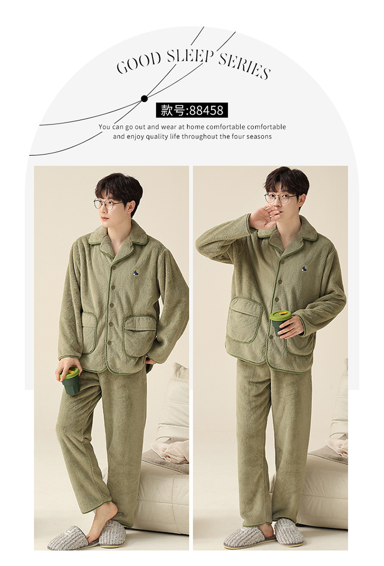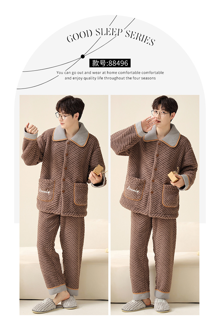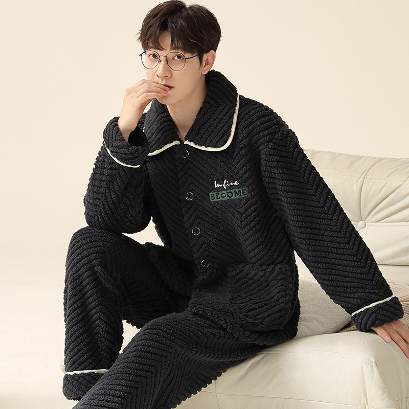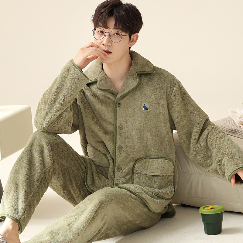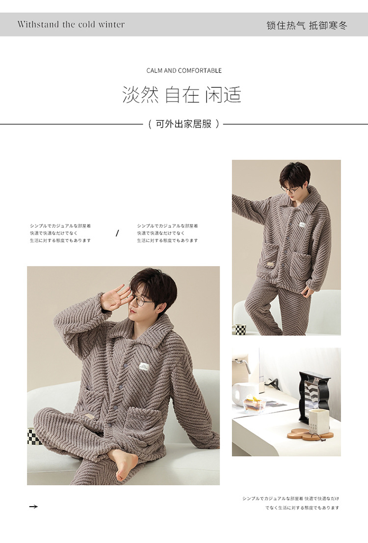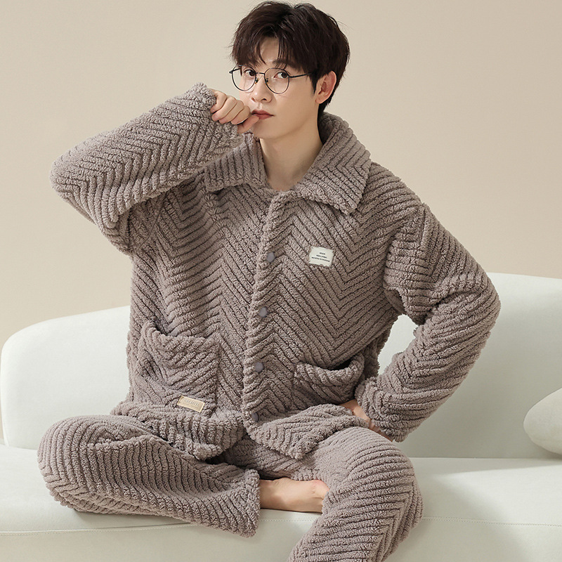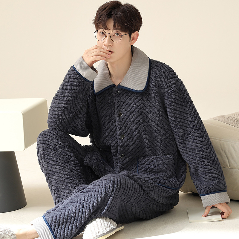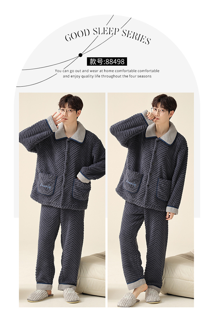 "두꺼운 기모" 따뜻한 잠옷 남자의 겨울 산호 양털 플란넬 가을과 겨울 아우터 카디건 가정 의류스토어 가기