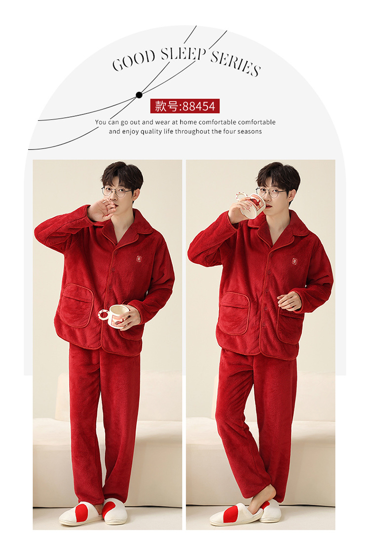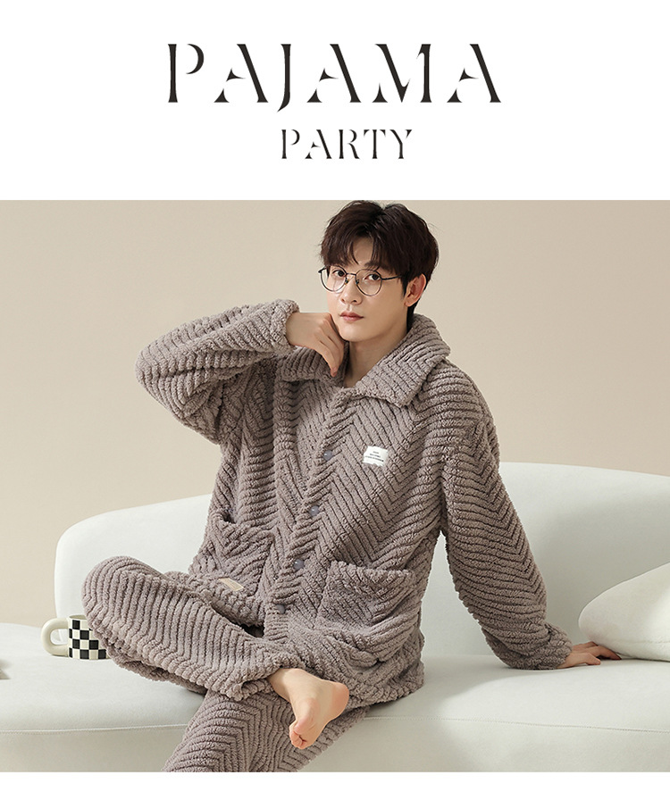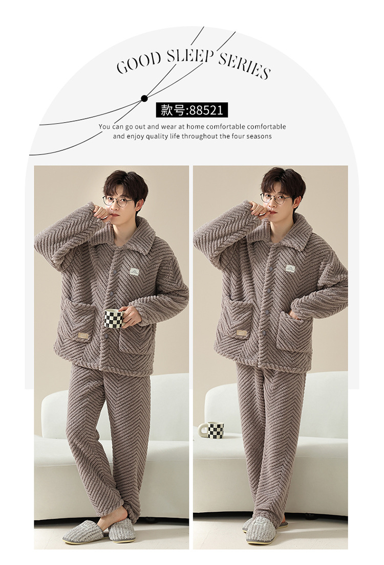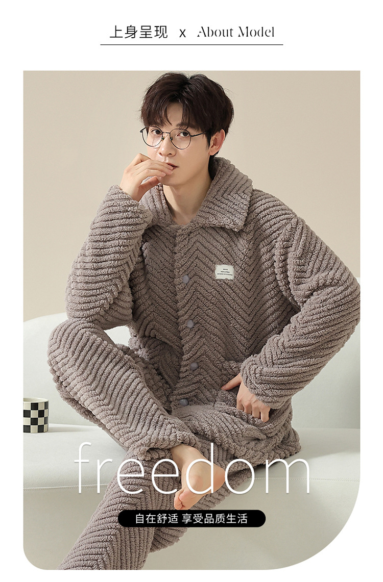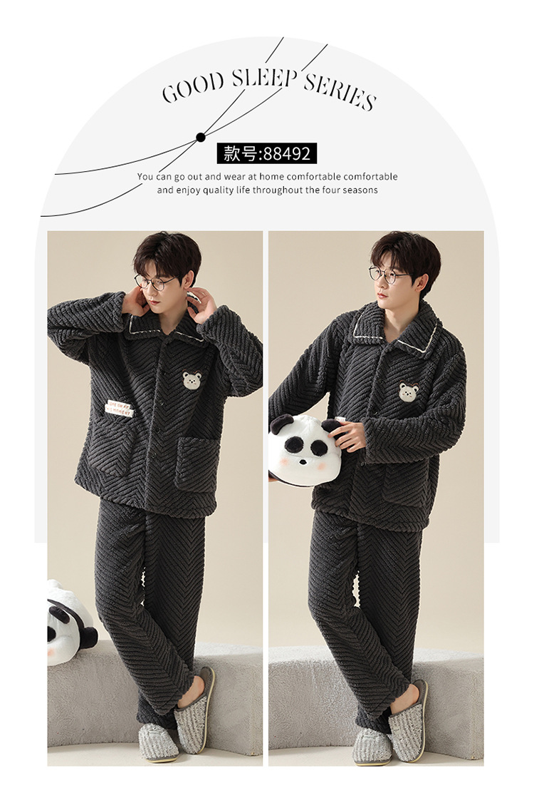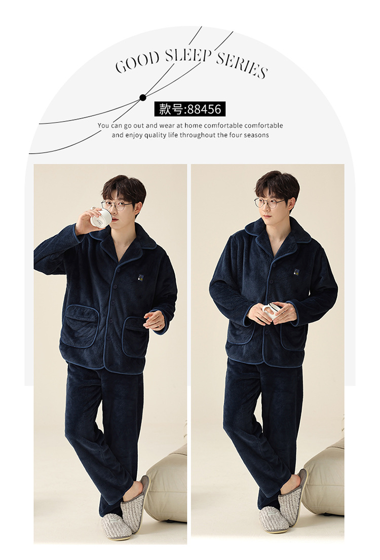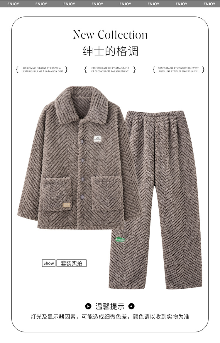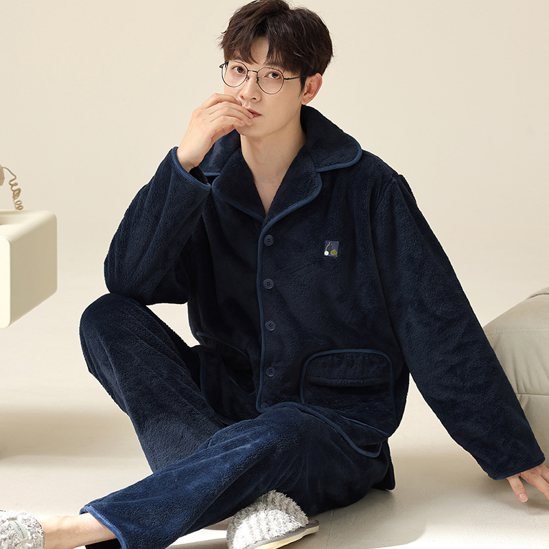 "두꺼운 기모" 따뜻한 잠옷 남자의 겨울 산호 양털 플란넬 가을과 겨울 아우터 카디건 가정 의류스토어 가기