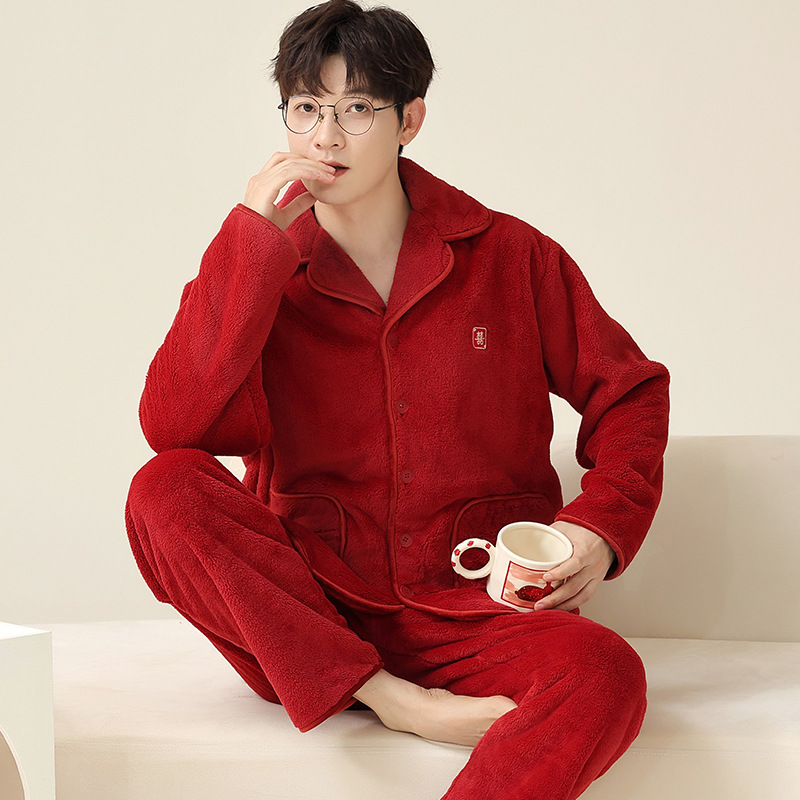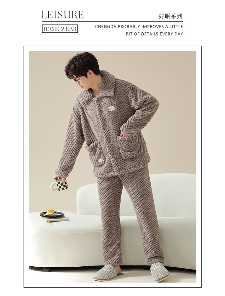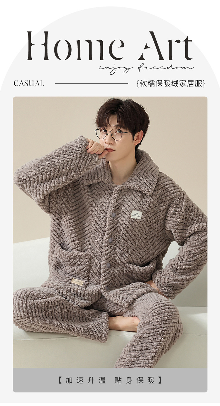 "두꺼운 기모" 따뜻한 잠옷 남자의 겨울 산호 양털 플란넬 가을과 겨울 아우터 카디건 가정 의류