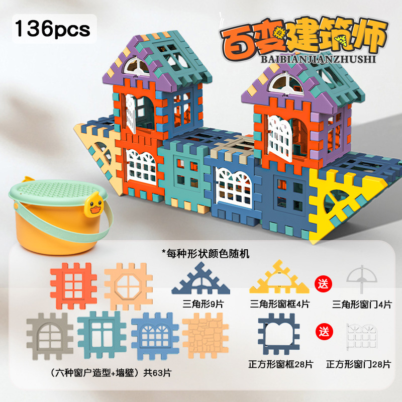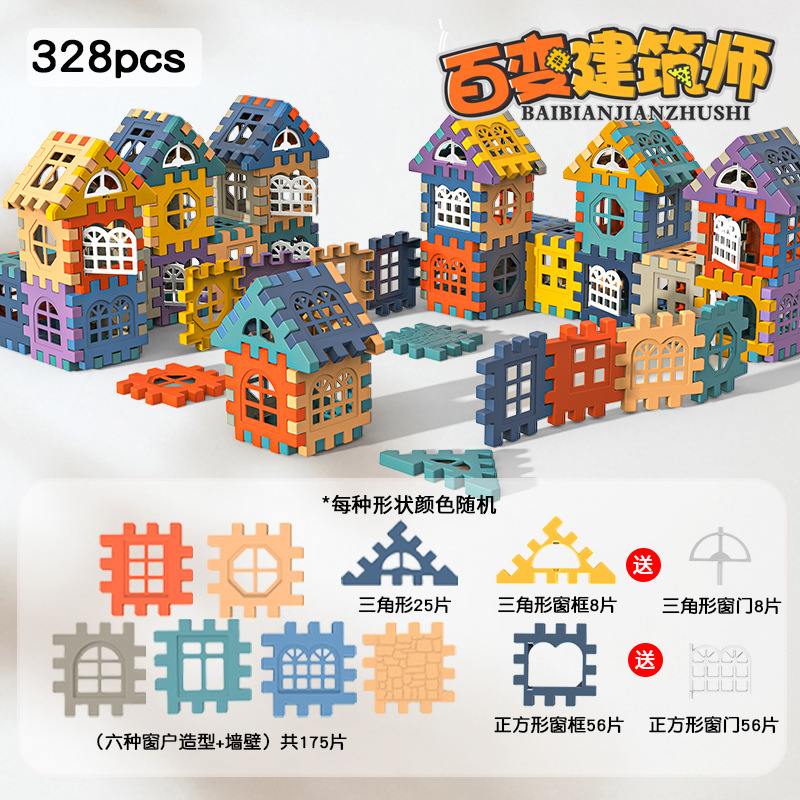 새 창문 열기 하우스 빌딩 블록 어린이 삽입 유치원 아기 장난감 조기 교육 계발 교육 완구스토어 가기