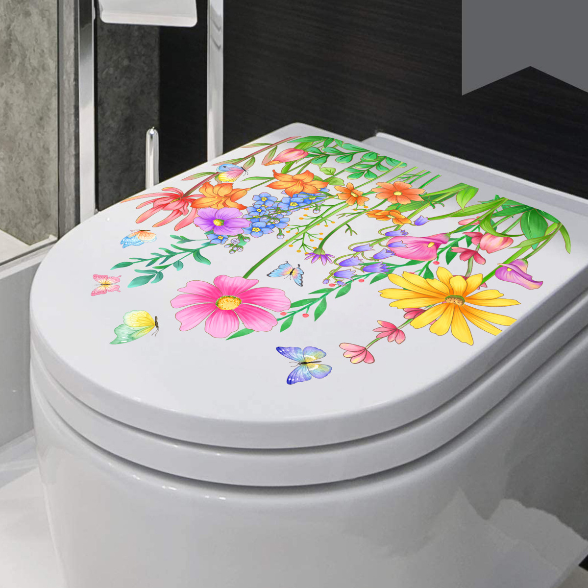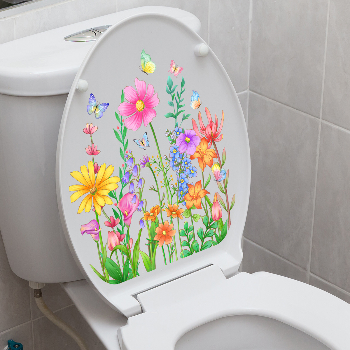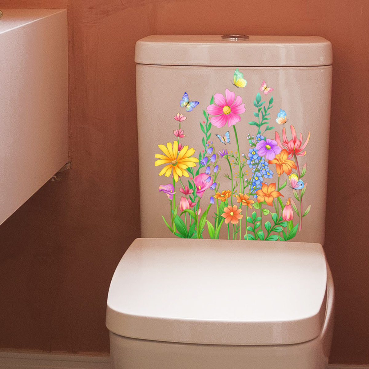 MS6314-ZY 식물 꽃 데이지 나비 화장실 스티커 욕실 화장실 장식 벽 스티커 방수