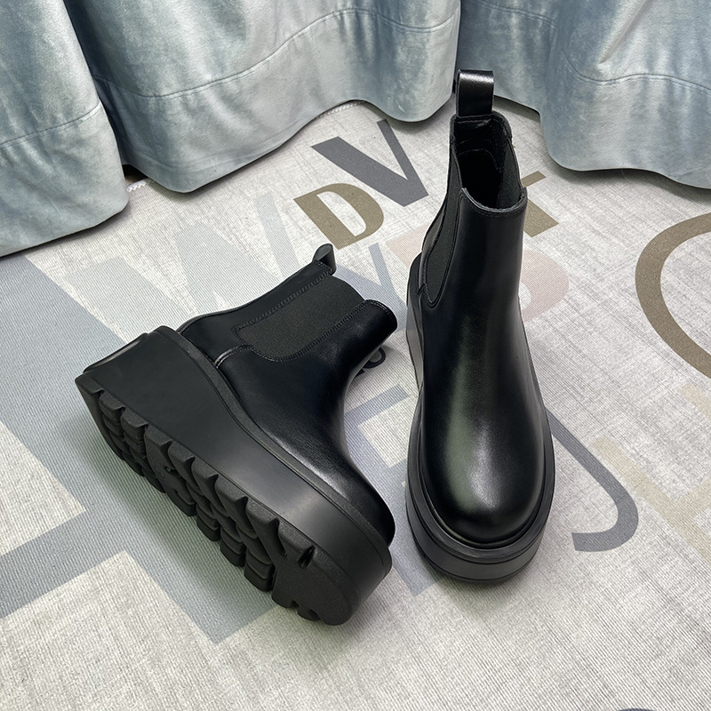 슈퍼 두꺼운 바닥 신발 플랫폼 바닥 긴 부츠 두꺼운 바닥 높은 부츠 여성을위한 작은 높이 부츠 아사 같은 스타일 마틴 부츠
