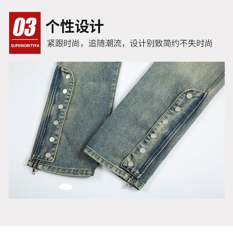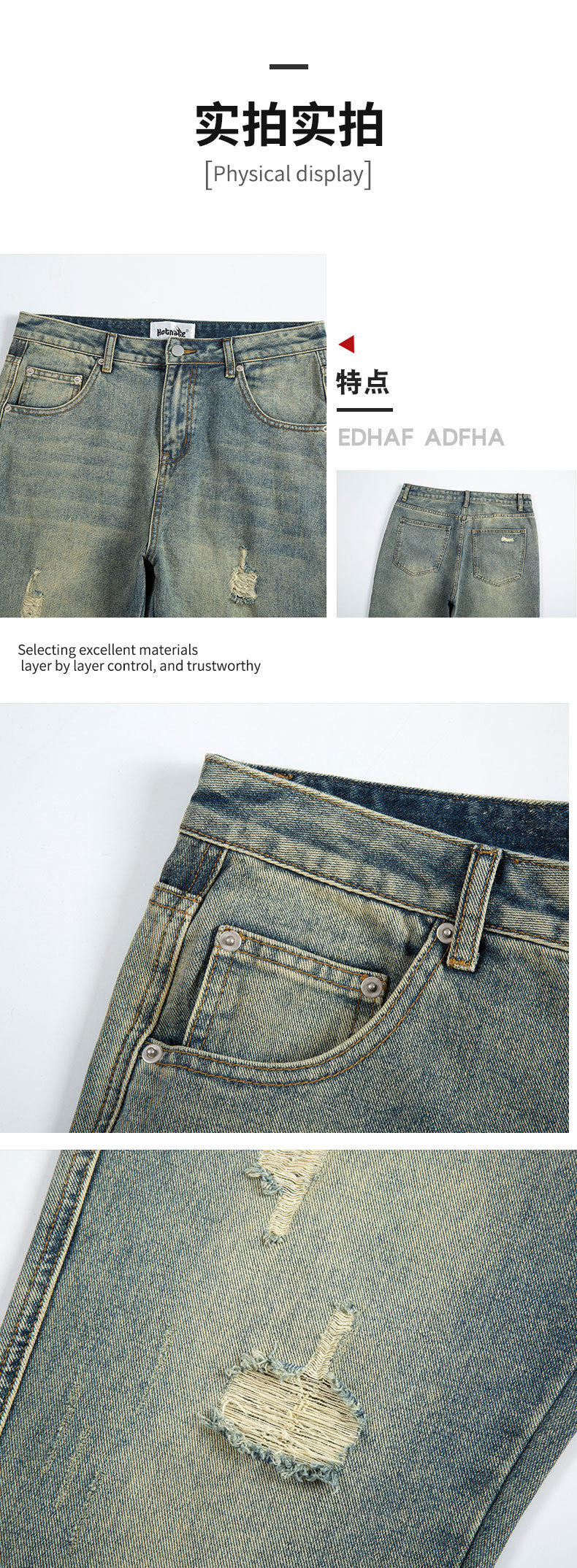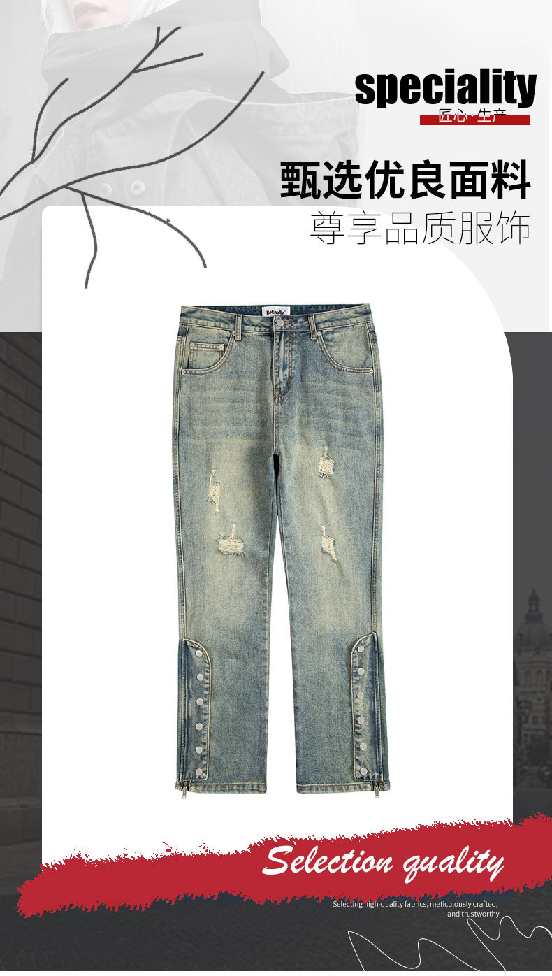 2025 신상 하이 스트리트 트렌디 찢어진 버튼 지퍼 데님 팬츠 남성 패션 브랜드 루즈핏 레트로 워싱 롱 팬츠스토어 가기