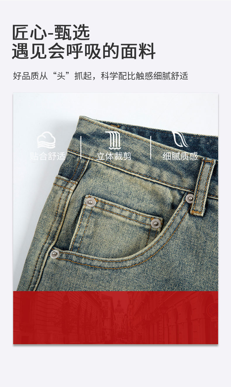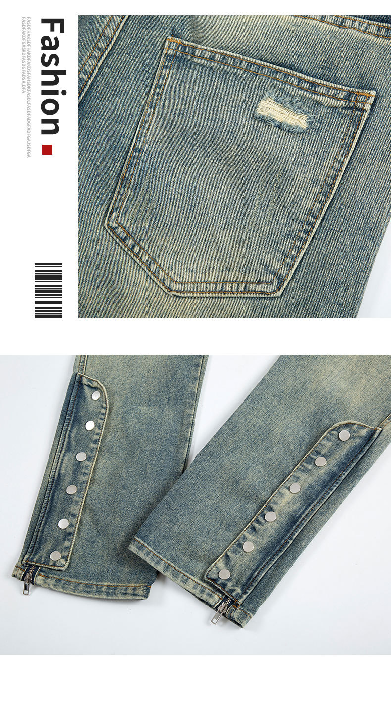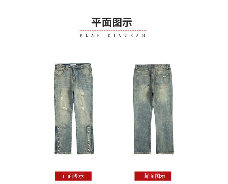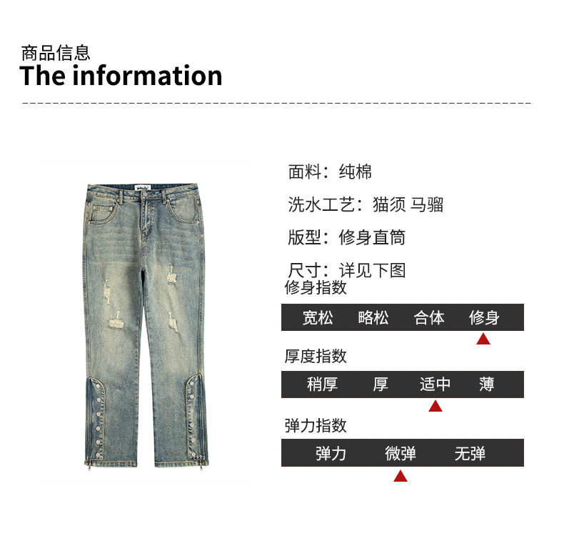 2025 신상 하이 스트리트 트렌디 찢어진 버튼 지퍼 데님 팬츠 남성 패션 브랜드 루즈핏 레트로 워싱 롱 팬츠스토어 가기