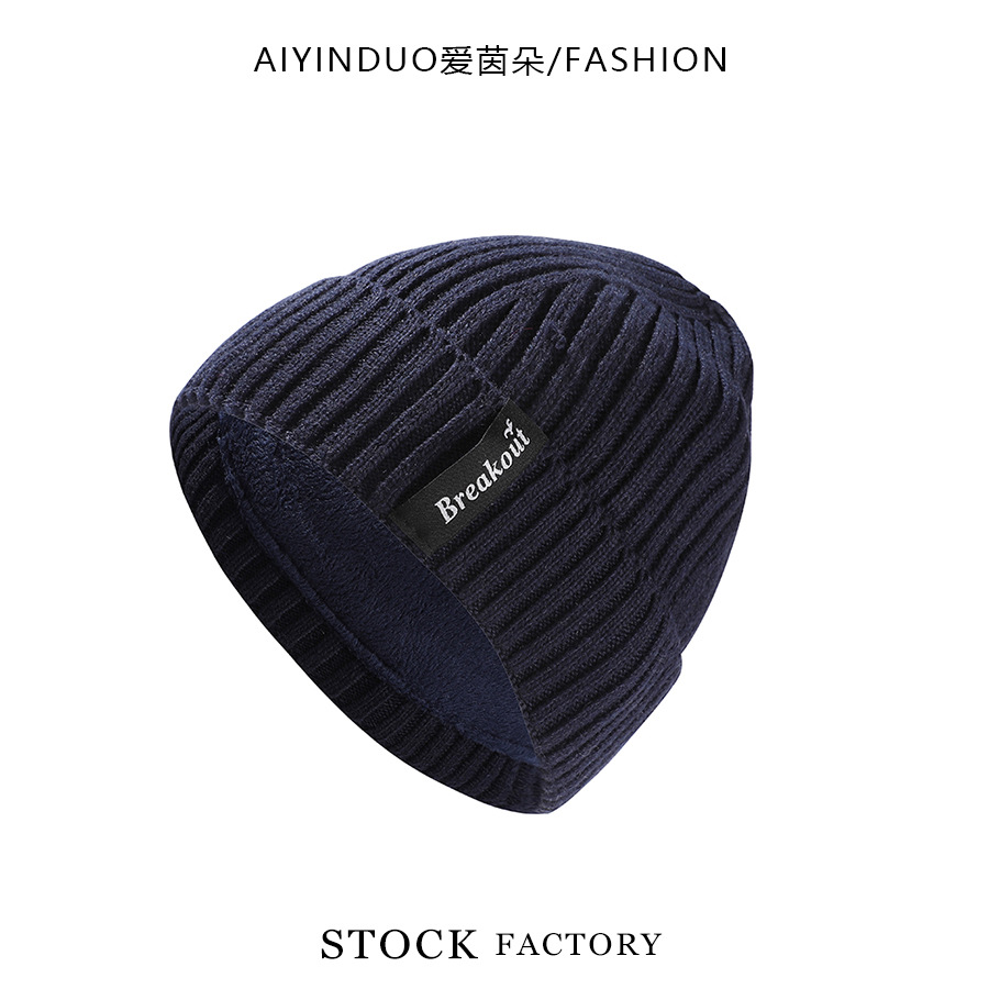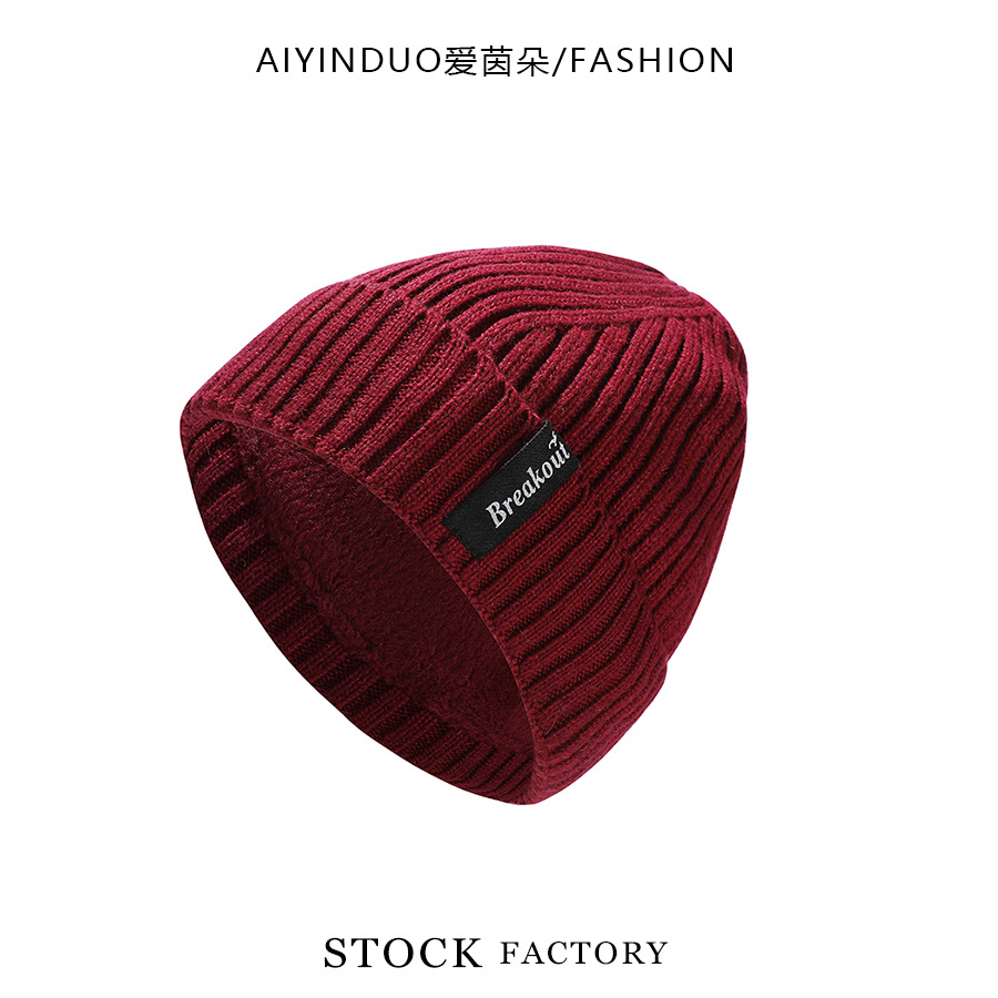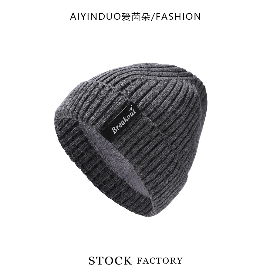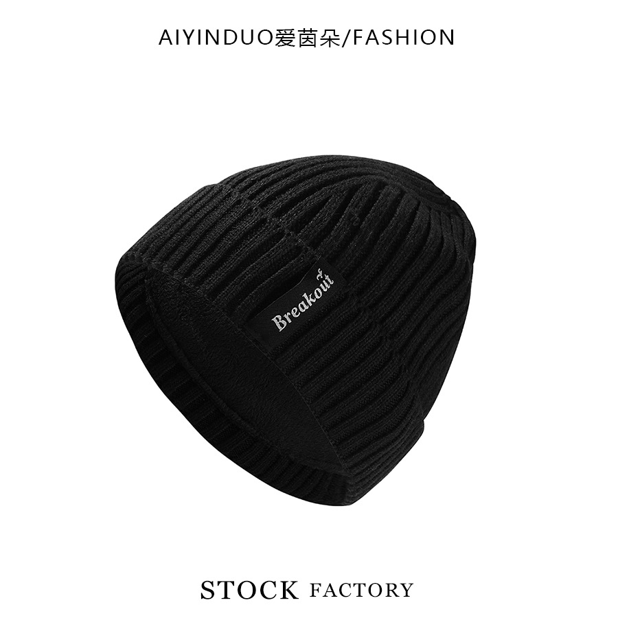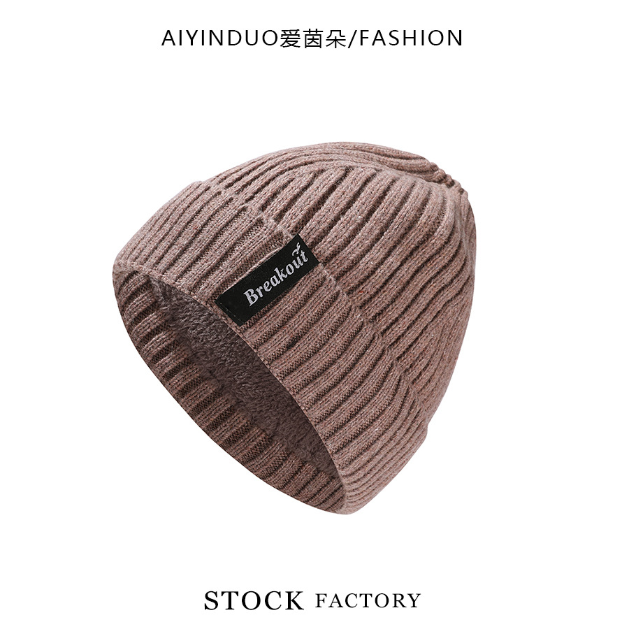 한국 스타일 새로운 가을 겨울 울 니트 모자 편지 라벨 유행 간단한 따뜻한 모자 기모 두꺼운 방풍 모자