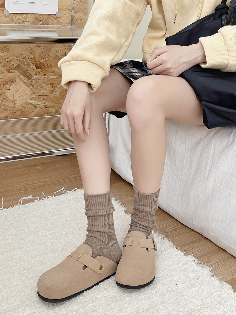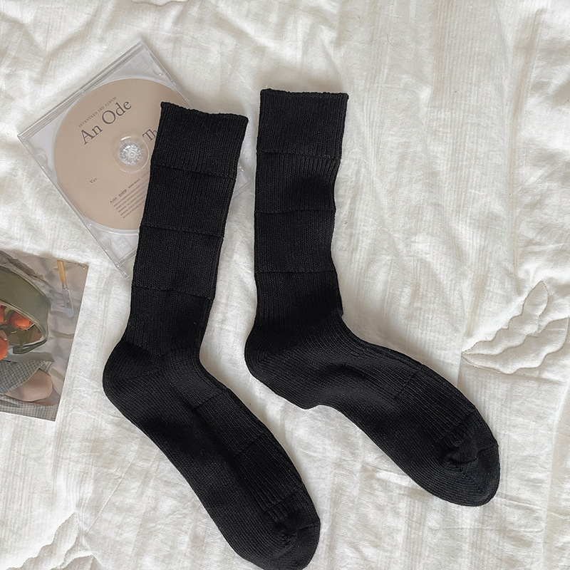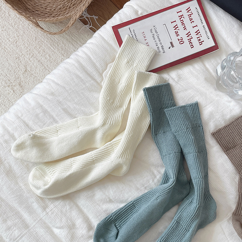 가을과 겨울 새로운 두꺼운 라인 양말 여성용 미드 튜브 양말 레트로 더블 바늘 쌓기 양말 디자인 유행 양말 유럽 질감 감각스토어 가기