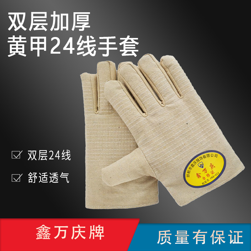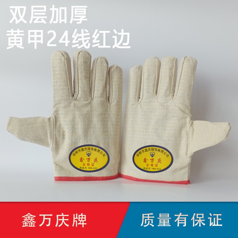 双层全衬黄甲24道线手套手套机械电焊工耐磨加厚耐用劳保防护用品