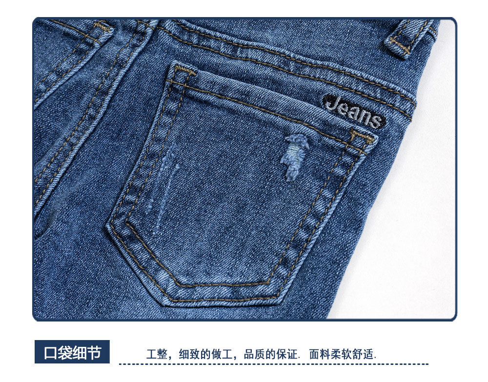 클래식 도매 어린이 의류 데님 캐주얼 대외 무역 십대 영국 스트레이트 다리 바지 여름 어린이 찢어진 데님 바지스토어 가기