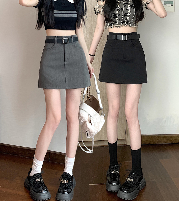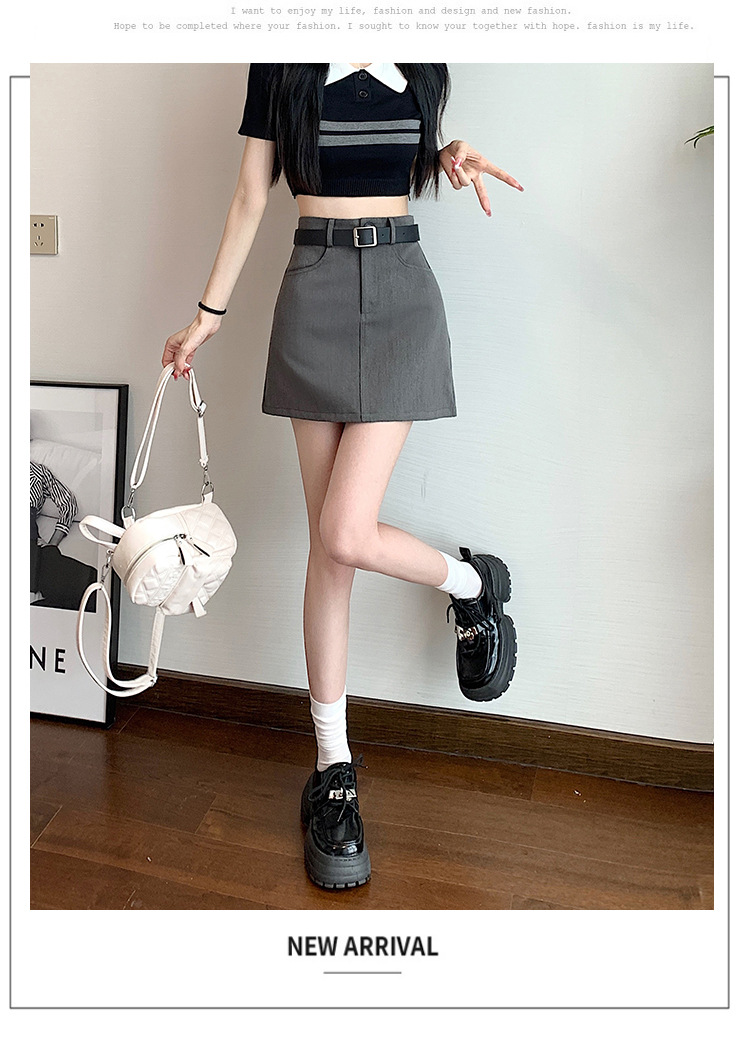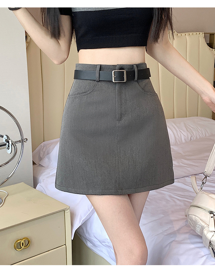 뉴 그레이 하이 웨이스트 슬림 세트 스커트 A 형 스커트 뜨거운 소녀 가을 작은 짧은 치마 여성 도매스토어 가기