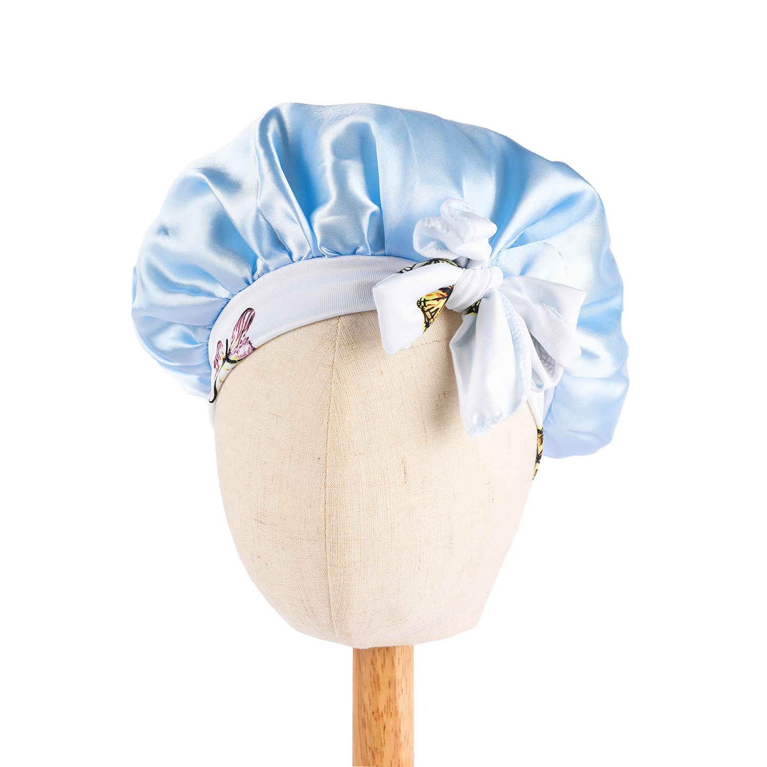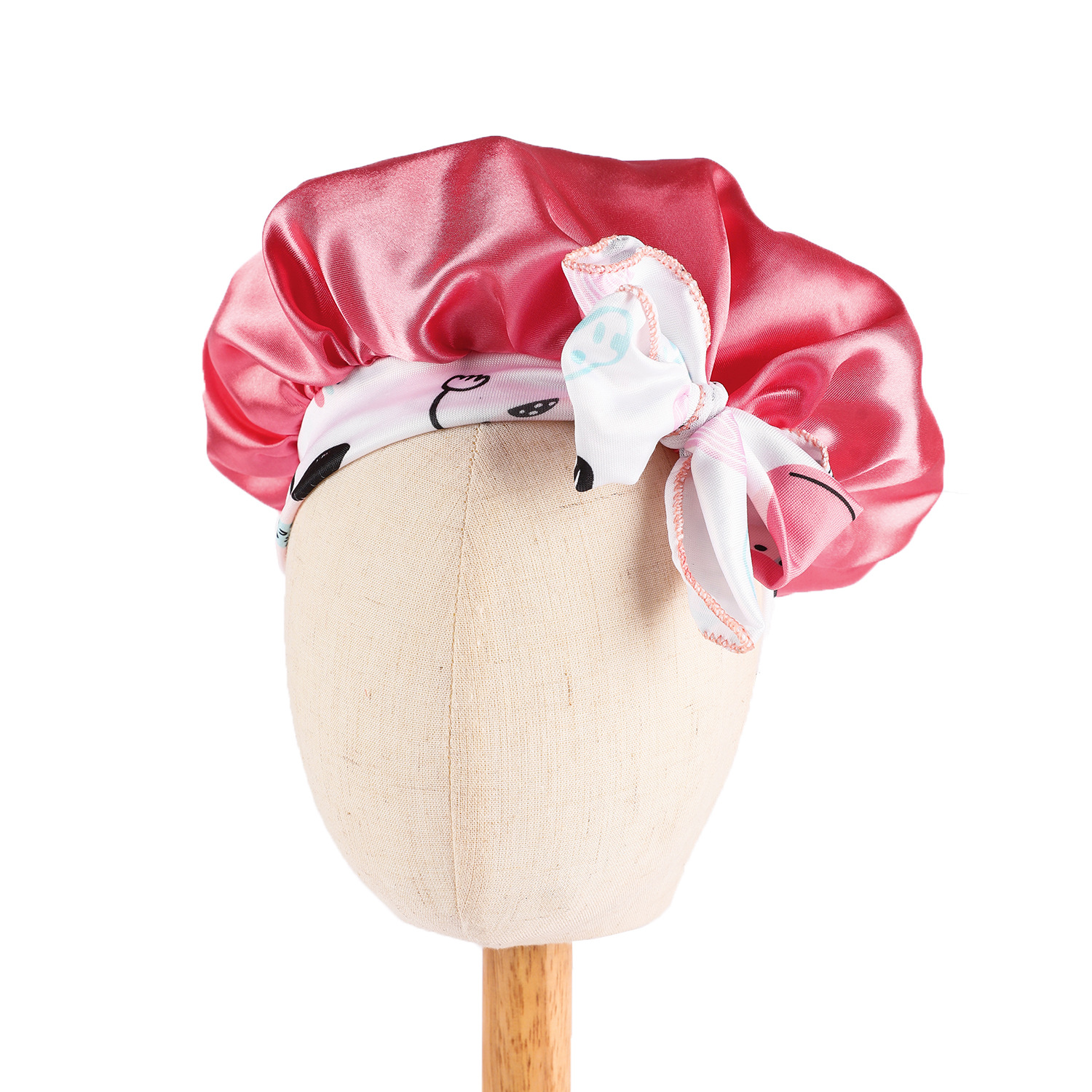 새로운 인쇄 스트랩 어린이 Nightcap 유럽과 미국 크로스 보더 재고 귀여운 아기 헤어 케어 모자 탄성 넓은 챙 라운드 모자