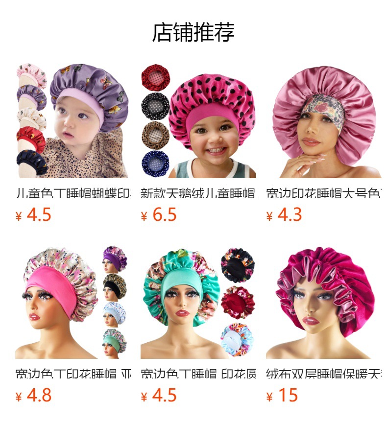 새로운 인쇄 스트랩 어린이 Nightcap 유럽과 미국 크로스 보더 재고 귀여운 아기 헤어 케어 모자 탄성 넓은 챙 라운드 모자스토어 가기
