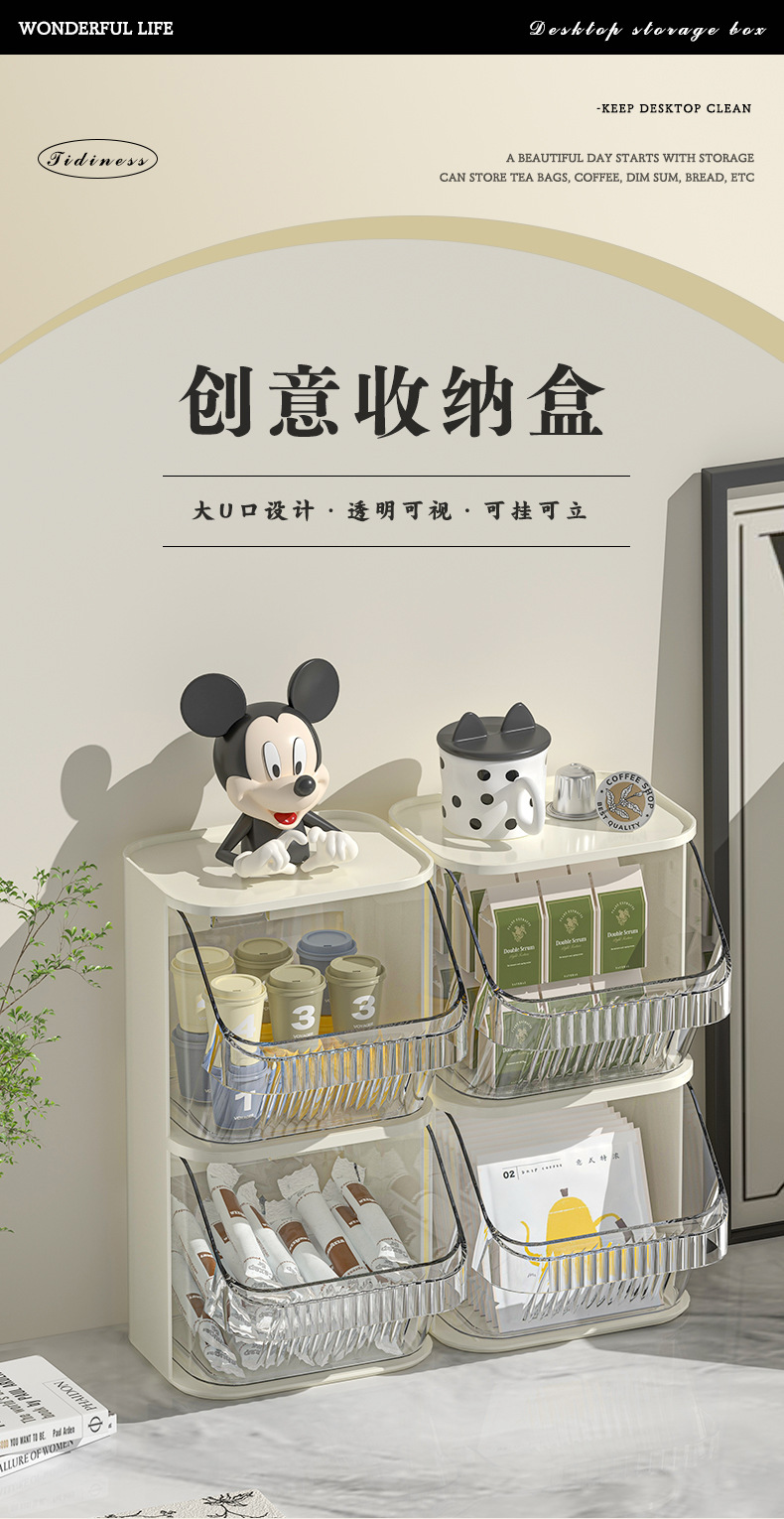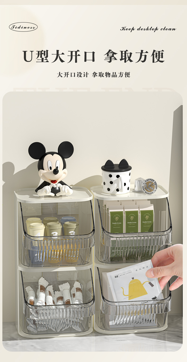 다층 아크릴 보관함 크리 에이 티브 데스크 데스크탑 보관함 잔해물 방진 투명 펀치없는 벽걸이 형 보관함