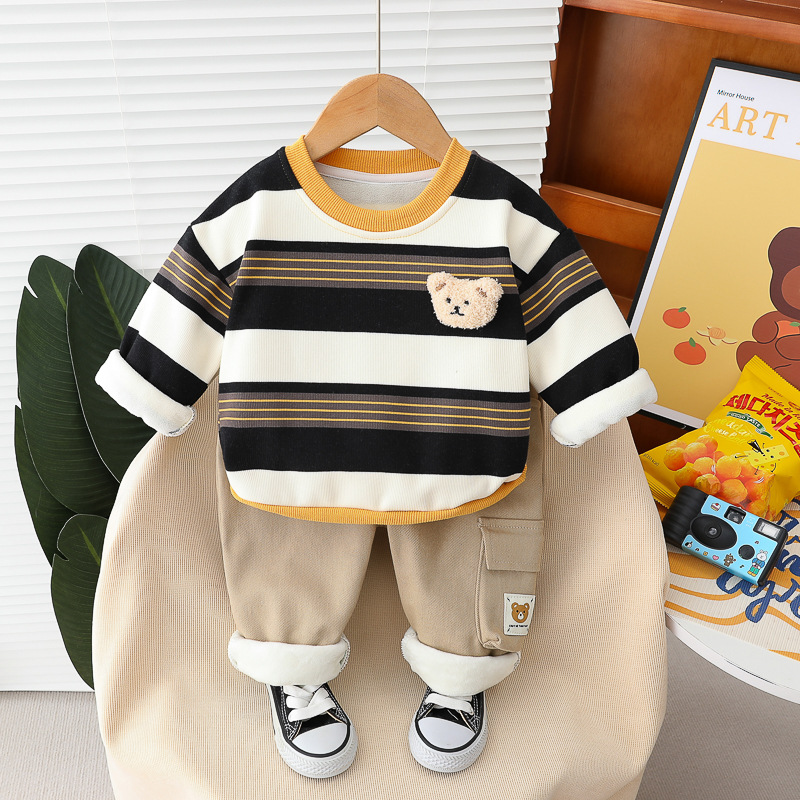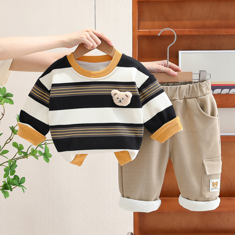 가을과 겨울에 소년과 어린이를위한 겨울 의류 세트 아기 기모 패딩 스웨터의 세대 아기 소녀 따뜻한 투피스 세트
