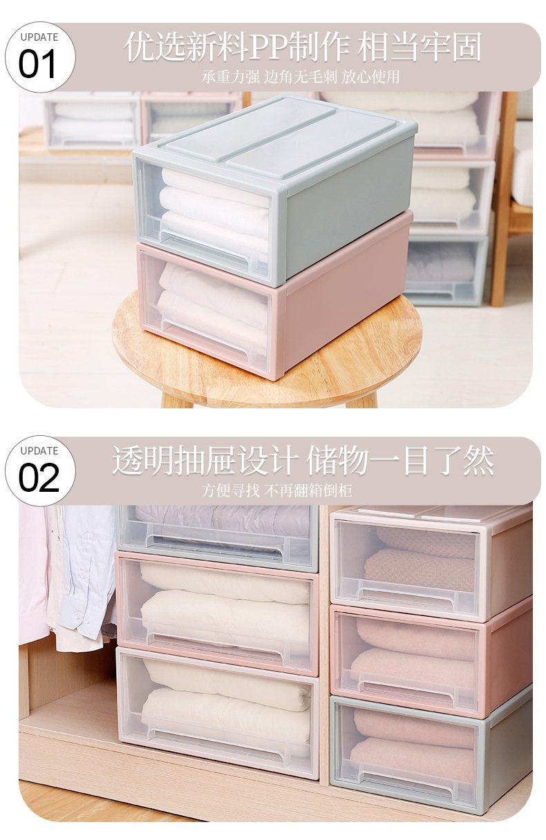 서랍 형 보관 상자 투명 가정용 다층 무료 조합 보관 상자 신발 상자 침구 의류 플라스틱 보관 상자