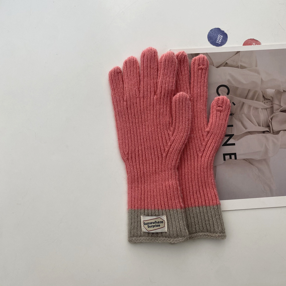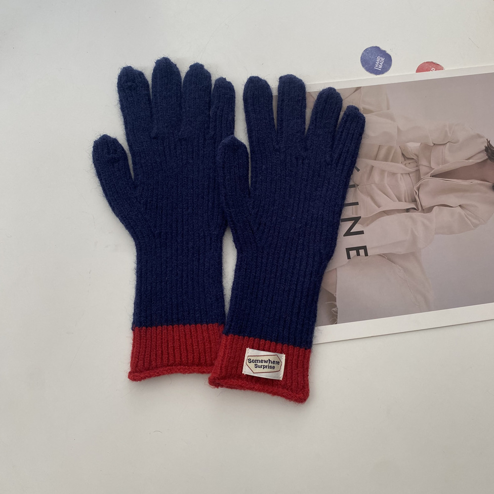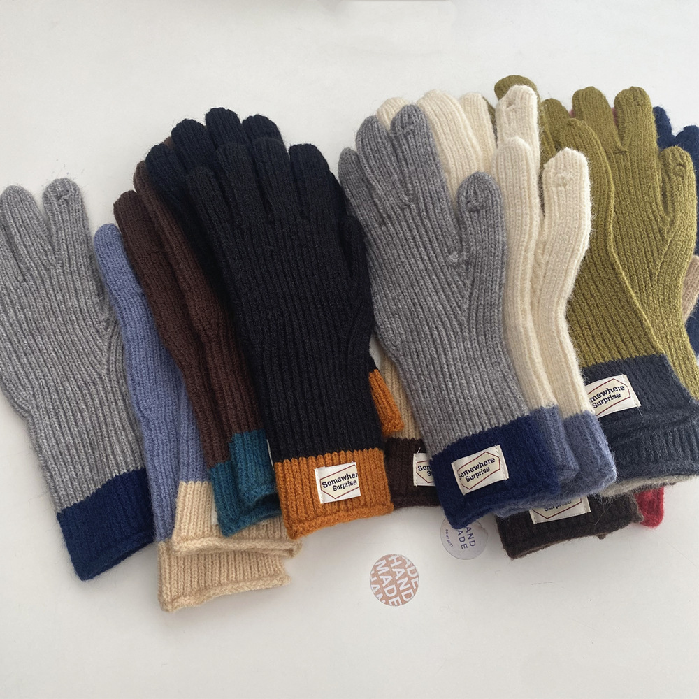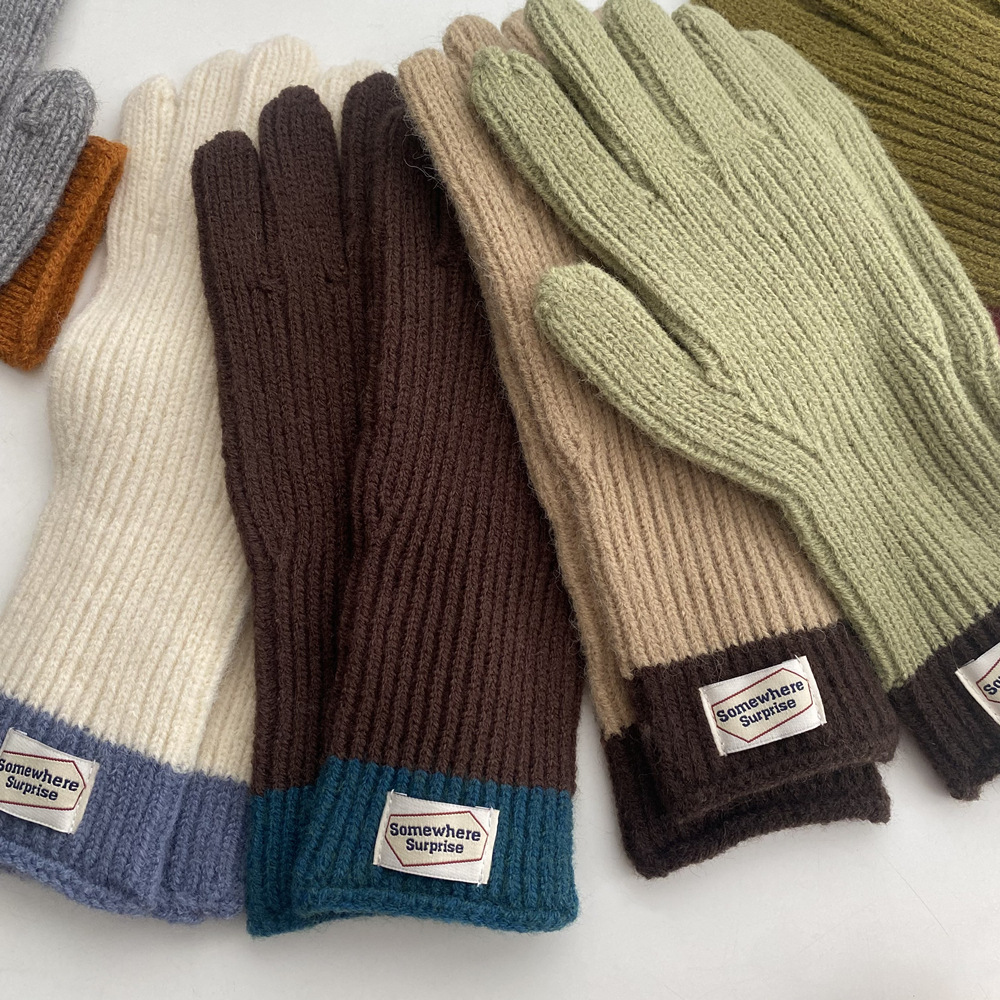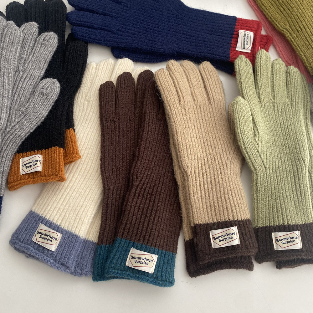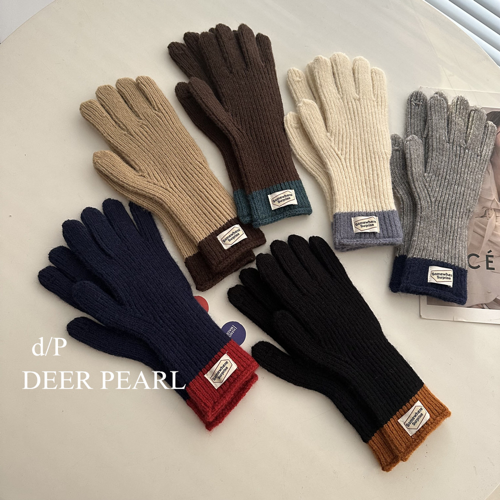 다섯 손가락 장갑 2023 새로운 가을과 겨울 따뜻한 여성 컬러 매칭 터치 스크린과 블로거에서 한국 장갑스토어 가기