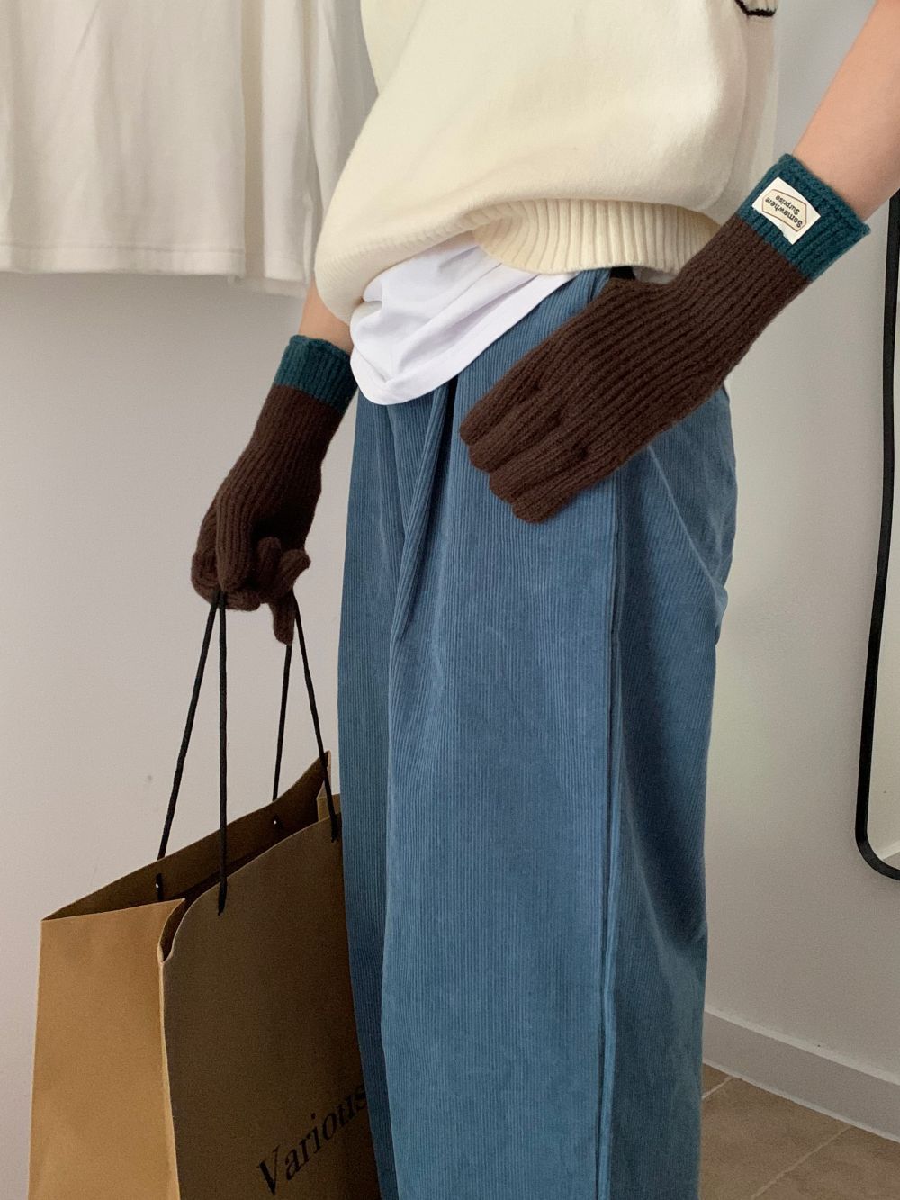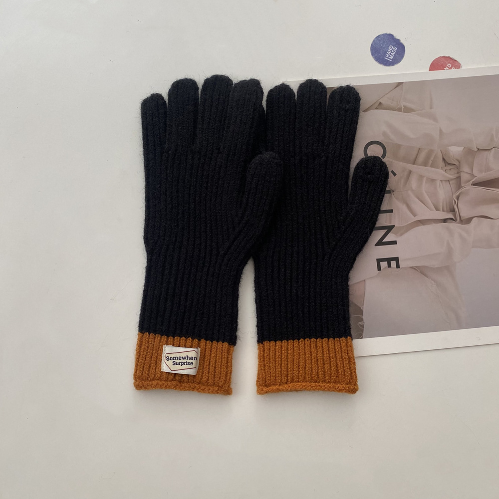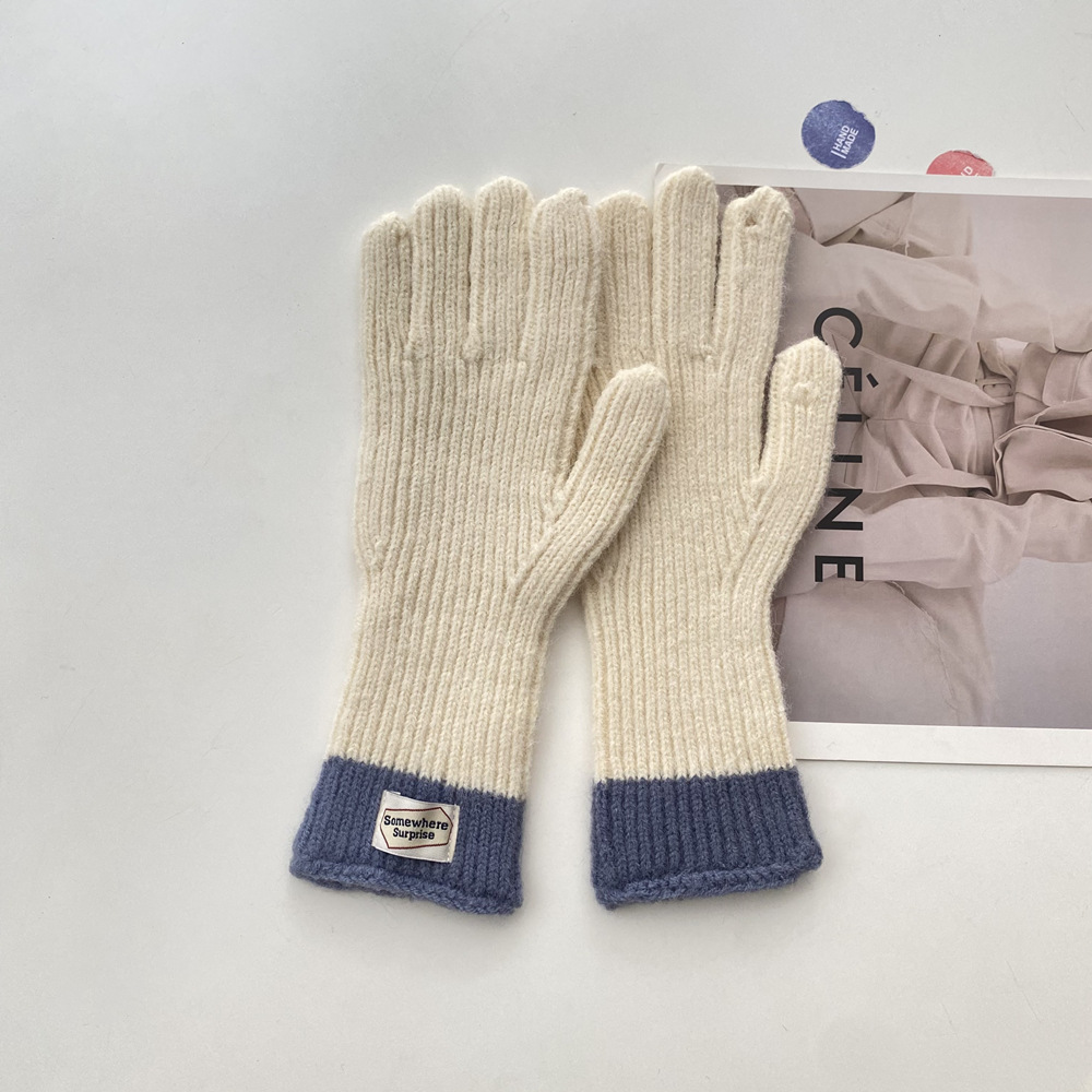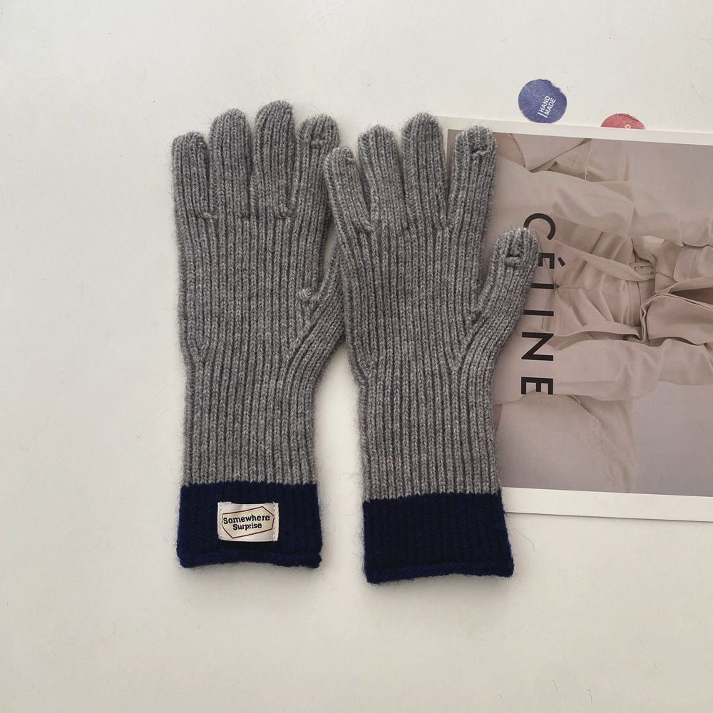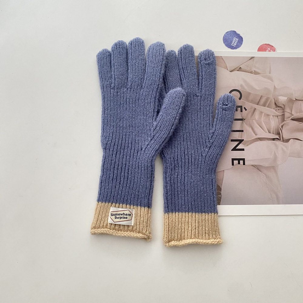 다섯 손가락 장갑 2023 새로운 가을과 겨울 따뜻한 여성 컬러 매칭 터치 스크린과 블로거에서 한국 장갑스토어 가기