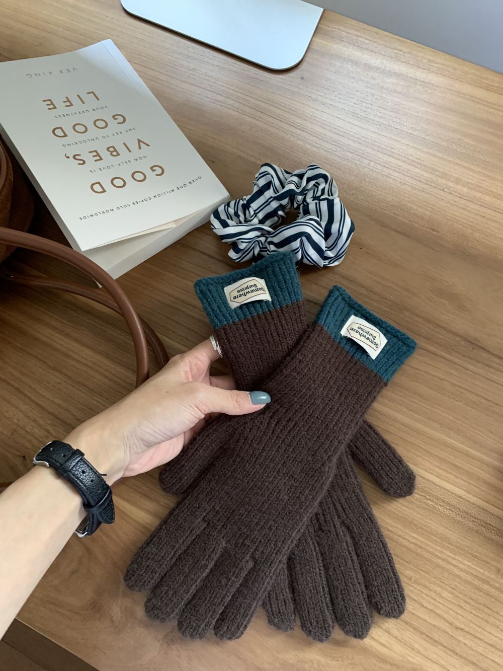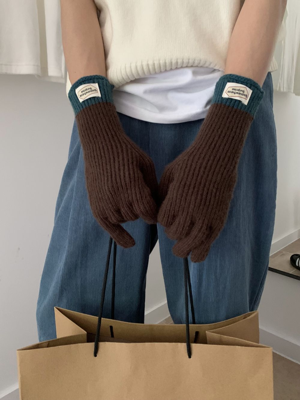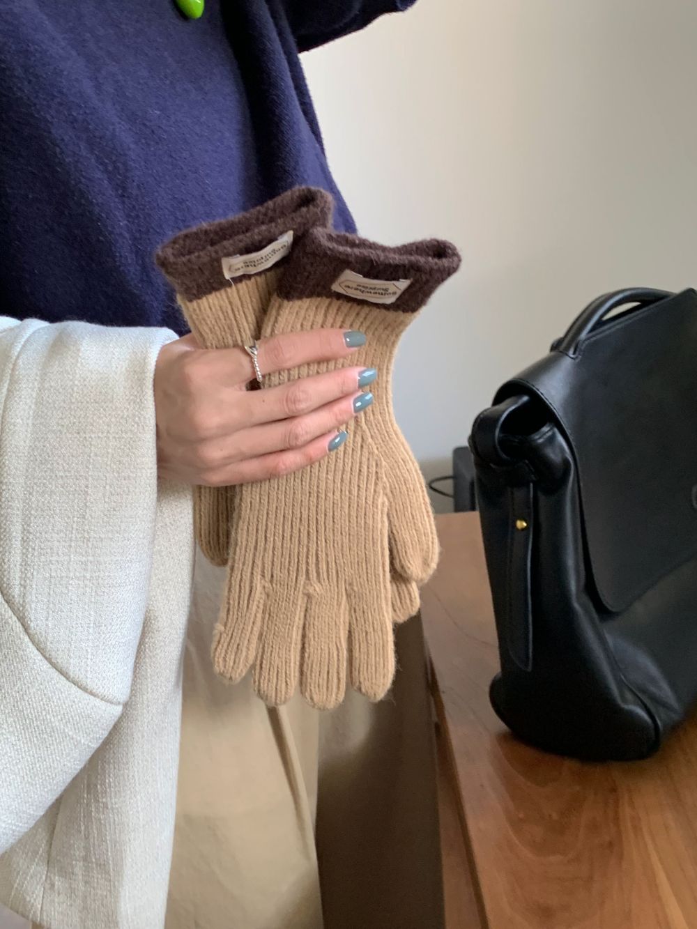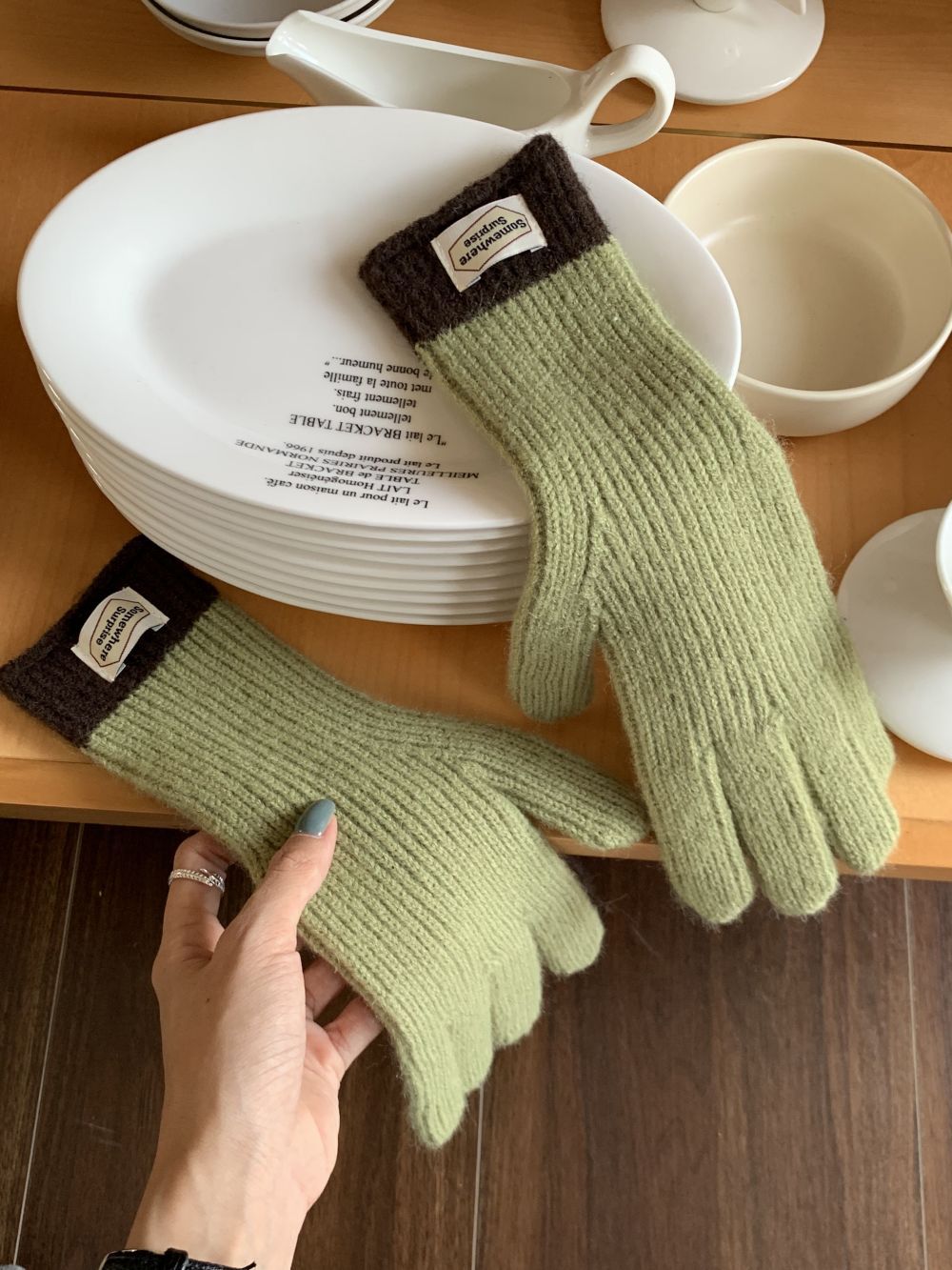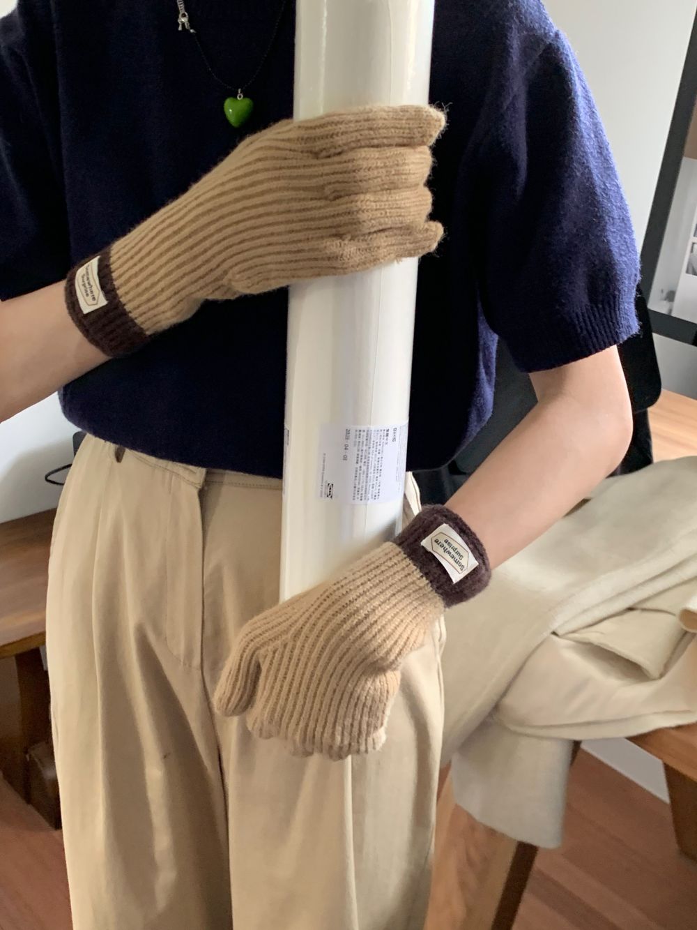다섯 손가락 장갑 2023 새로운 가을과 겨울 따뜻한 여성 컬러 매칭 터치 스크린과 블로거에서 한국 장갑스토어 가기