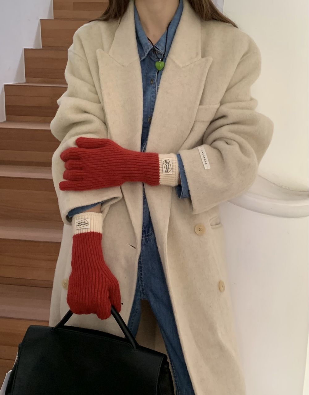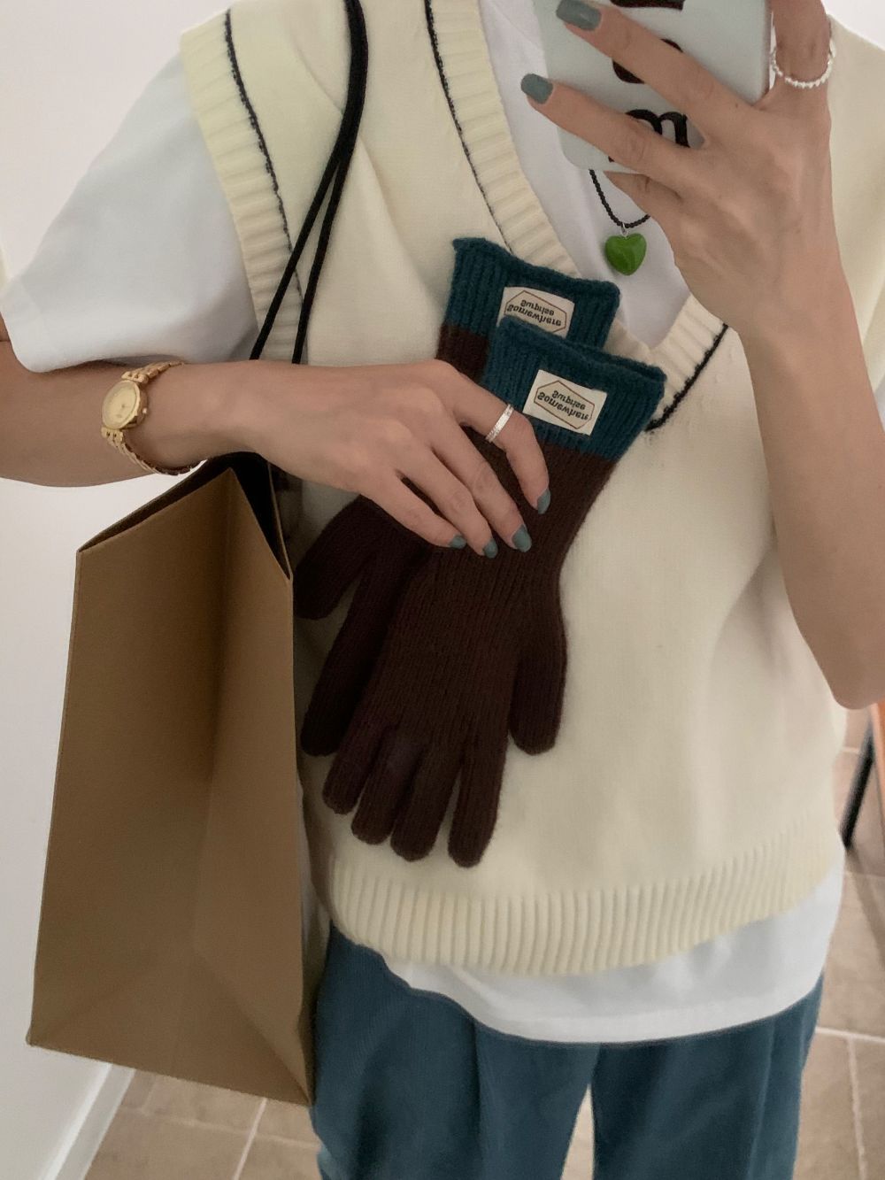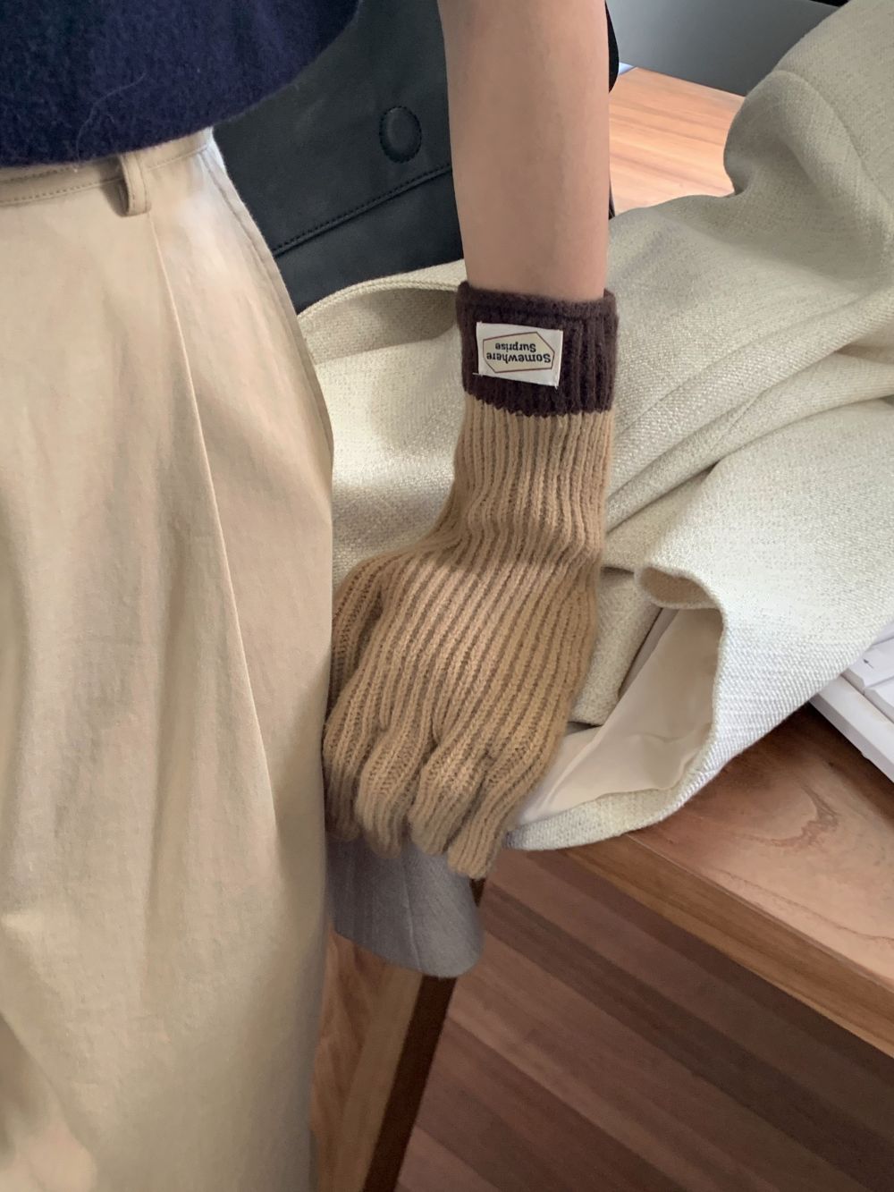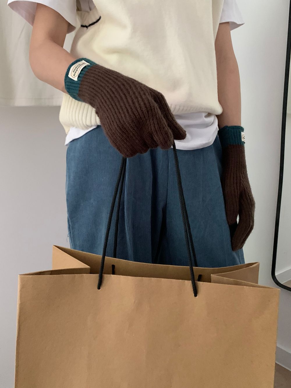 다섯 손가락 장갑 2023 새로운 가을과 겨울 따뜻한 여성 컬러 매칭 터치 스크린과 블로거에서 한국 장갑스토어 가기