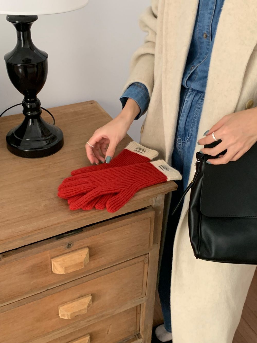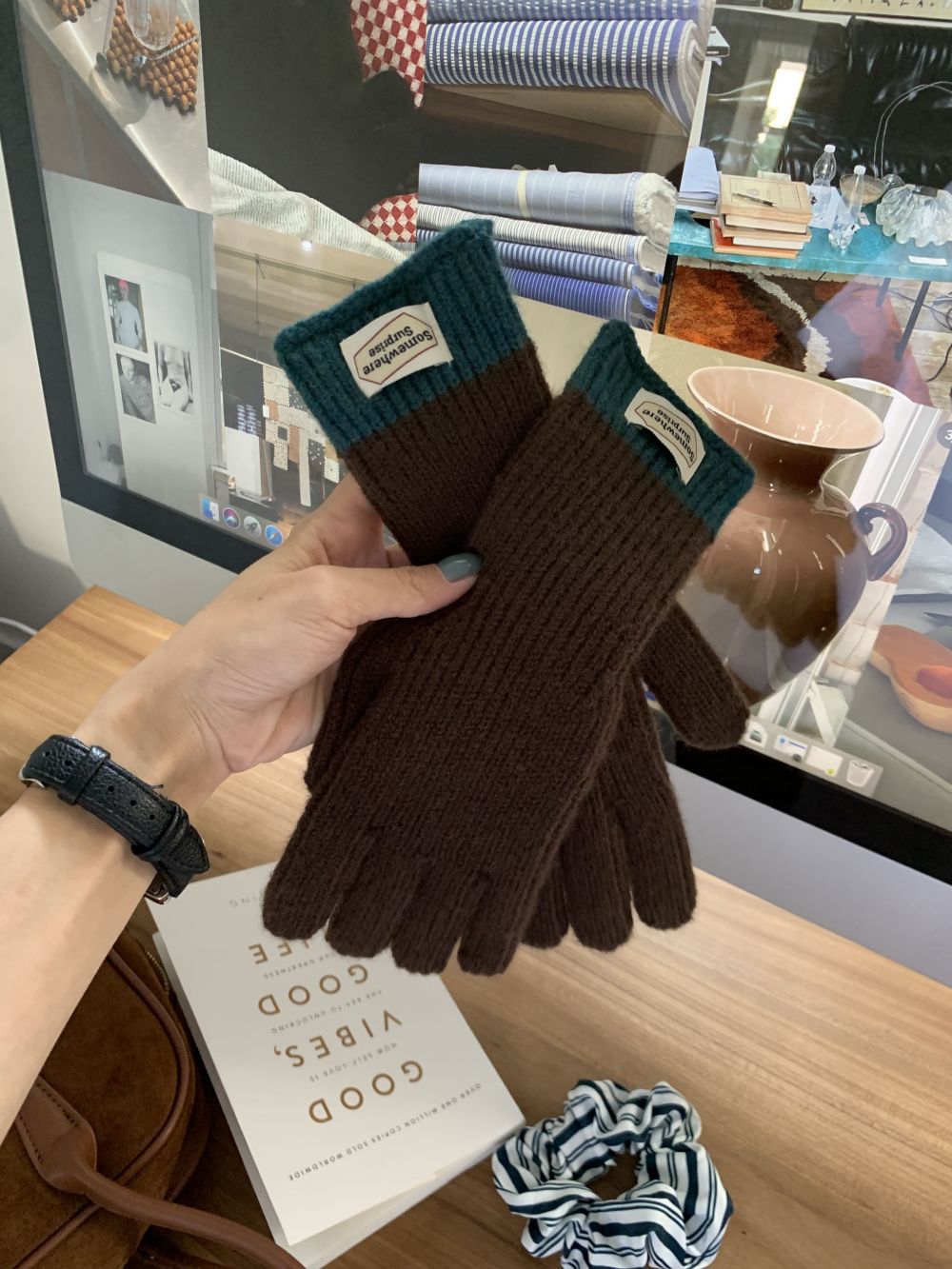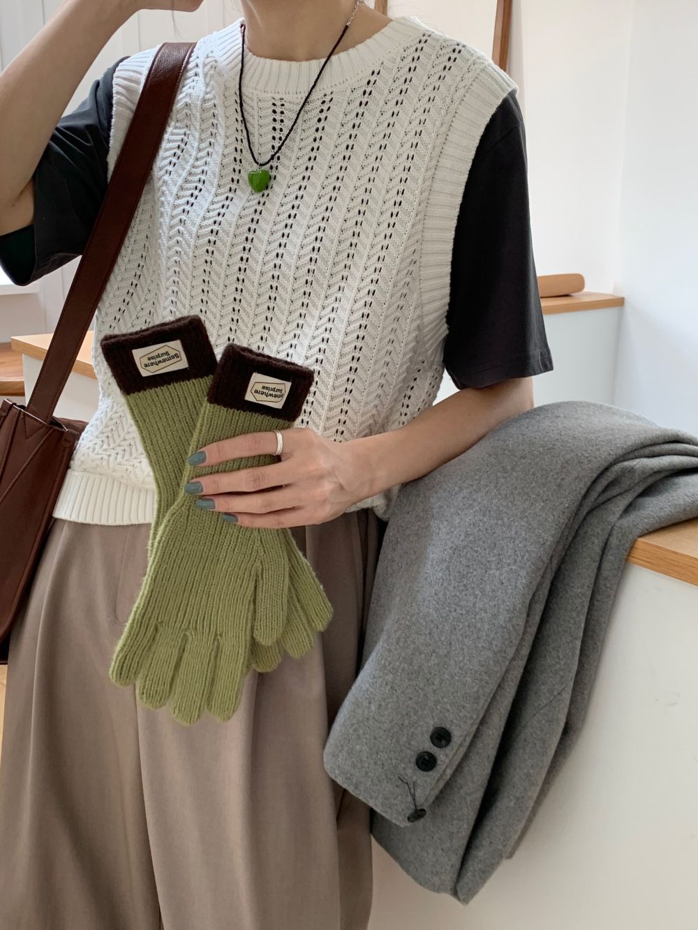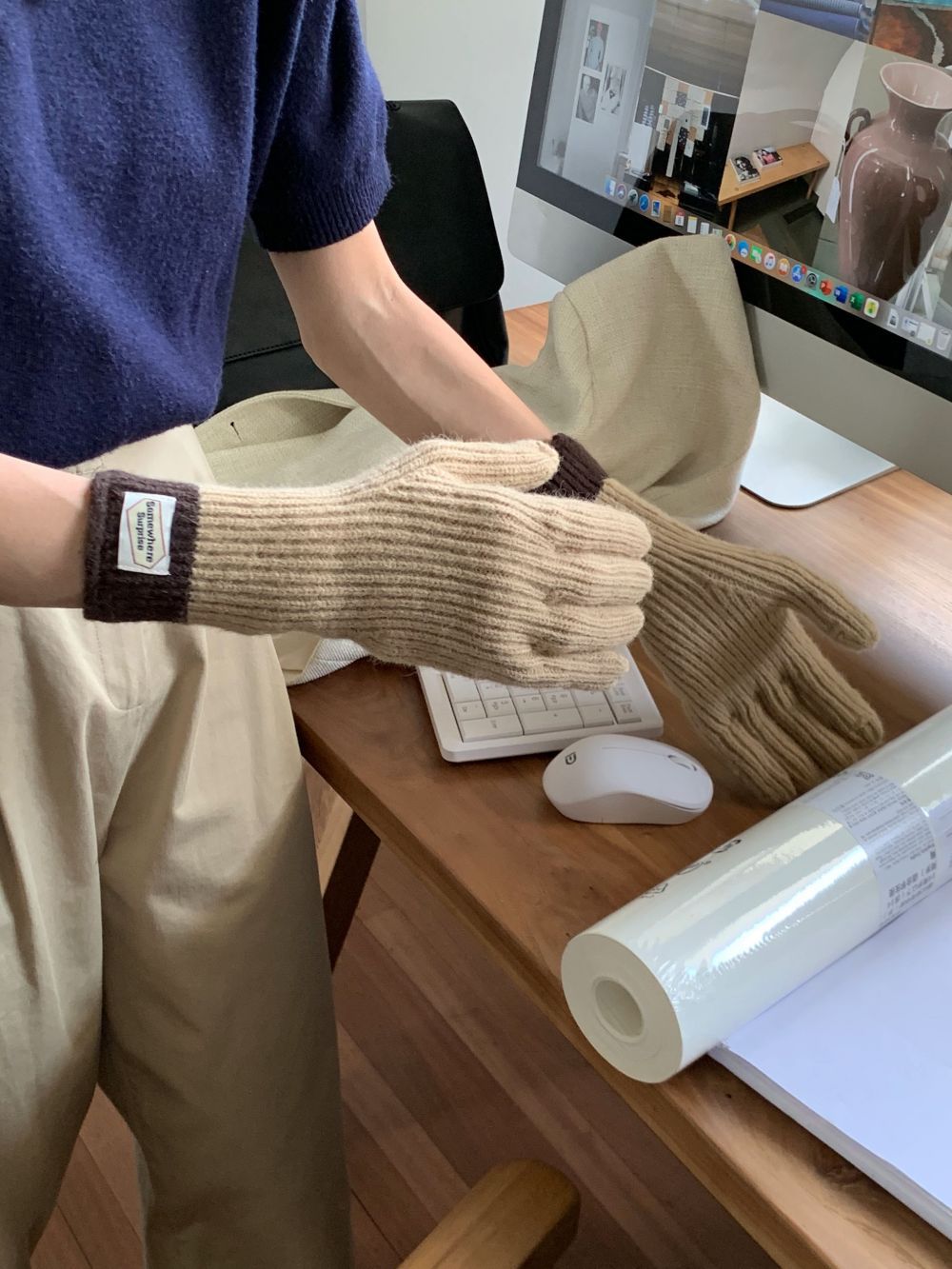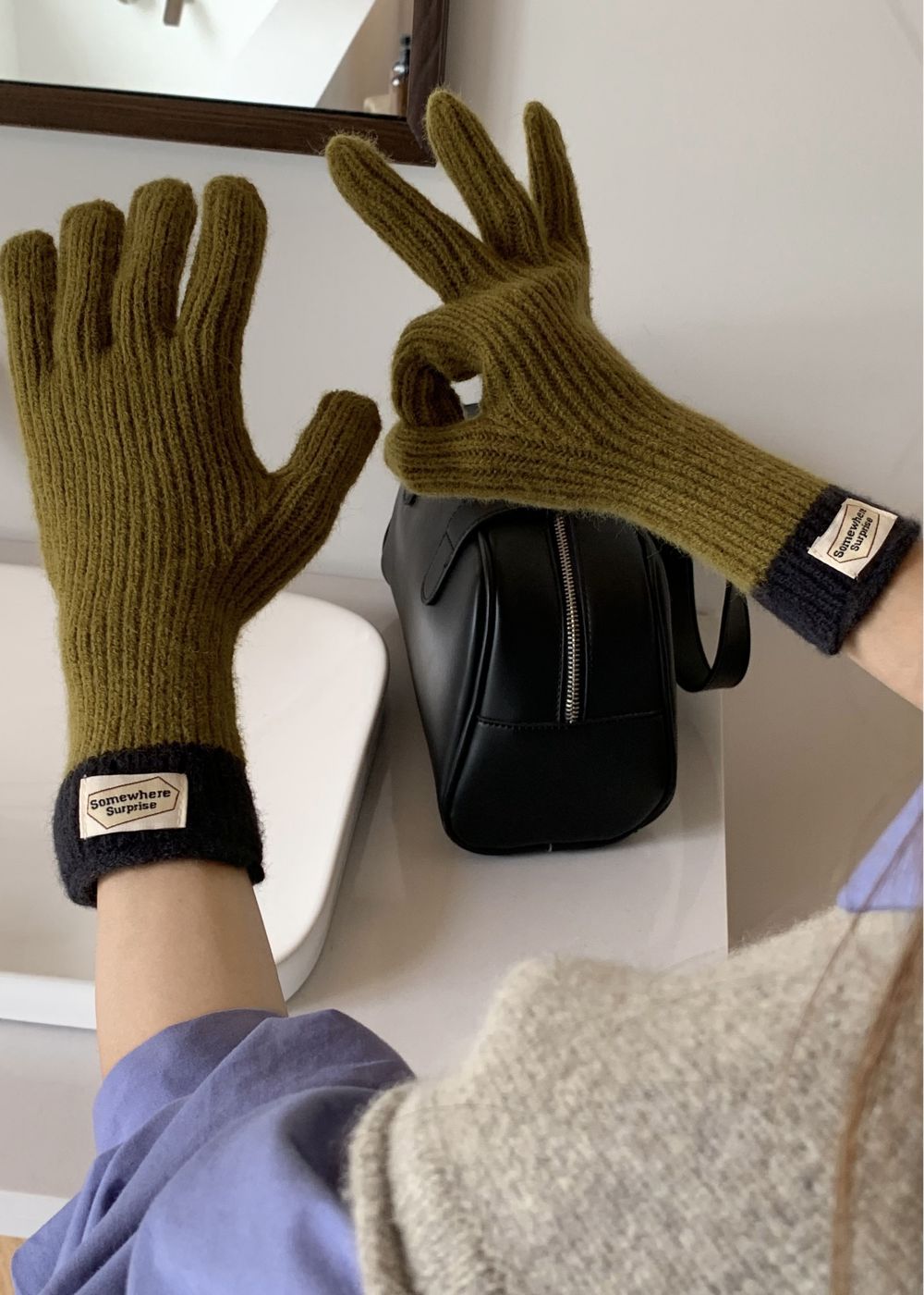 다섯 손가락 장갑 2023 새로운 가을과 겨울 따뜻한 여성 컬러 매칭 터치 스크린과 블로거에서 한국 장갑스토어 가기