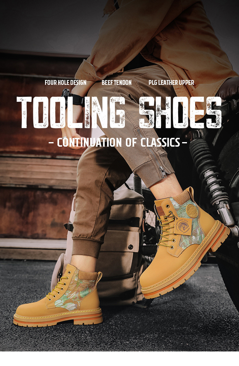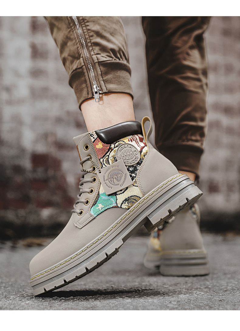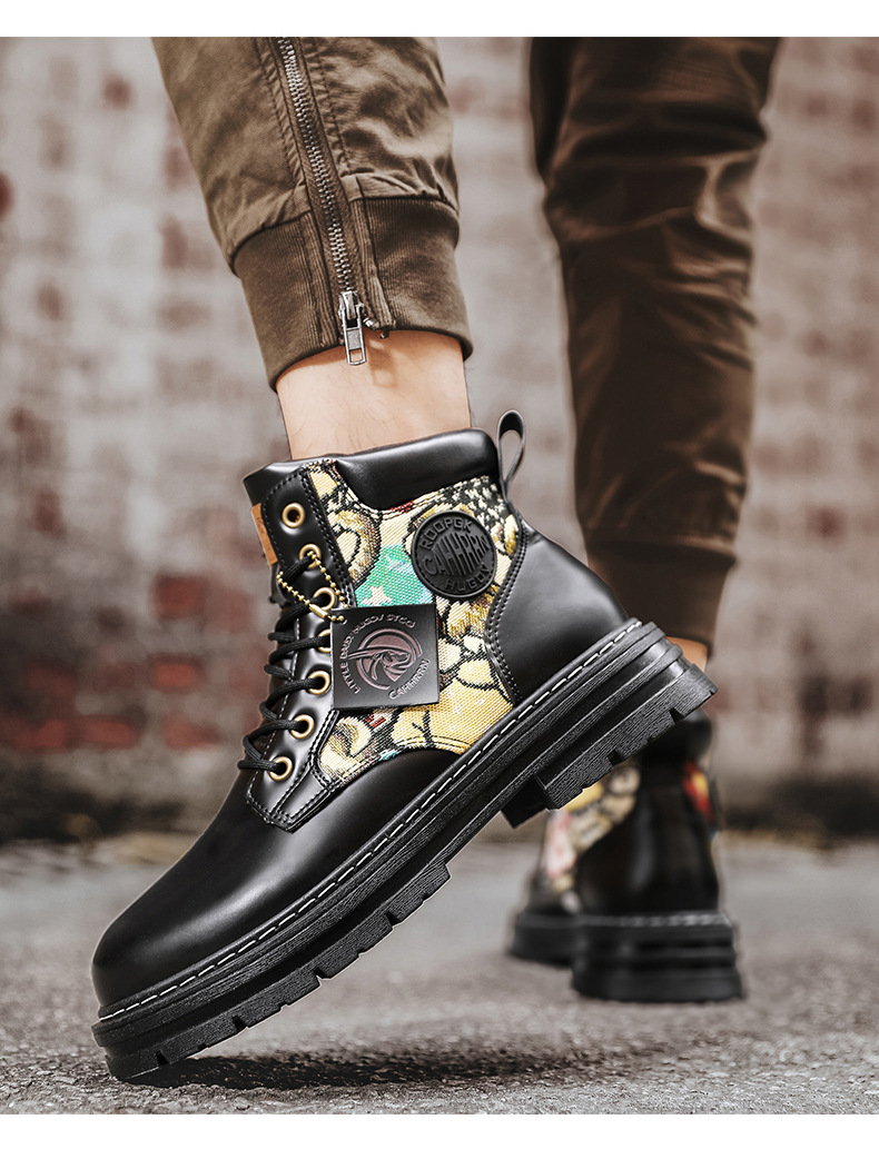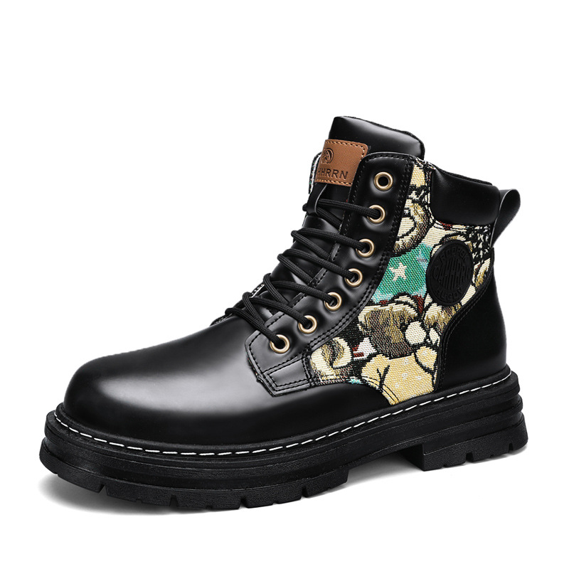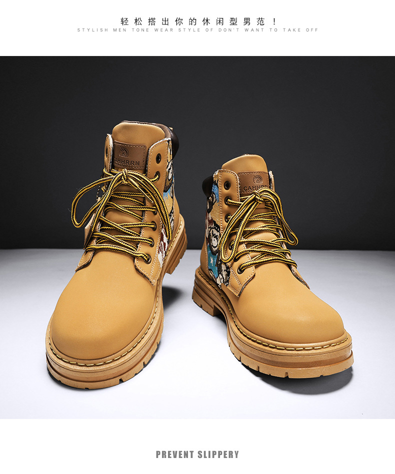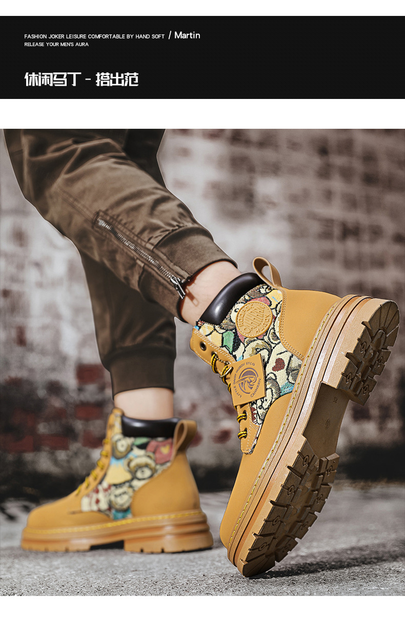 폭력 곰 라이브 새로운 가죽 부츠 사계절 모든 경기 마틴 부츠 영국 스타일 고정 장치 스티칭 통기성 노란색 부츠 남성 신발