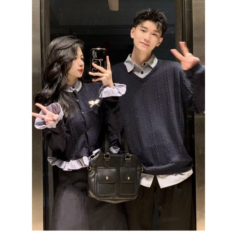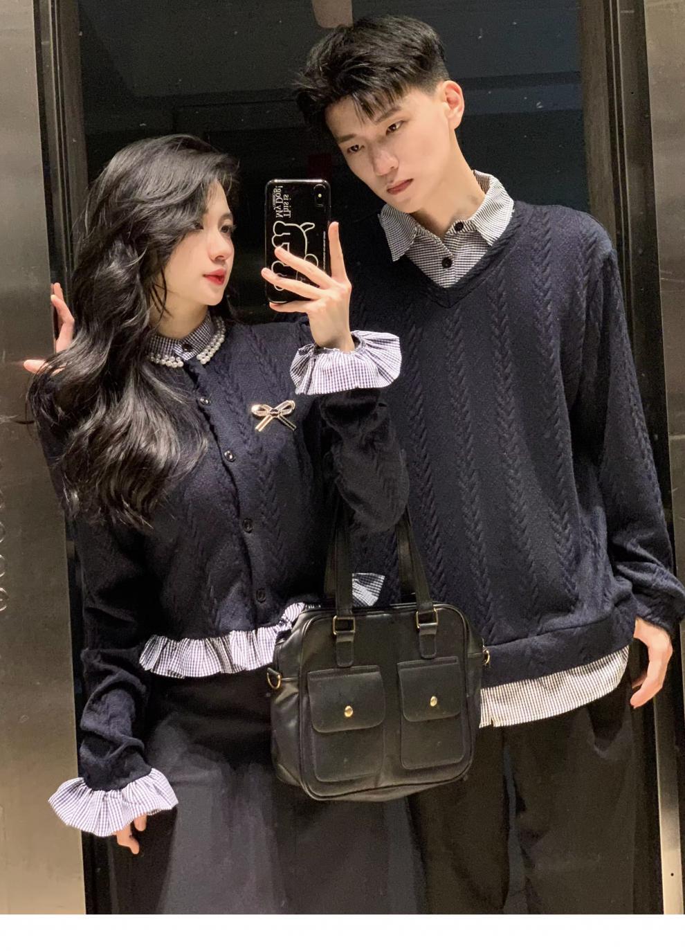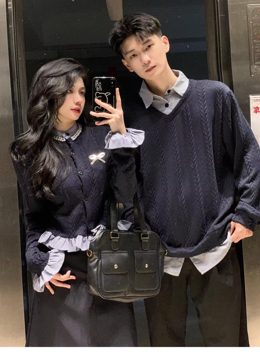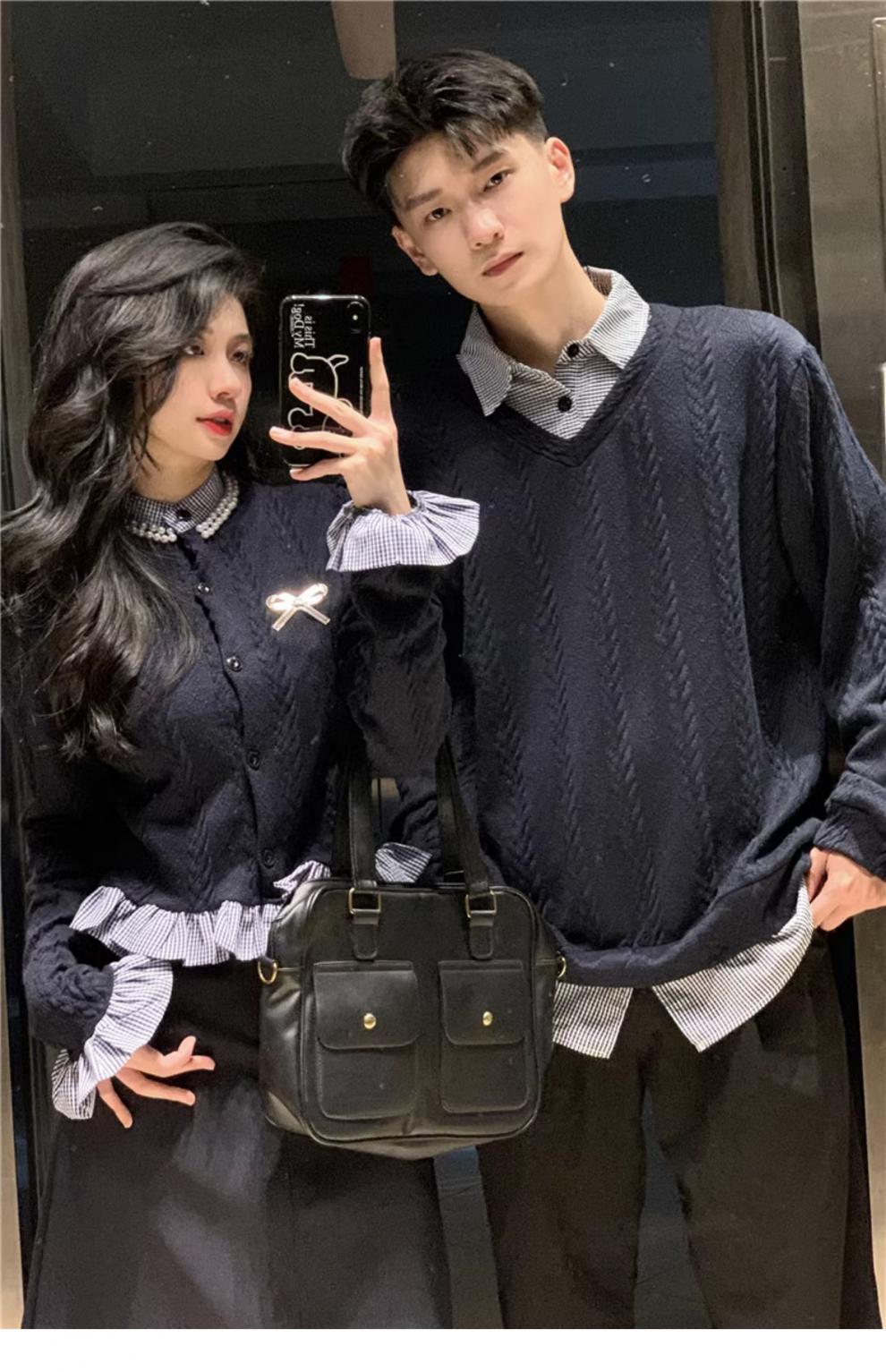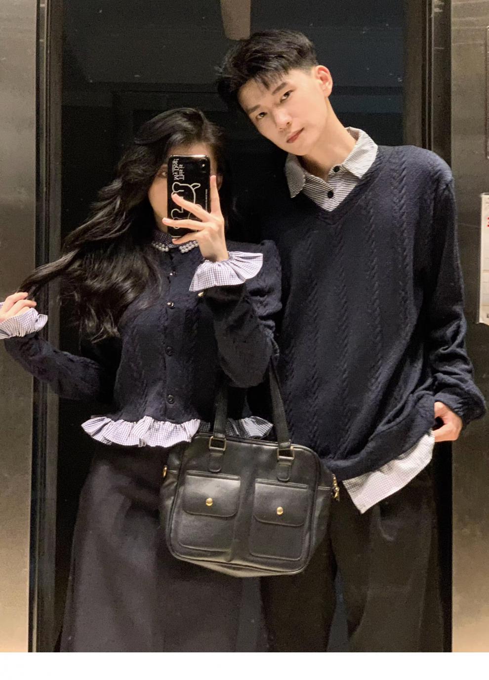 가을 2023 커플웨어 남성과 여성의 한국 스타일 느슨한 프랑스 니트 스웨터 재킷 트렌디 브랜드스토어 가기