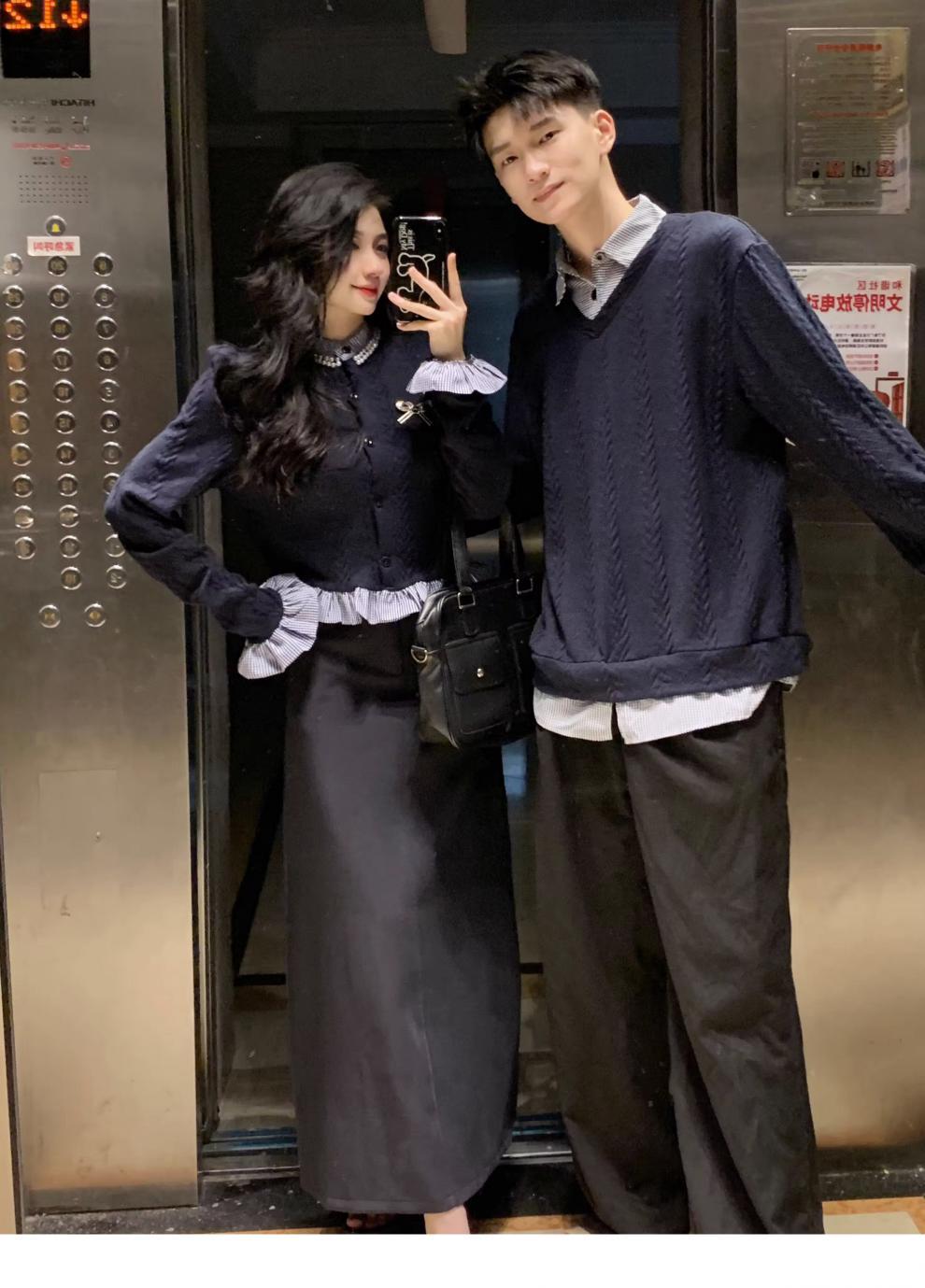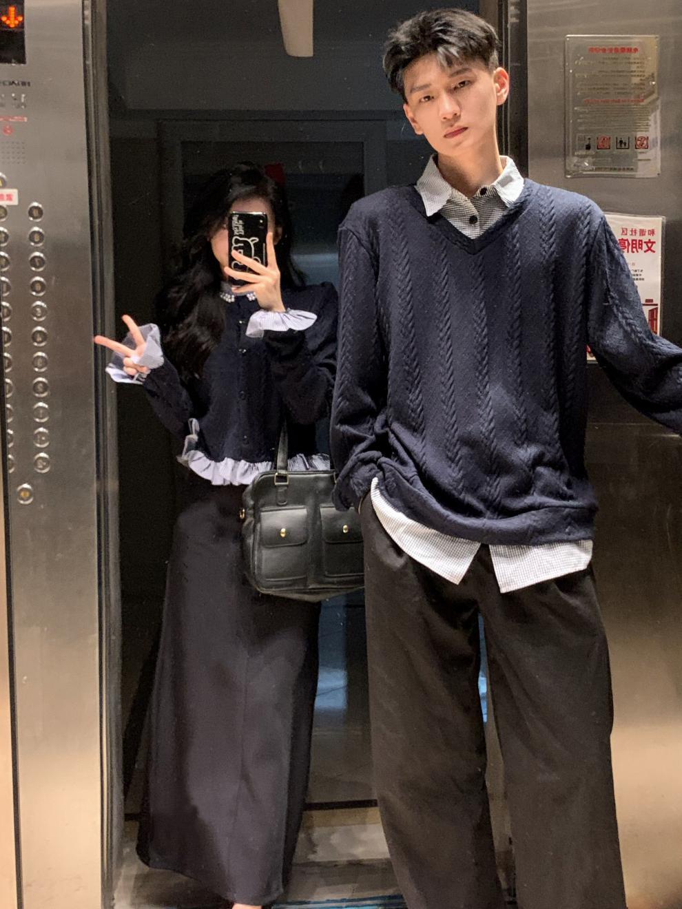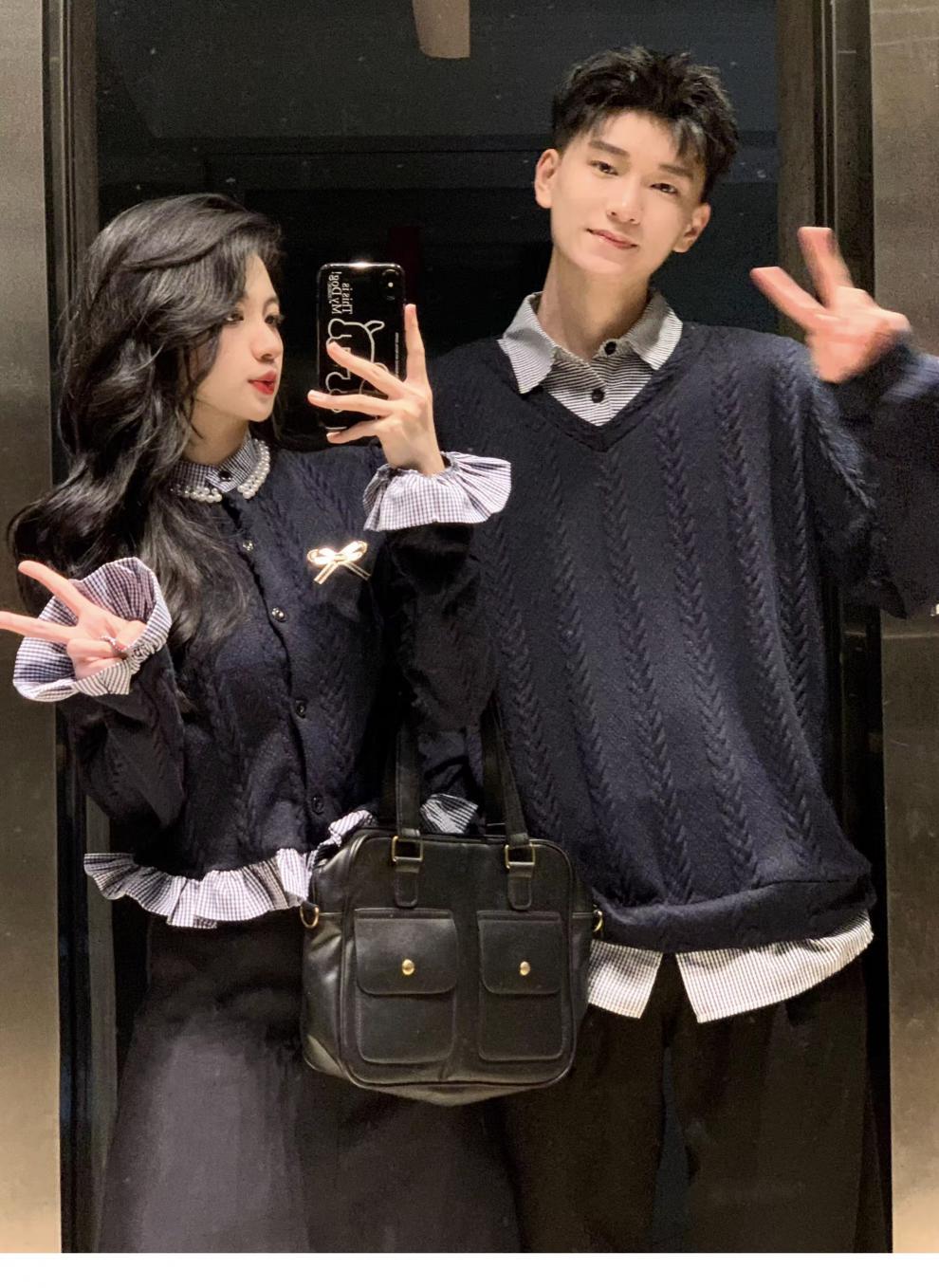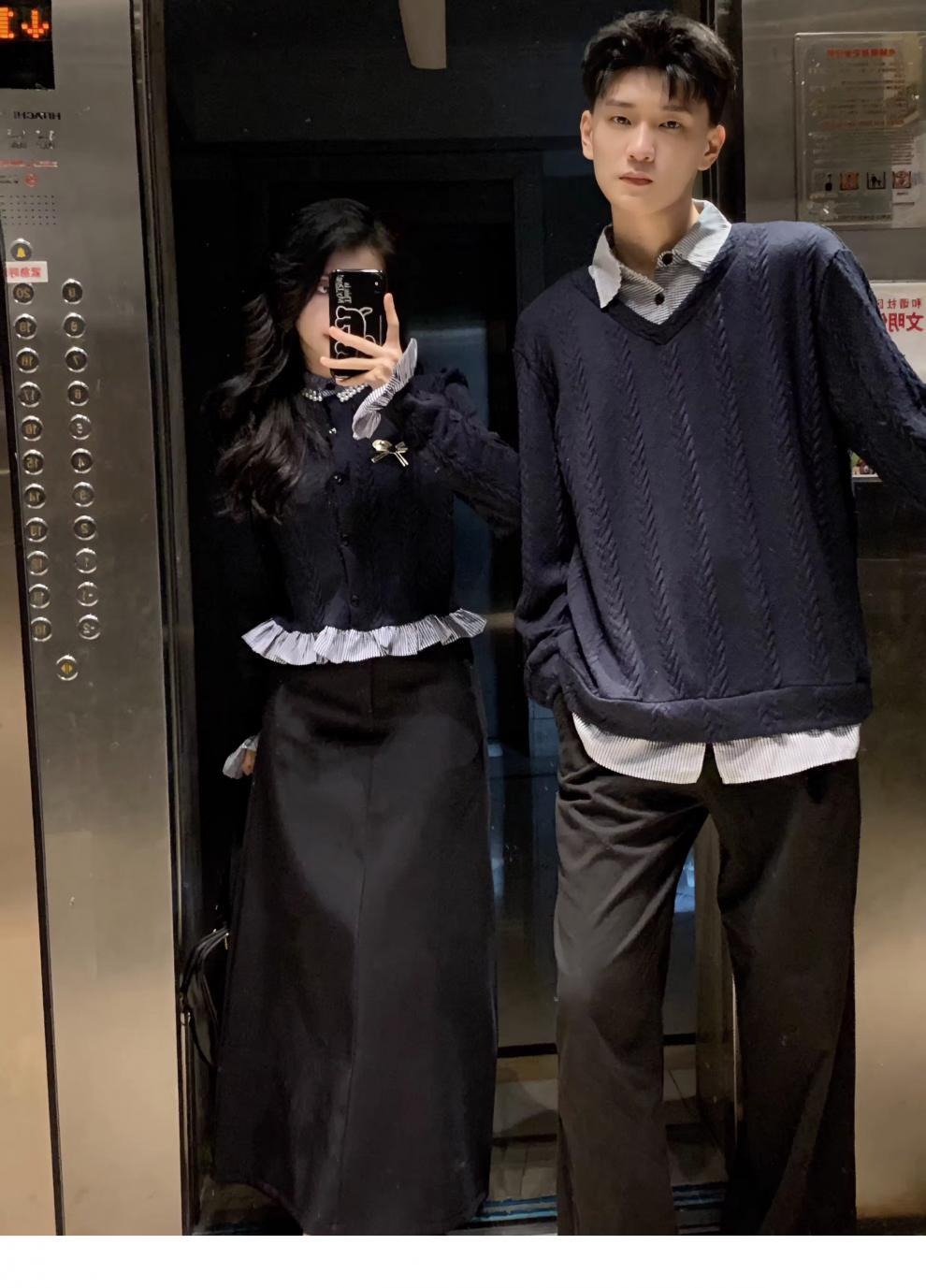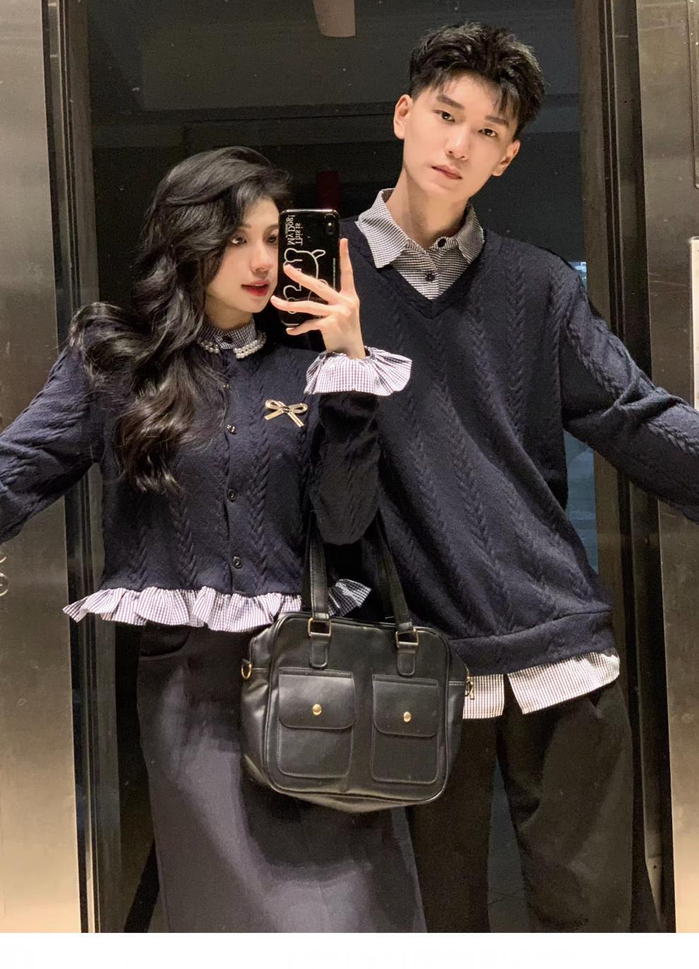 가을 2023 커플웨어 남성과 여성의 한국 스타일 느슨한 프랑스 니트 스웨터 재킷 트렌디 브랜드스토어 가기