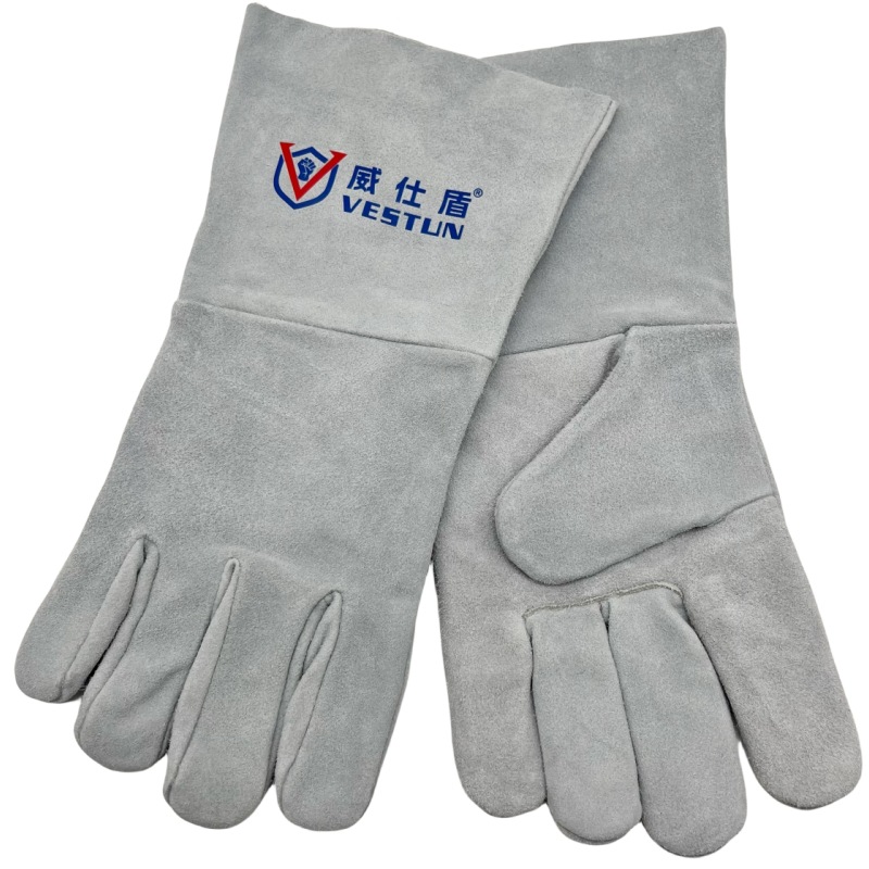 •   采用牛二层皮制作,皮革厚度为1.1~1.2mm,长度34cm,半护缝条设计,杂绒全封内里,吸汗隔热,手感好,受力位置如:虎口、食指、掌心、指尖处填充耐高温胶,更好的保护线缝不被焊接火烧断。延长使用寿命。