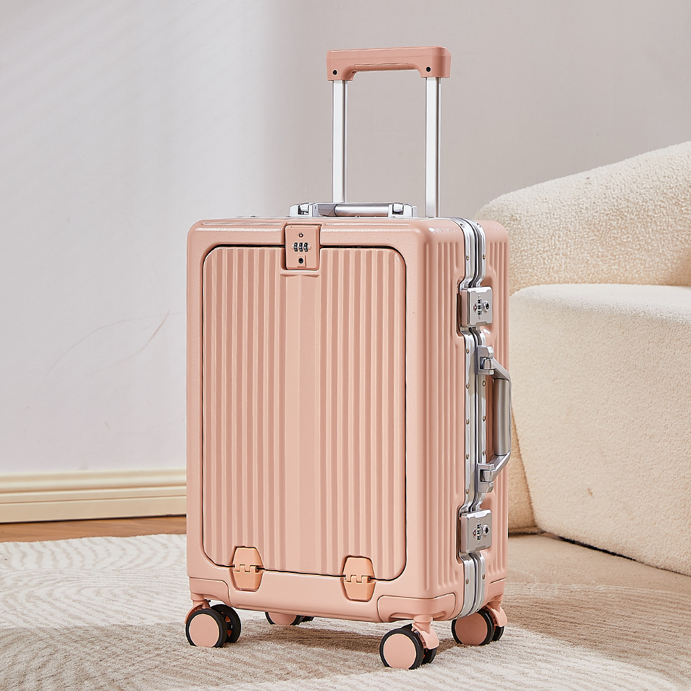 Yong Sheng 프론트 오프닝 수하물 케이스 여성 대용량 트롤리 케이스 학생 탑승 가방 유니버설 휠 24 인치 비밀번호 상자
