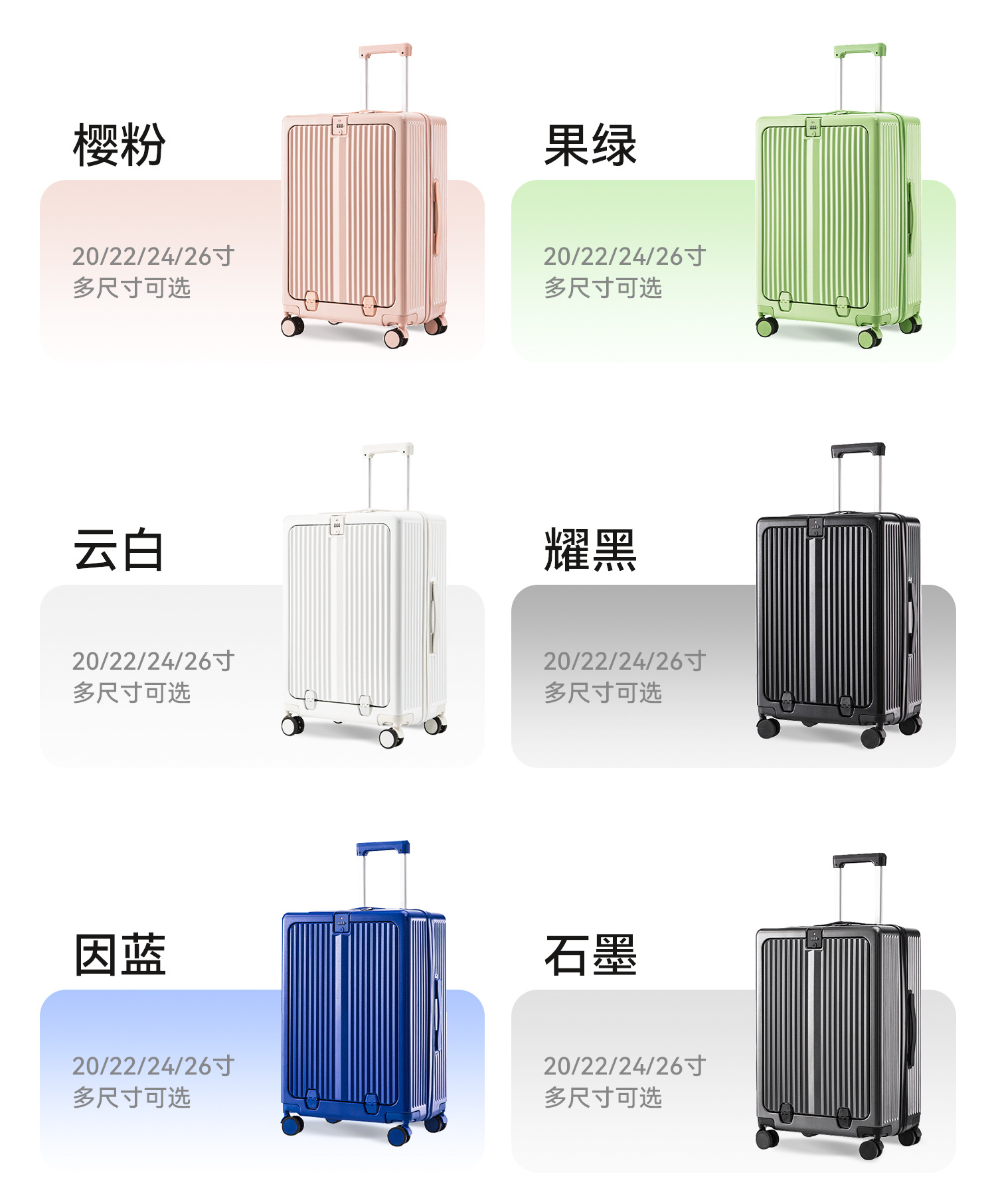 Yong Sheng 프론트 오프닝 수하물 케이스 여성 대용량 트롤리 케이스 학생 탑승 가방 유니버설 휠 24 인치 비밀번호 상자스토어 가기
