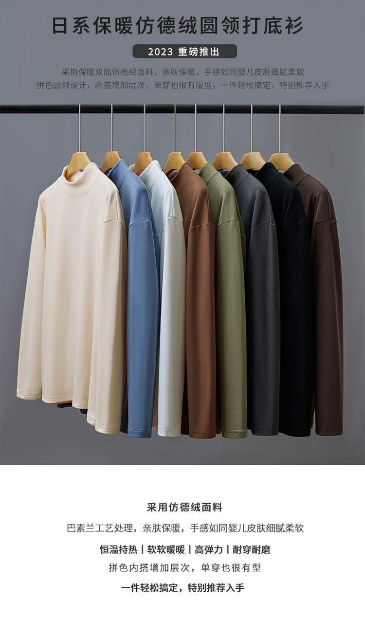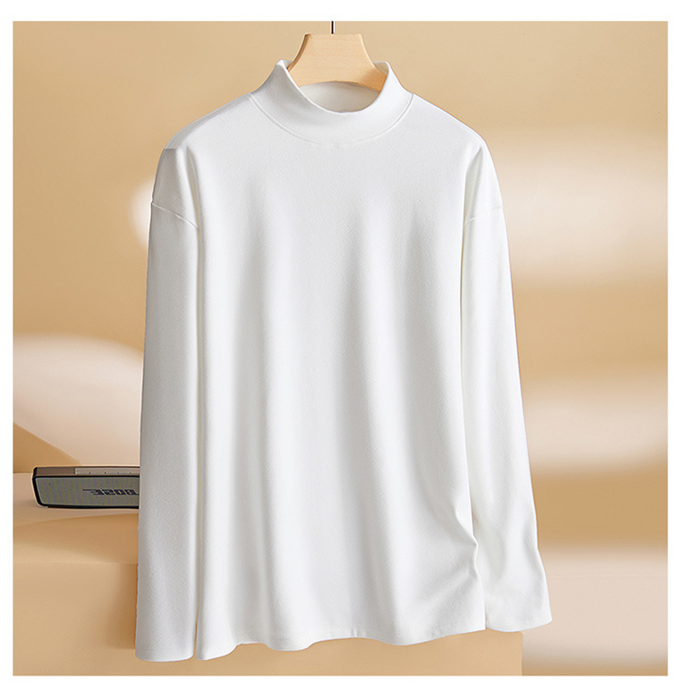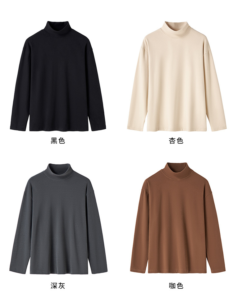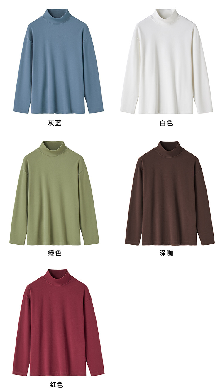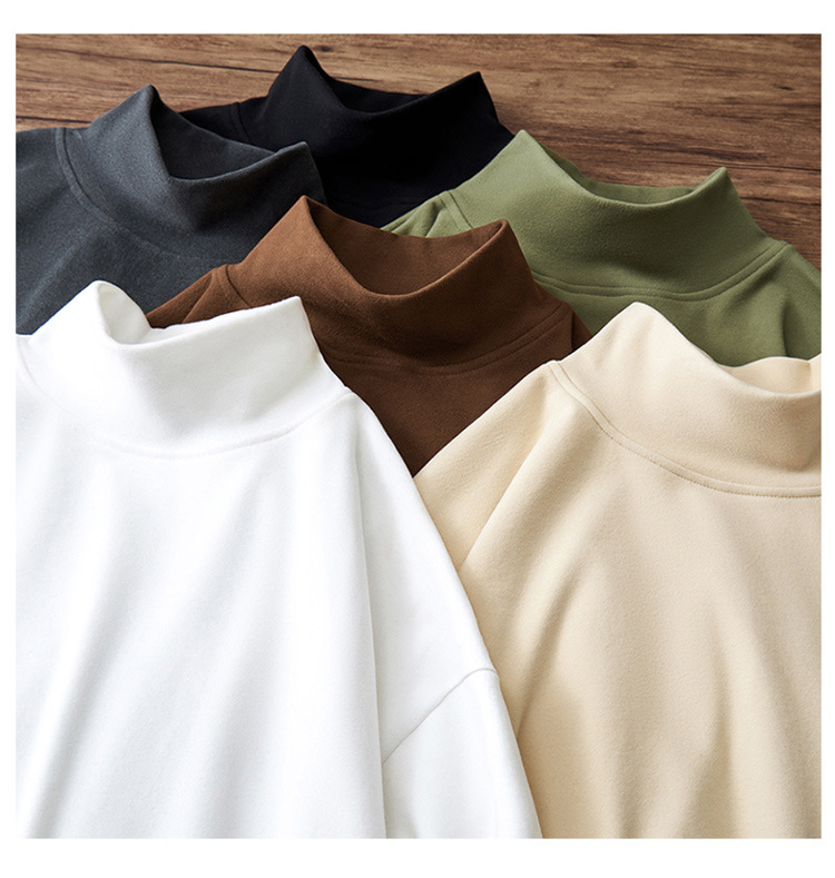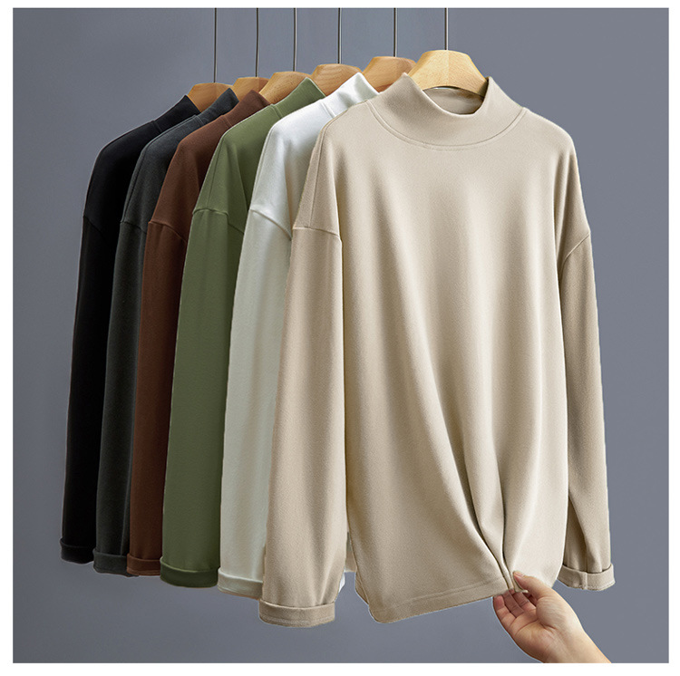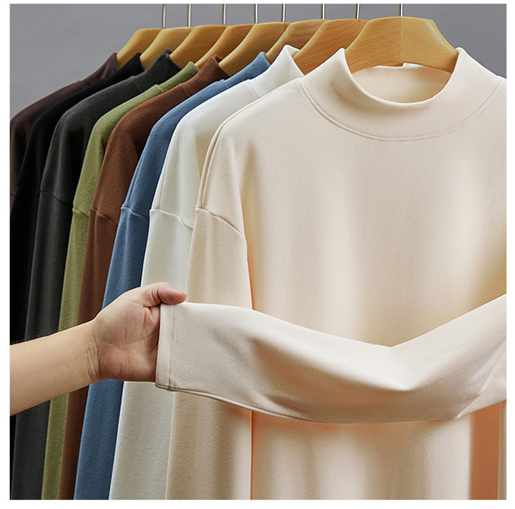 긴팔 티셔츠 남성용 봄과 가을 새로운 청소년 세미 하이 칼라 베이스 셔츠 양털 가을 옷 남성용 단색 슬림핏 스웨터스토어 가기