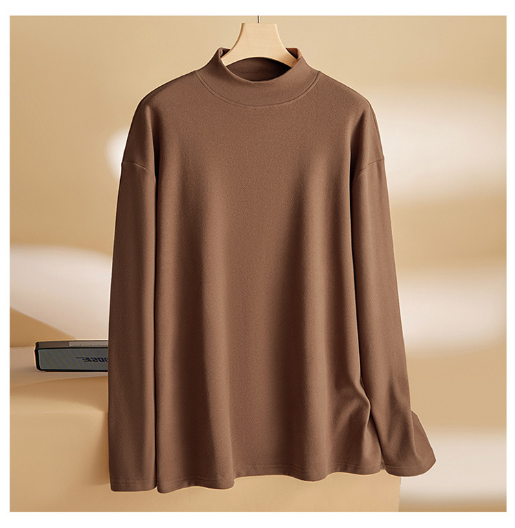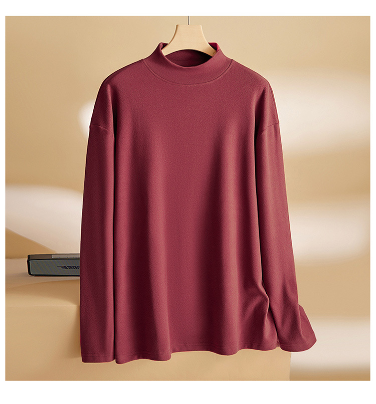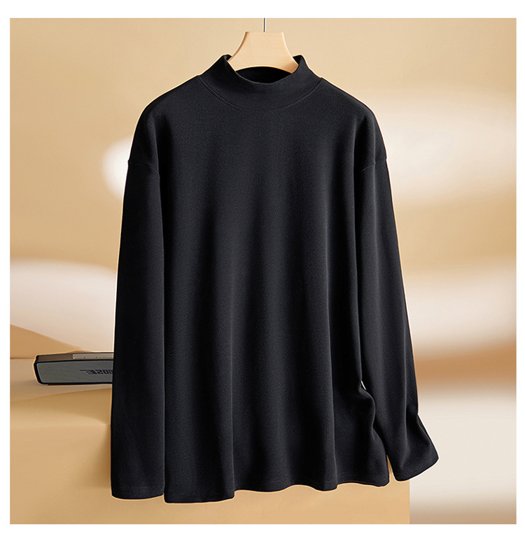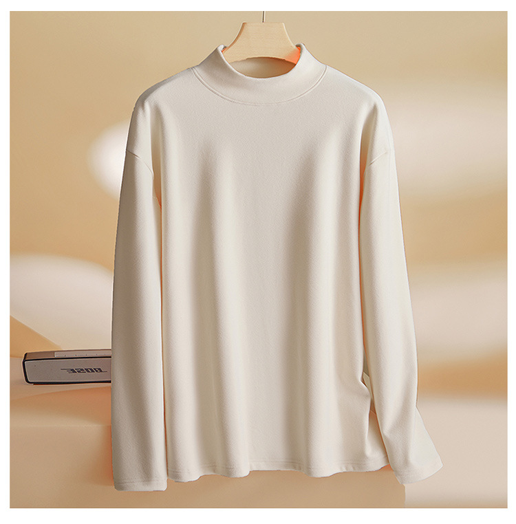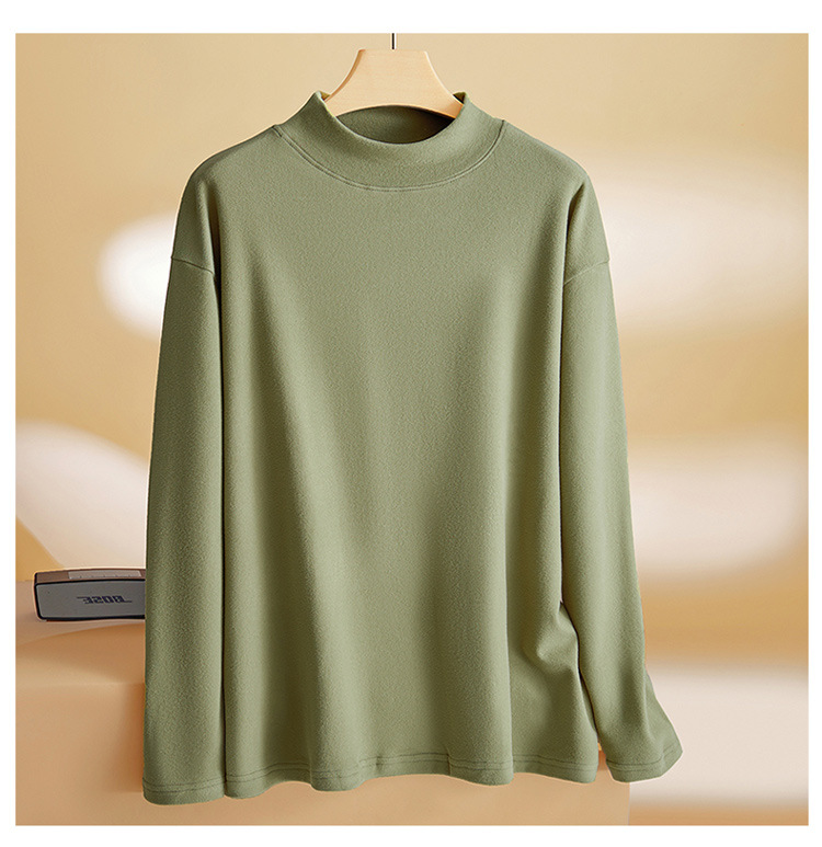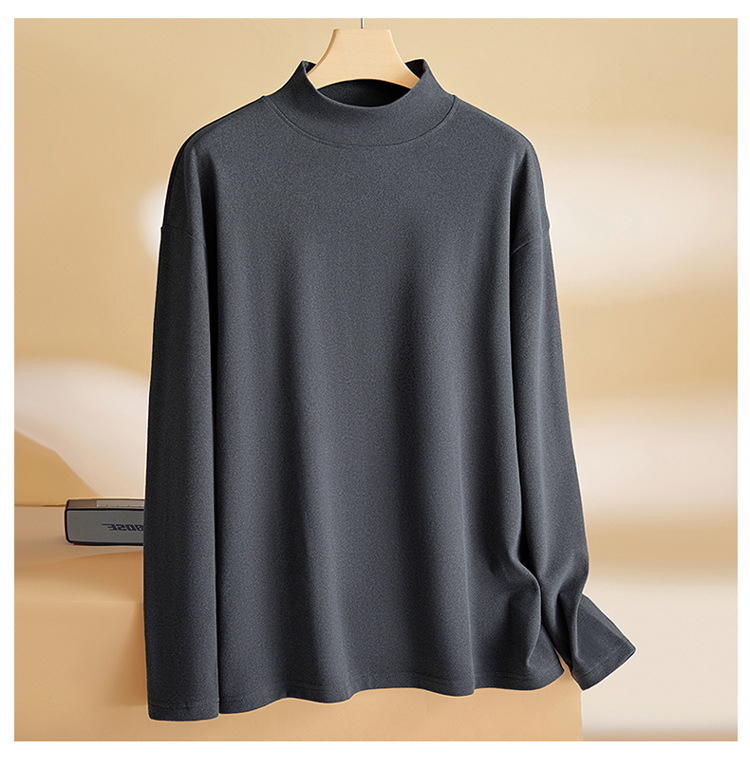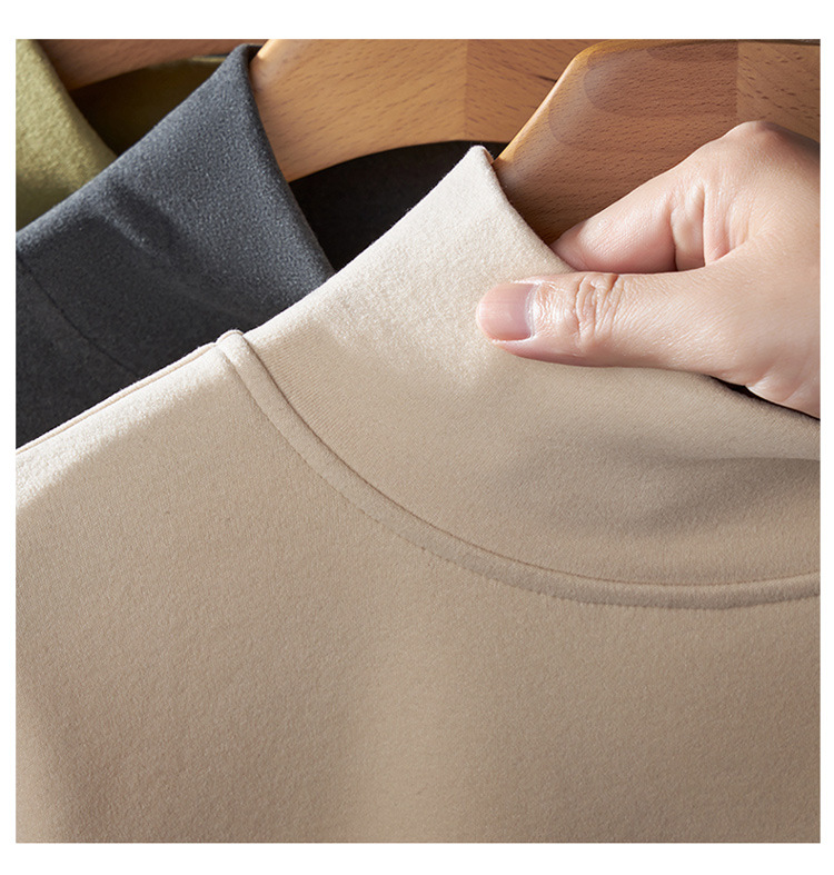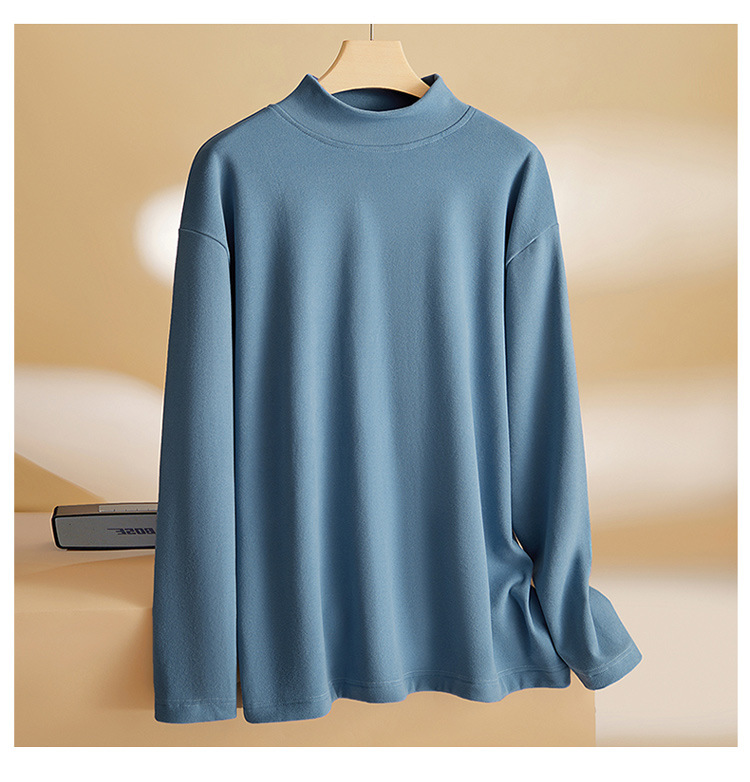 긴팔 티셔츠 남성용 봄과 가을 새로운 청소년 세미 하이 칼라 베이스 셔츠 양털 가을 옷 남성용 단색 슬림핏 스웨터스토어 가기