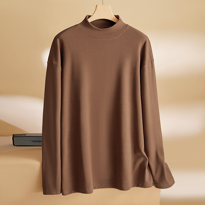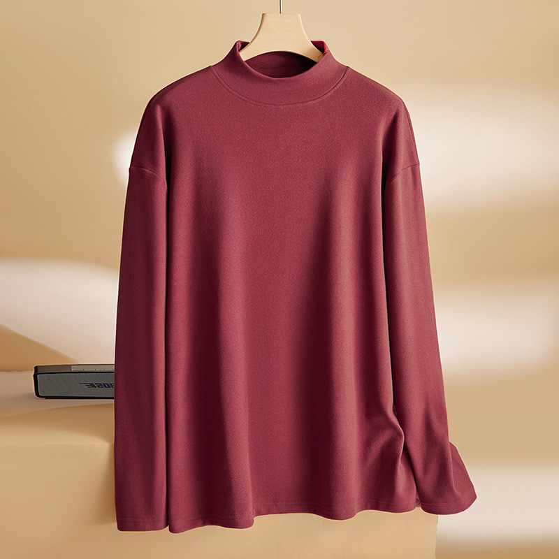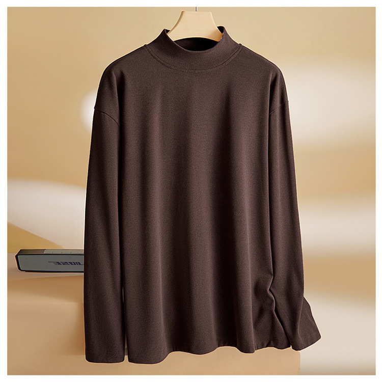 긴팔 티셔츠 남성용 봄과 가을 새로운 청소년 세미 하이 칼라 베이스 셔츠 양털 가을 옷 남성용 단색 슬림핏 스웨터