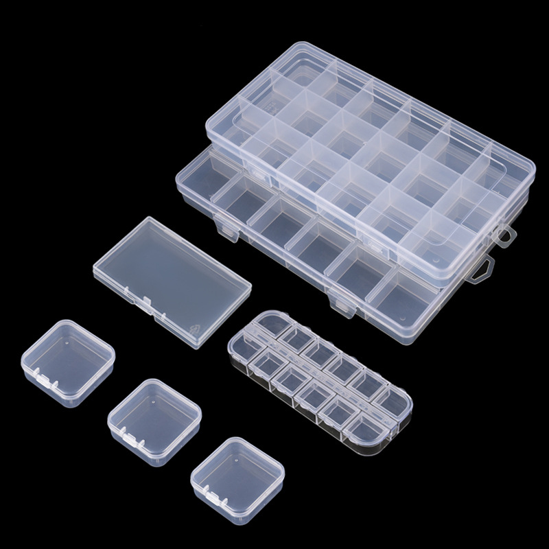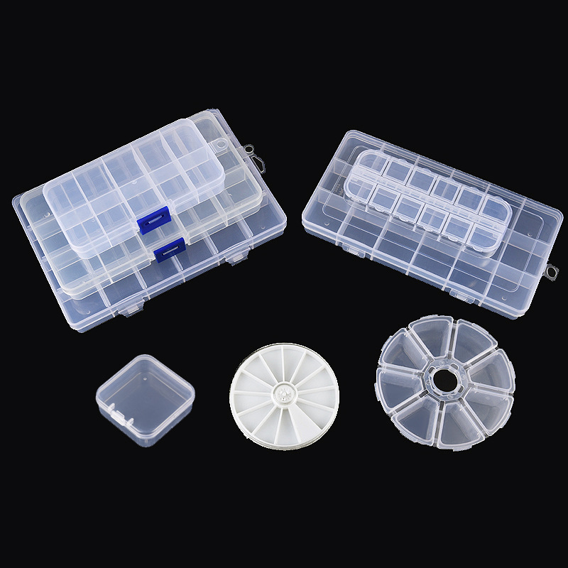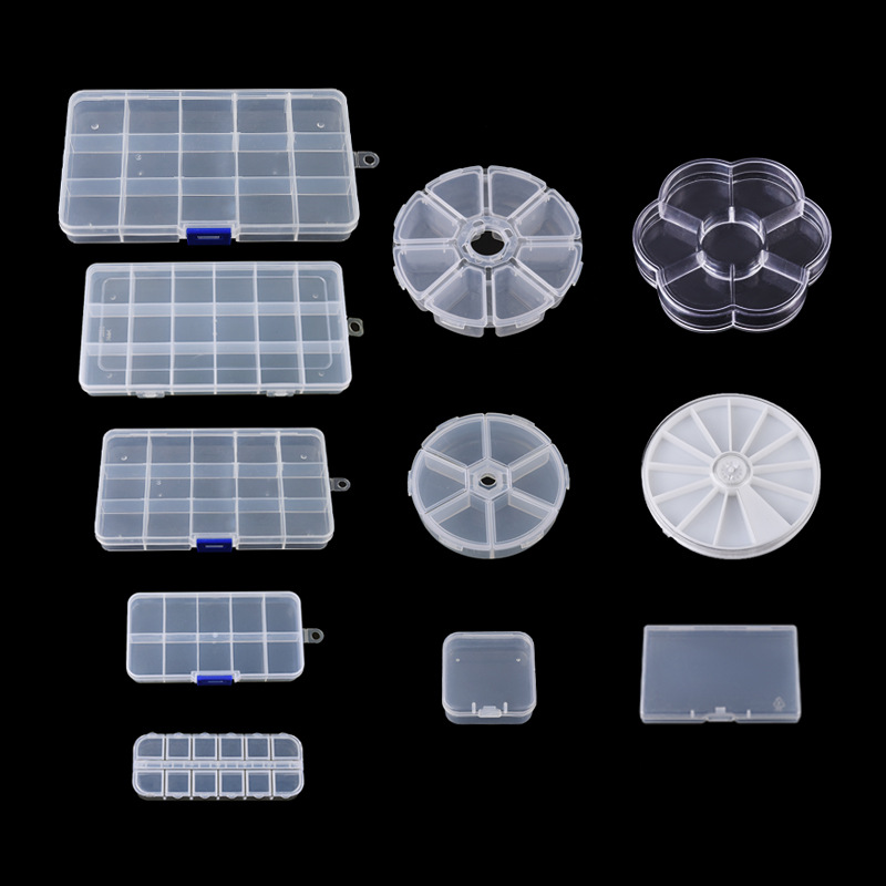 다양한 보석 액세서리 저장 상자 둥근 사각형 이동식 멀티 그리드 투명 플라스틱 저장 상자