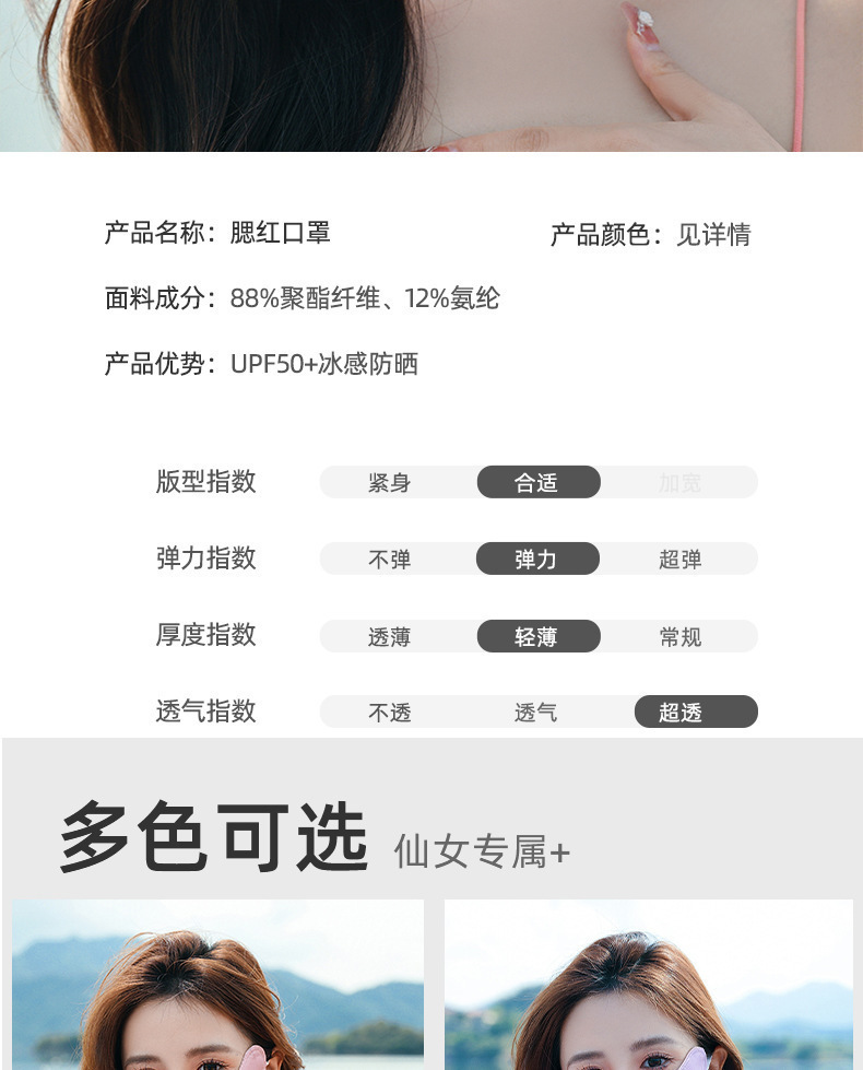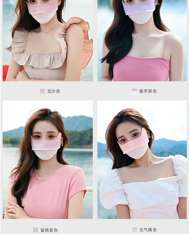 자외선 차단제 그라데이션 컬러 마스크 여성용 자외선 차단 및 방진 봄과 여름 얇은 아이스 실크 페이스 마스크 홍당무 아이 앵글 마스크스토어 가기