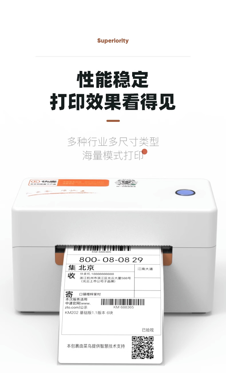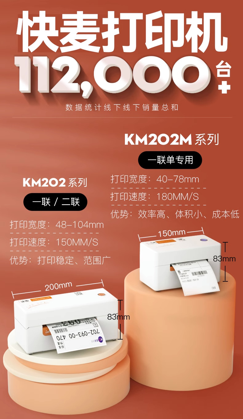 Kuaimai KM202 국경 간 익스프레스 단일 프린터 1 링크 2 링크 열 라벨 바코드 전자 표면 단일 프린터스토어 가기