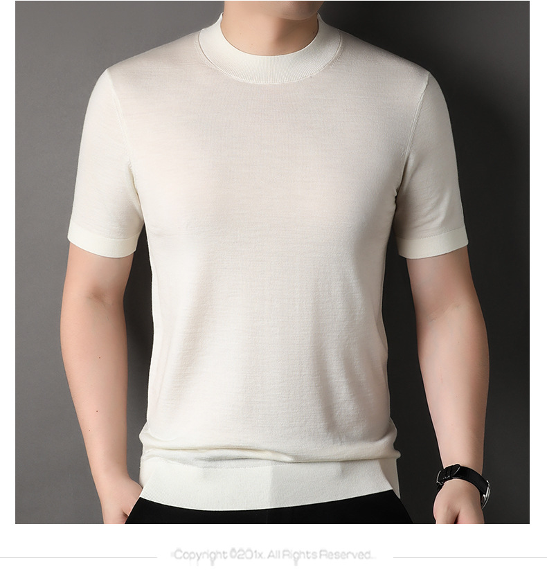 Worsted 100 순수 모직 스웨터 반팔 반 높은 칼라 봄과 가을 Puyuan 모직 스웨터 반 소매 스웨터 기본 셔츠 재킷 얇은