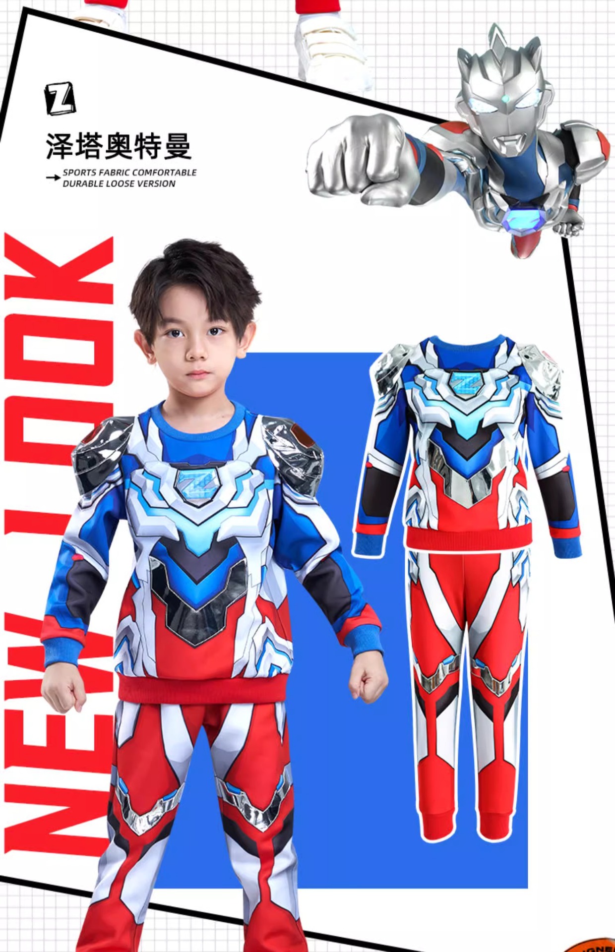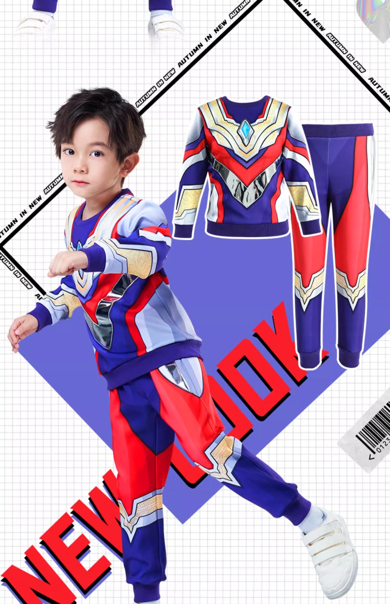 2023 새로운 정품 울트라맨 남아 의류 어린이 선원 봄과 가을 소년 운동복 세트 아동 의류 유행 멋진스토어 가기