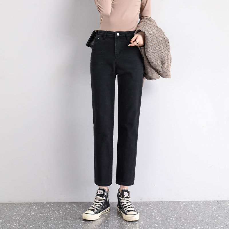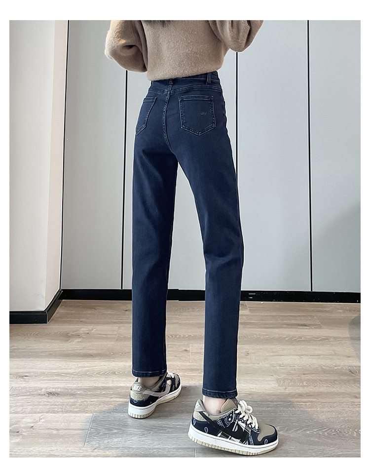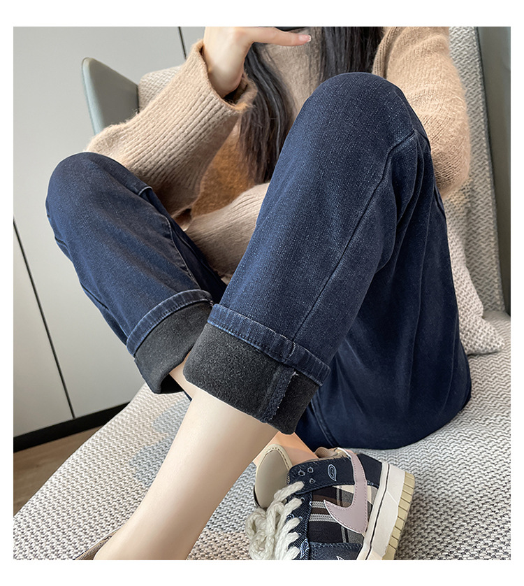 2025년 가을 겨울 여성용 두껍고 긴 청바지 새로운 하이웨이스트 아우터 캐주얼 하렘 스트레이트 레그 아빠 바지 여성용스토어 가기